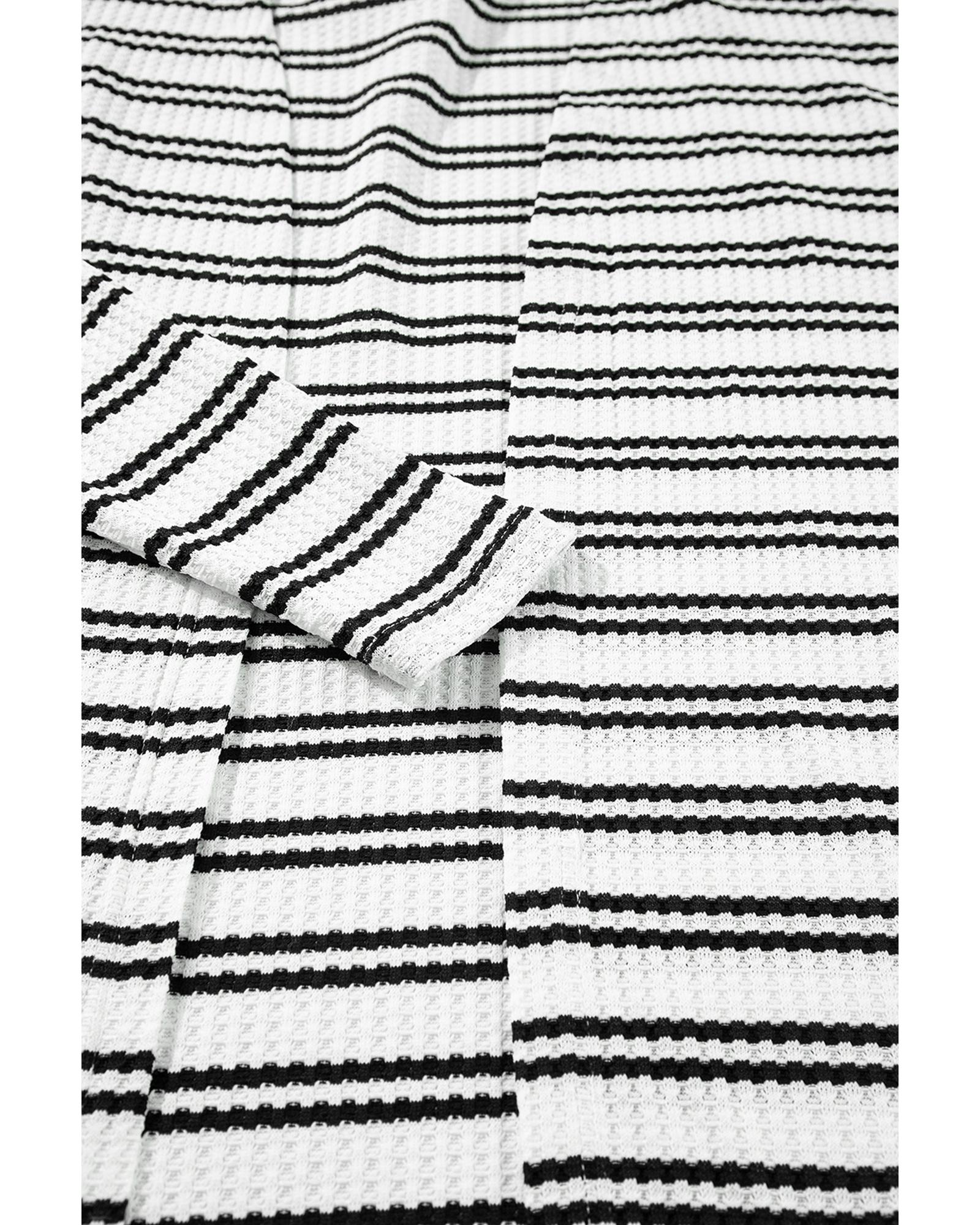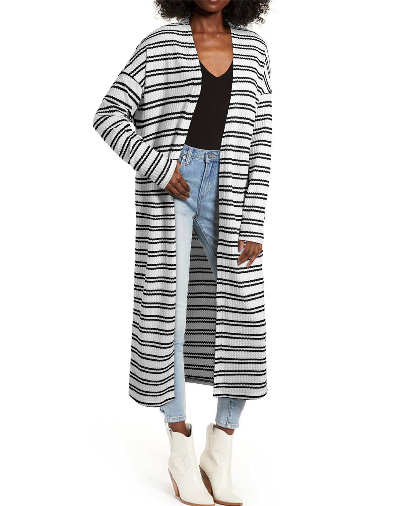 Black Stripe Print Open Front Duster Cardigan – M