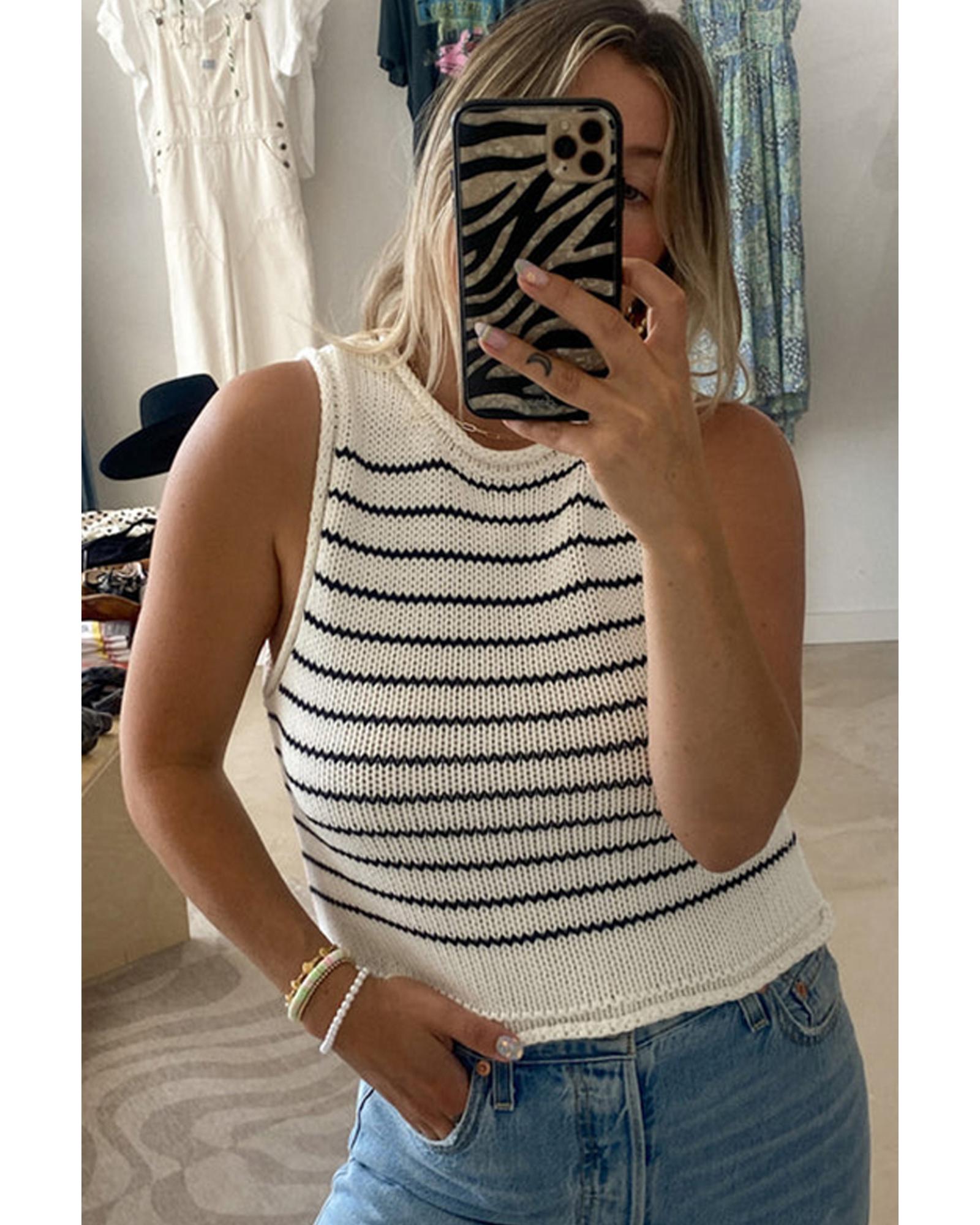 Black Stripe Raw Edge Crew Neck Knitted Vest – S