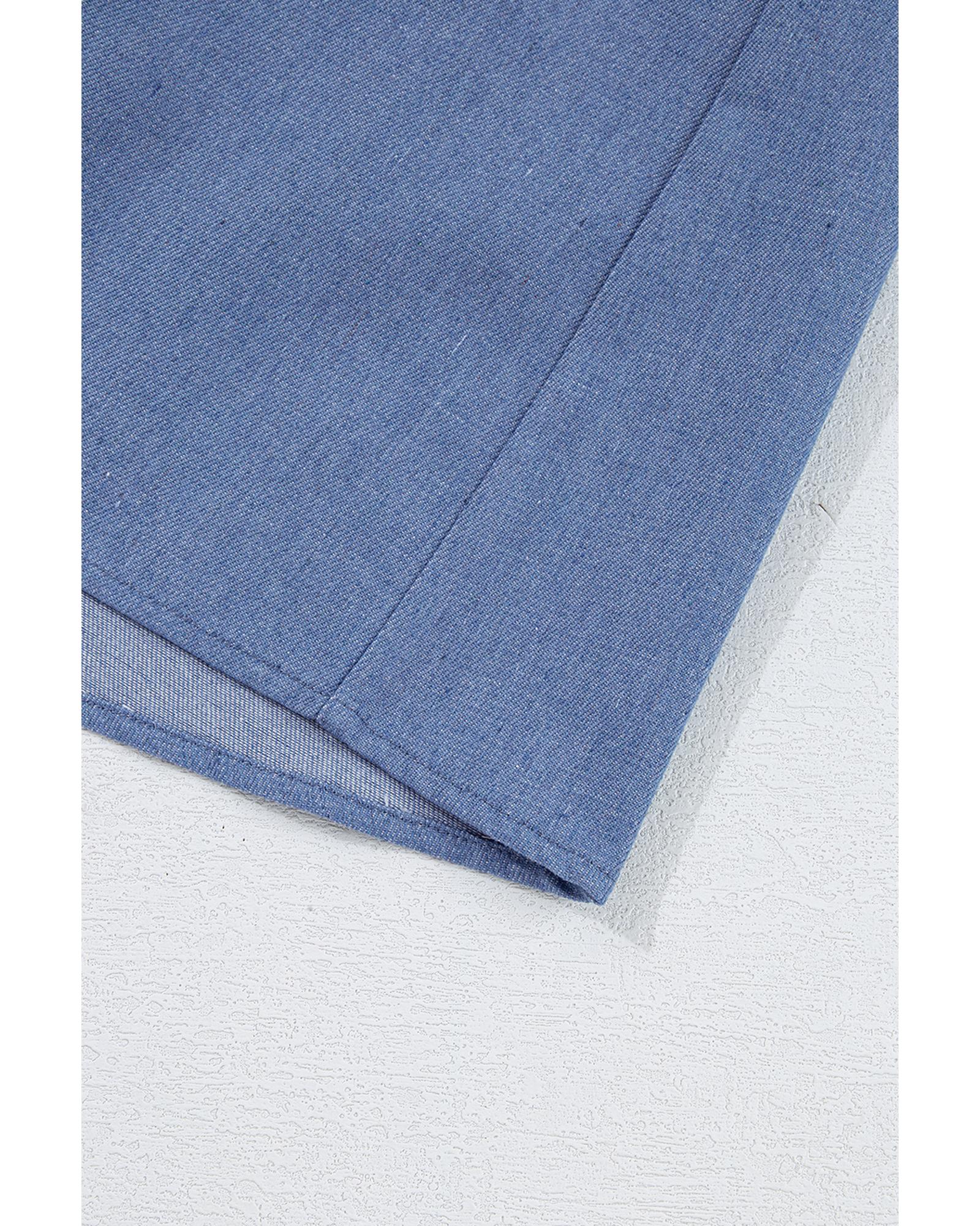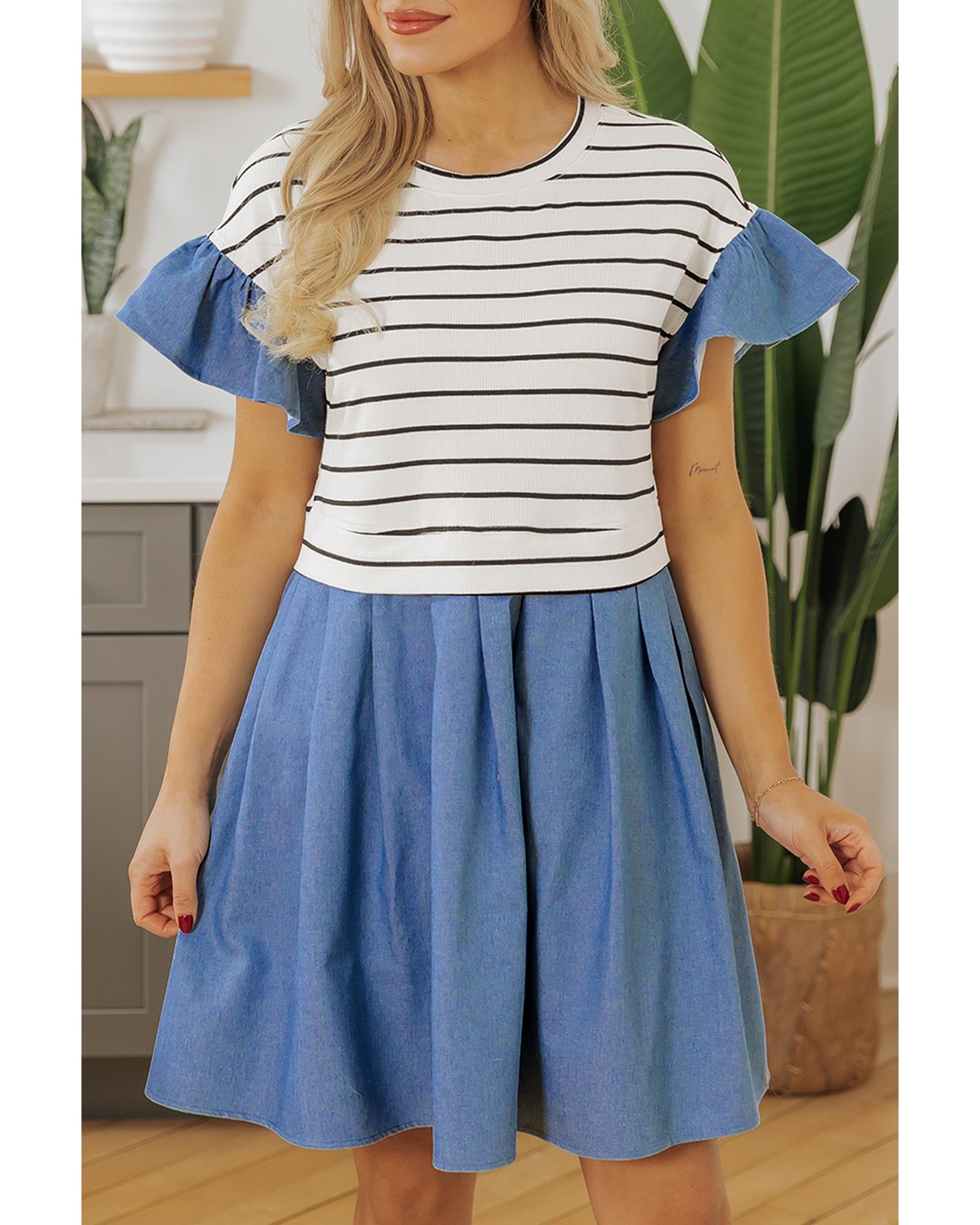Black Stripe Ruffle Denim Patchwork Round Neck Mini Dress – L