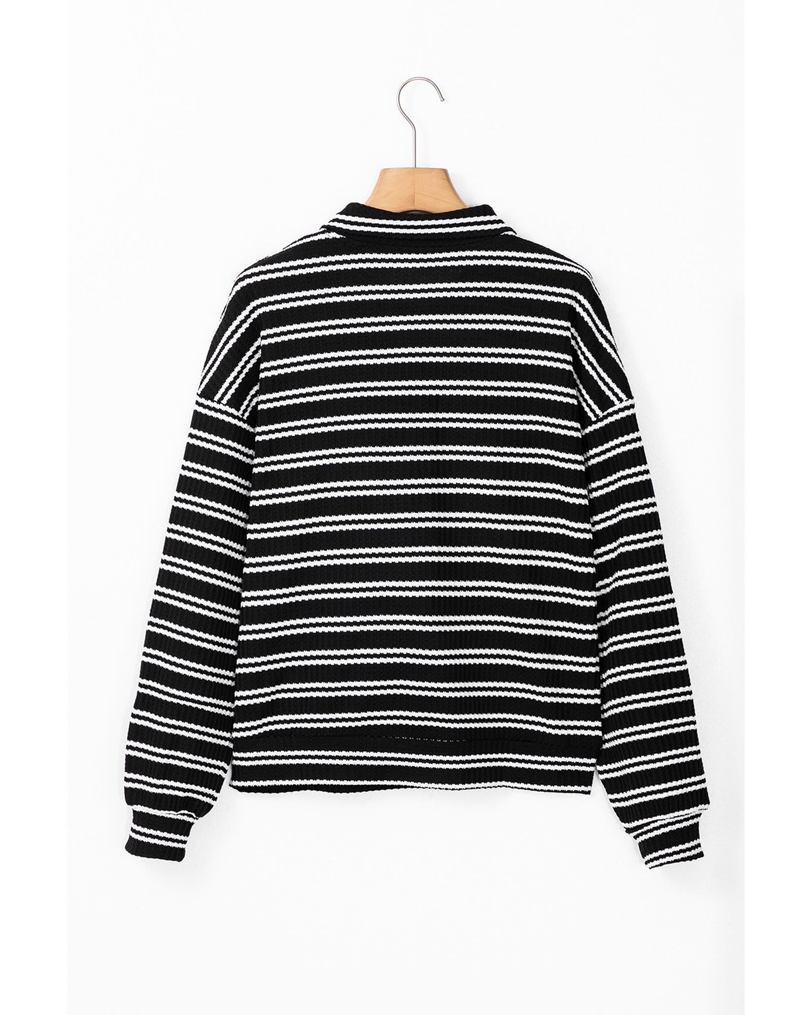 Black Stripe Textured Quarter Zip Collar Long Sleeve Top – XL