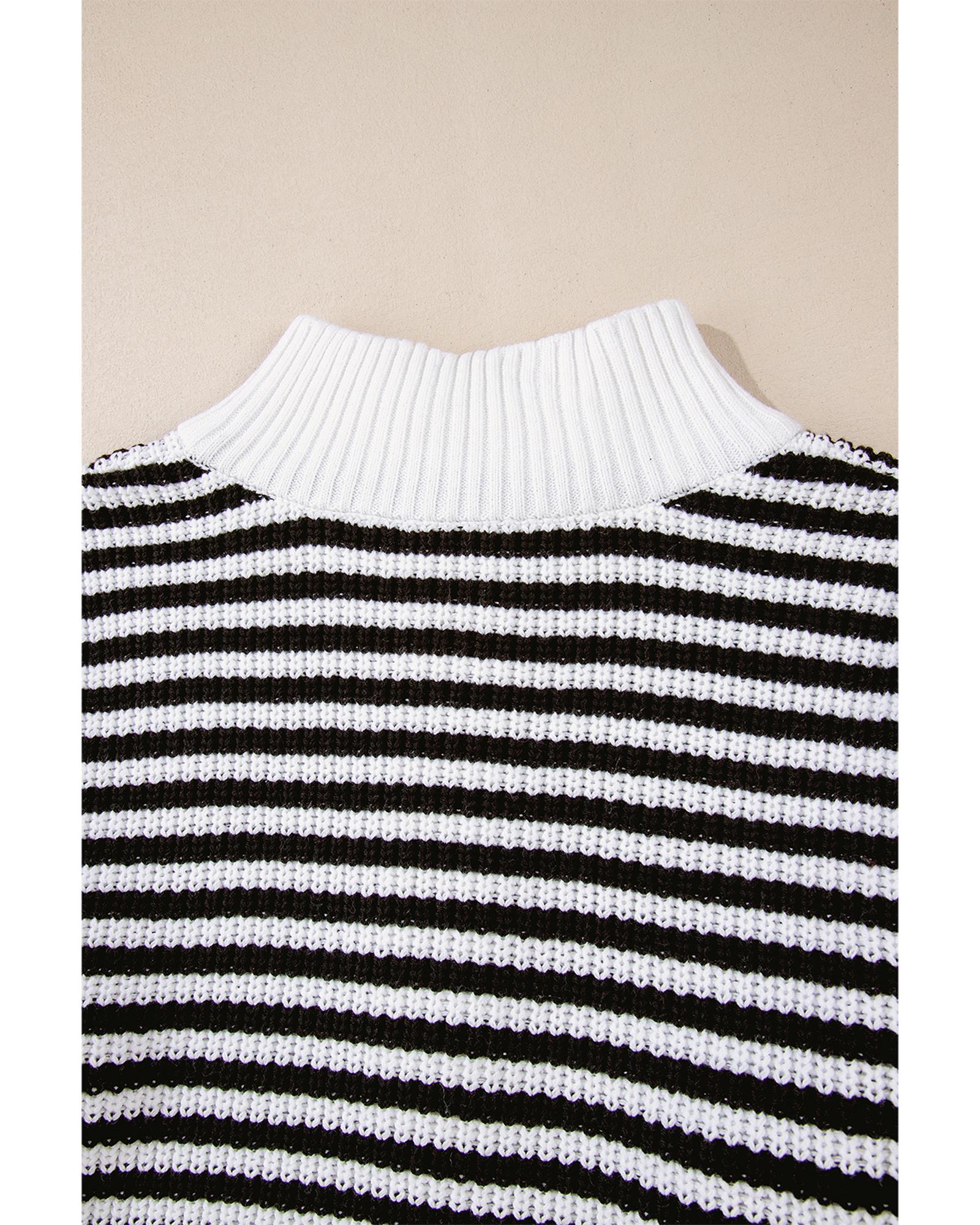Black Stripe Zip up Collar Drop Shoulder Sweater – XL