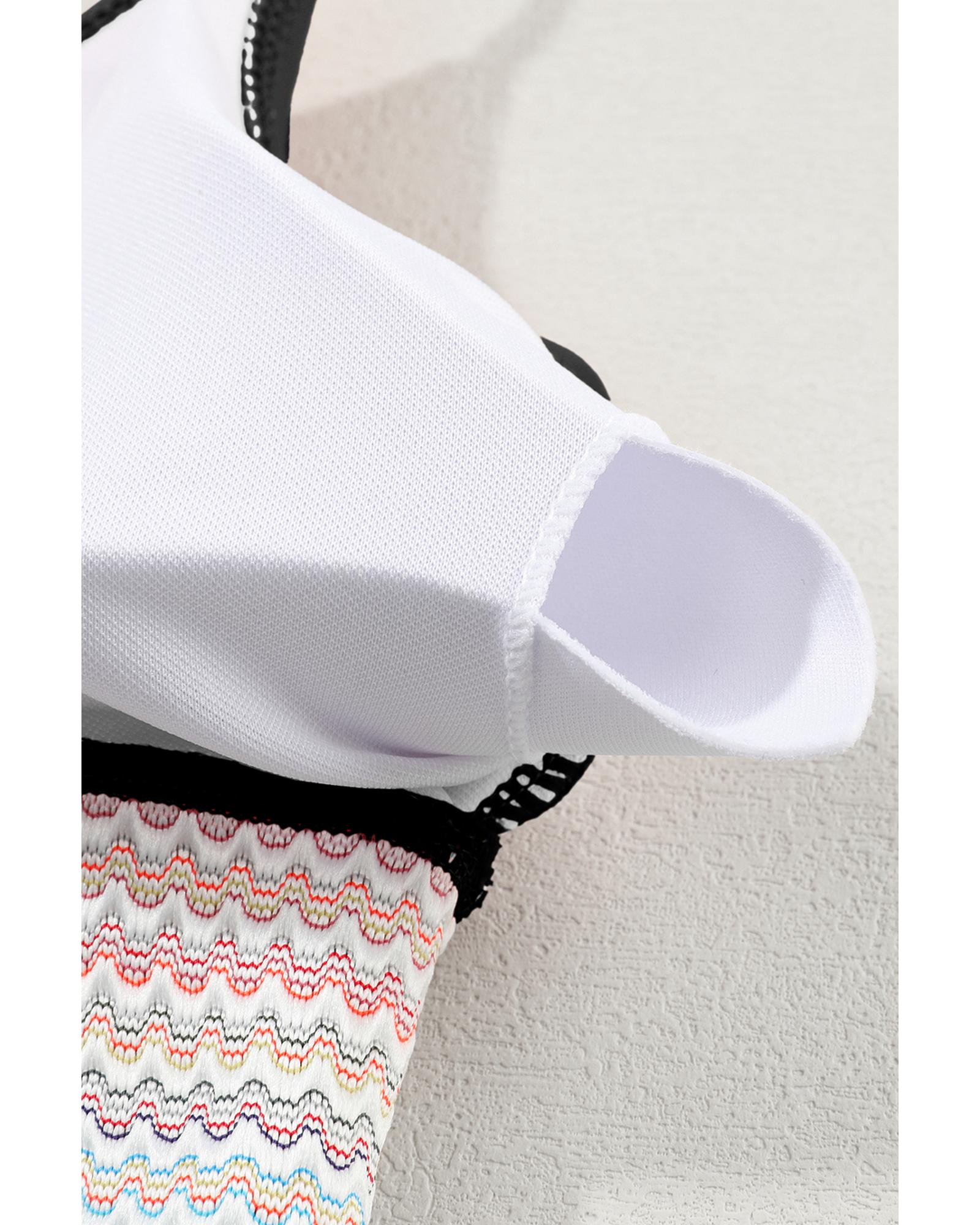 Black Striped Patchwork Spaghetti Strap High Waist Bikini Swimsuit – S