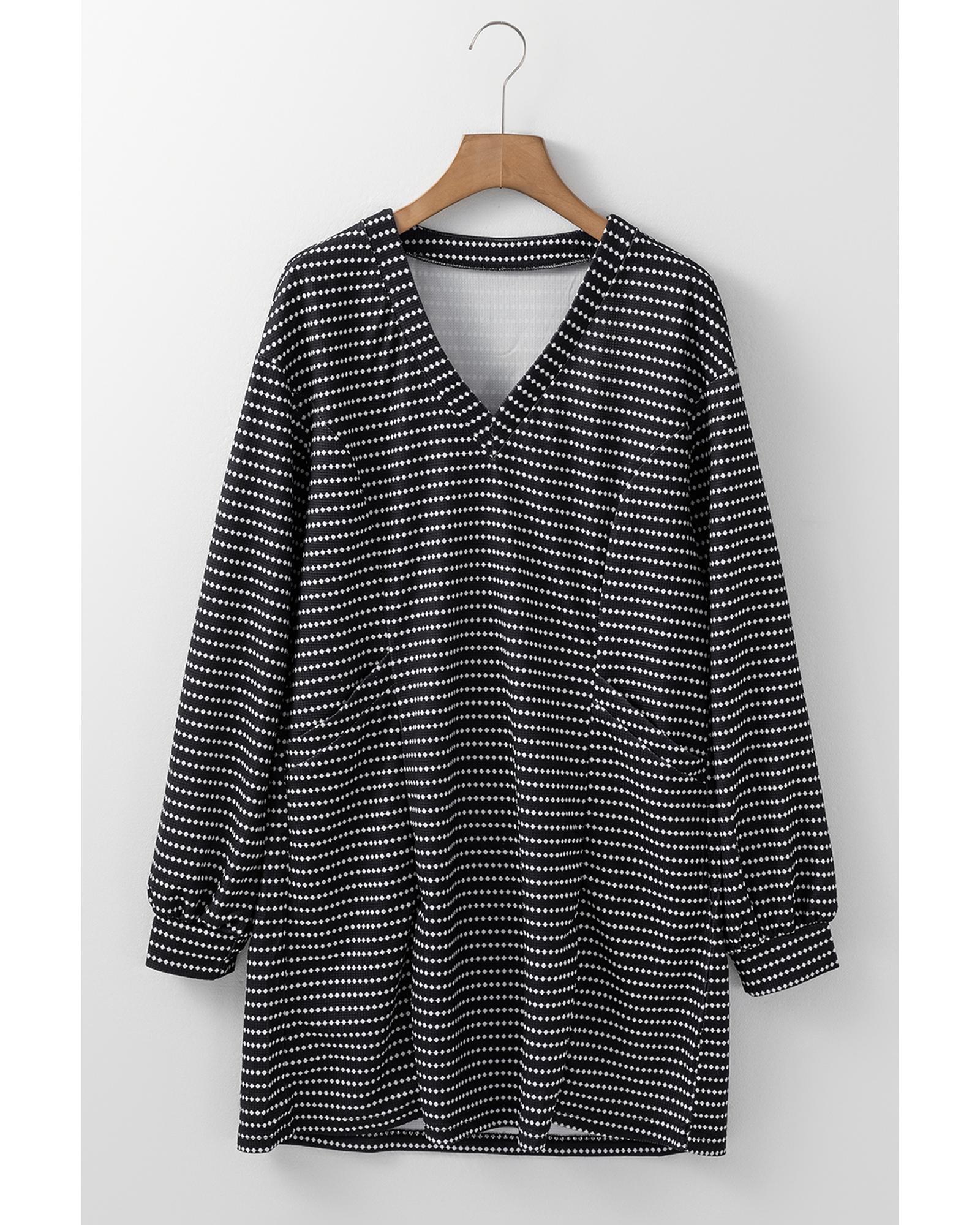 Black Striped V Neck Long Puff Sleeve Shift Dress – M