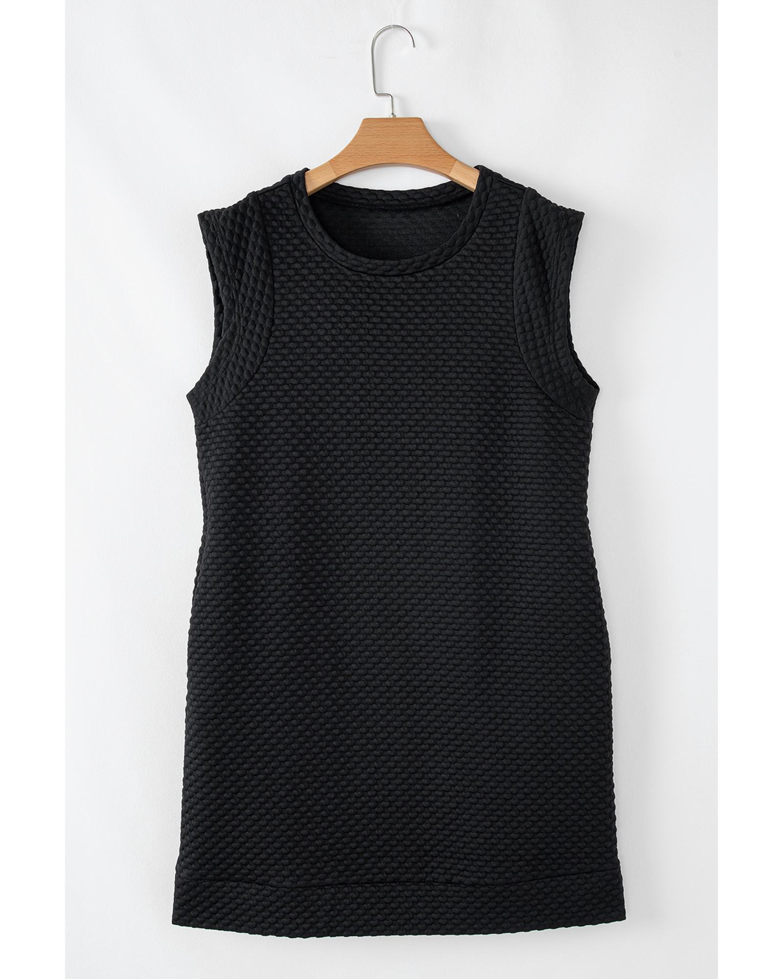 Black Textured Cap Sleeve T-shirt Shift Mini Dress – M
