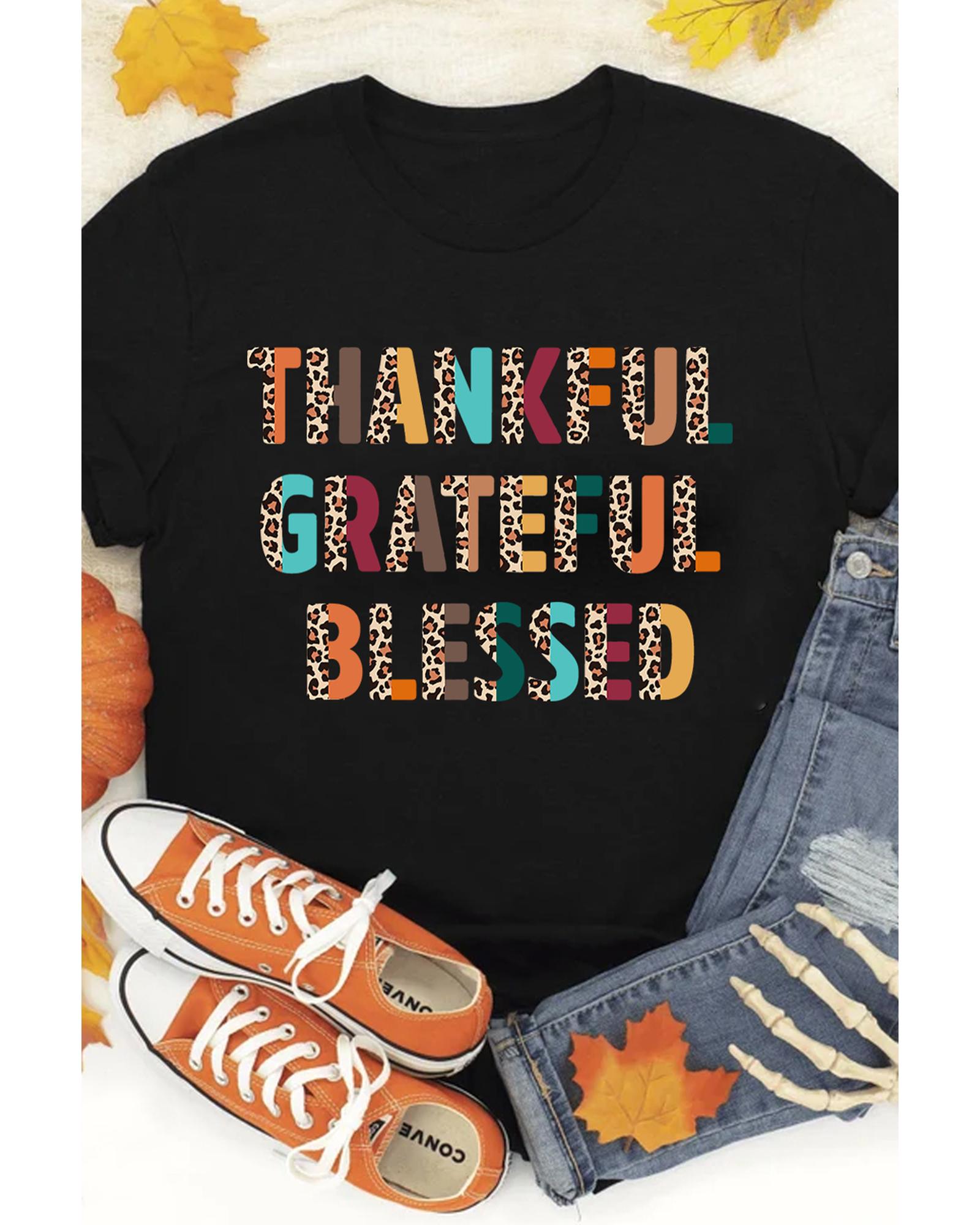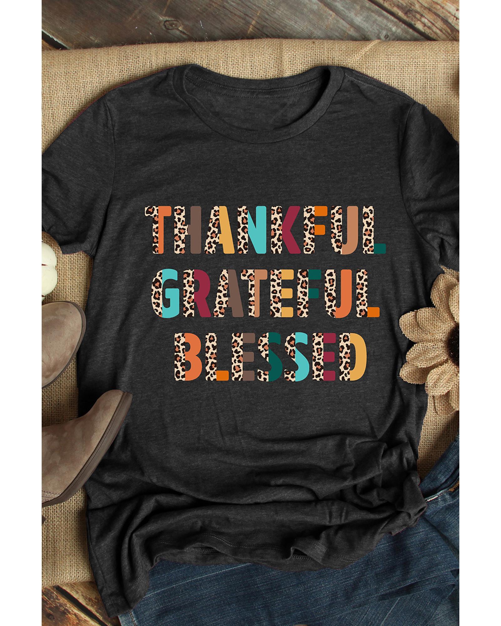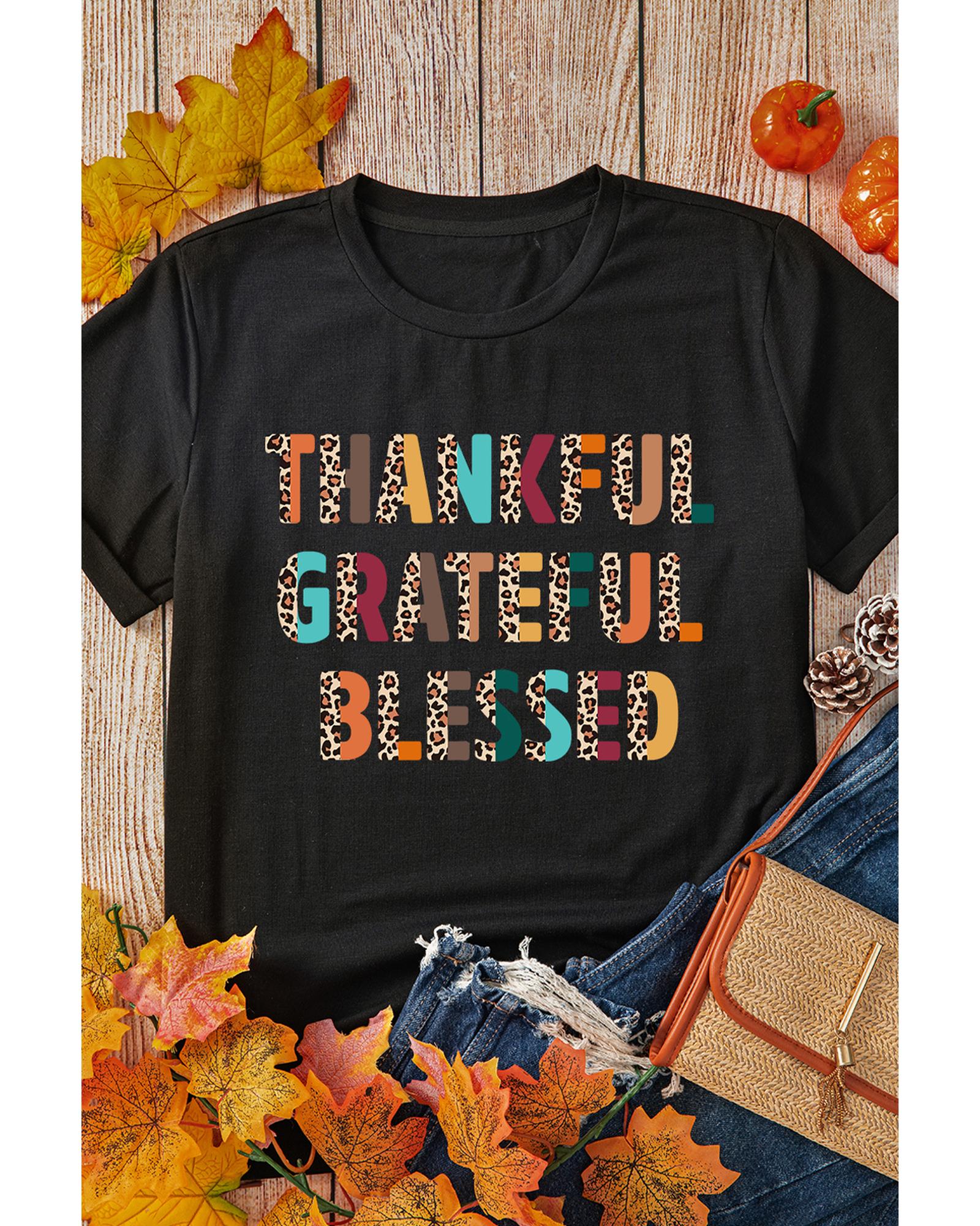 Black Thankful Grateful Blessed Leopard Print Crewneck T Shirt – 2XL