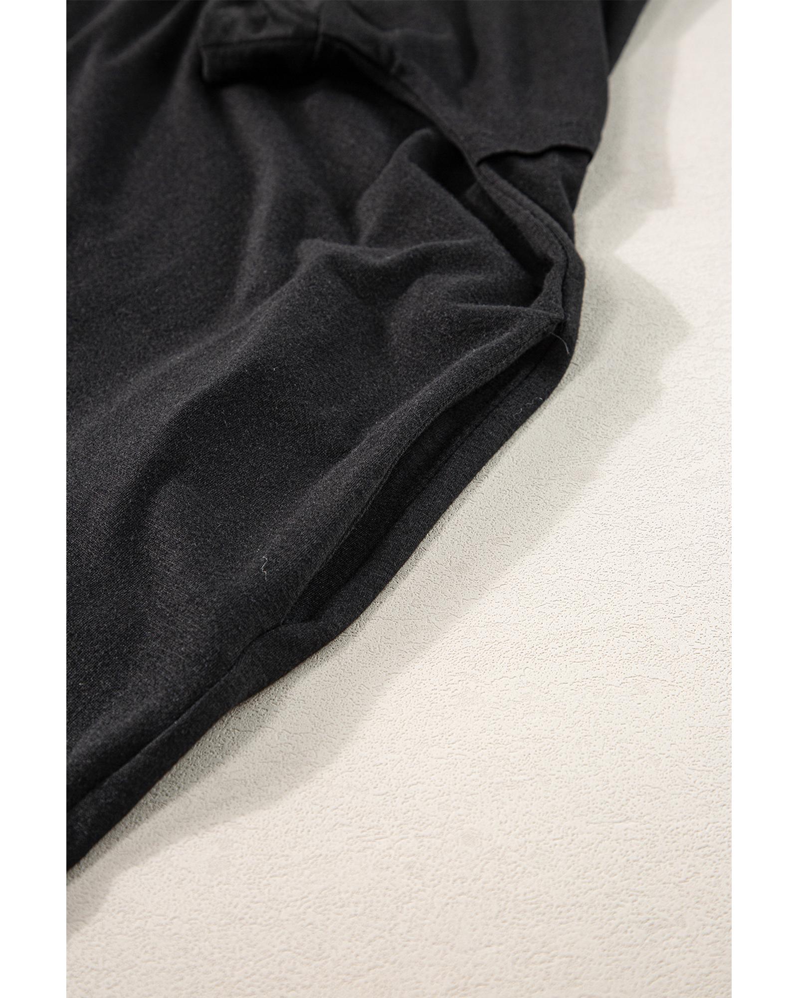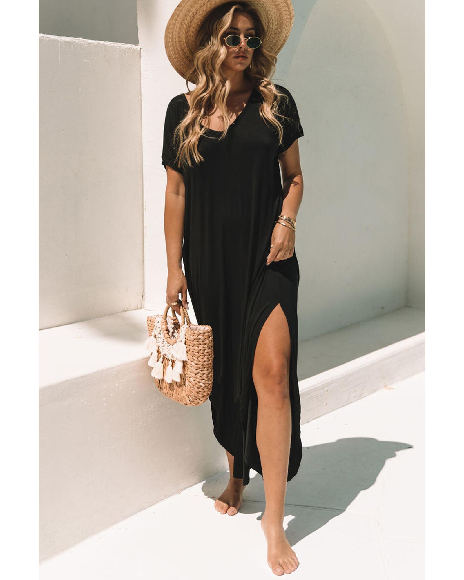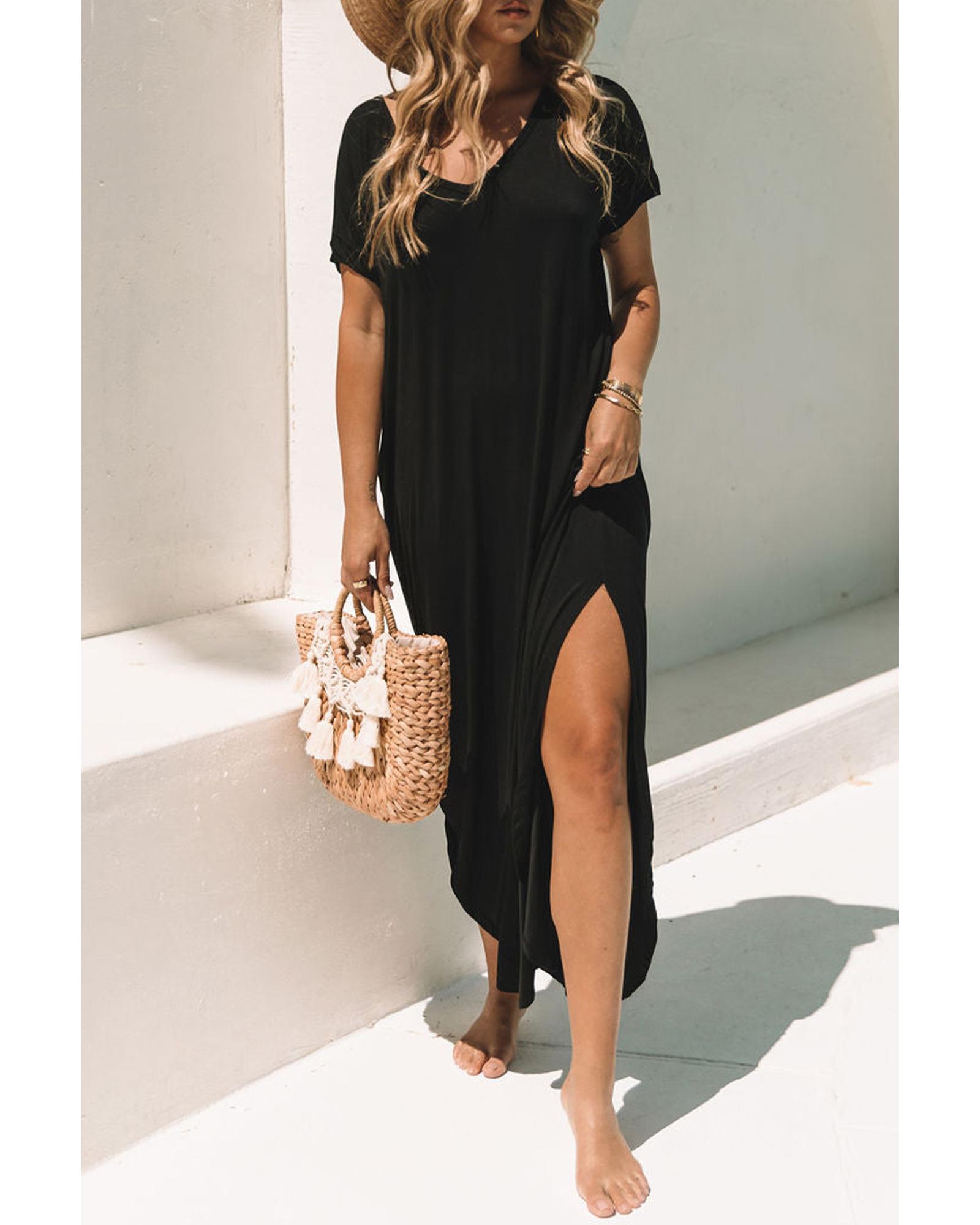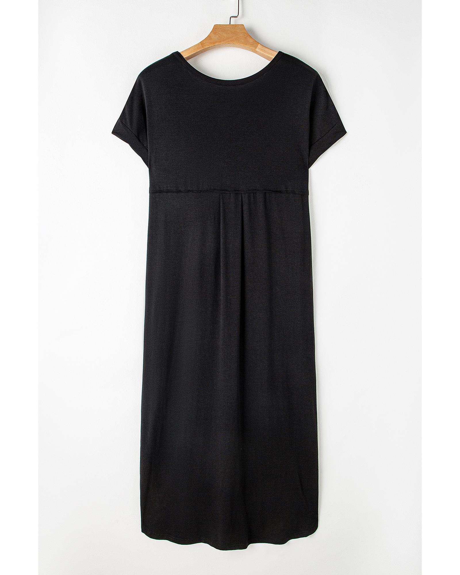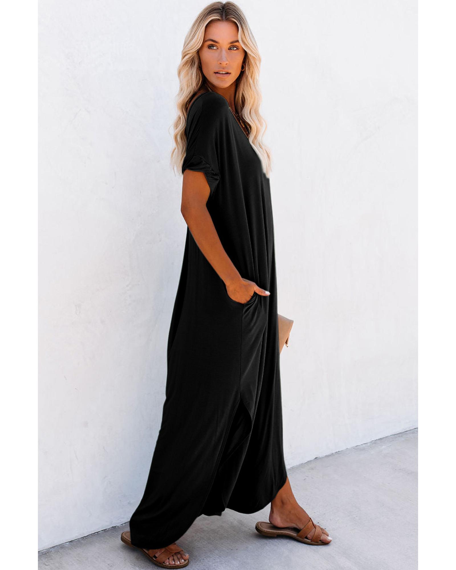 Black V Neck Hidden Pocket Splits Maxi T-shirt Dress – L