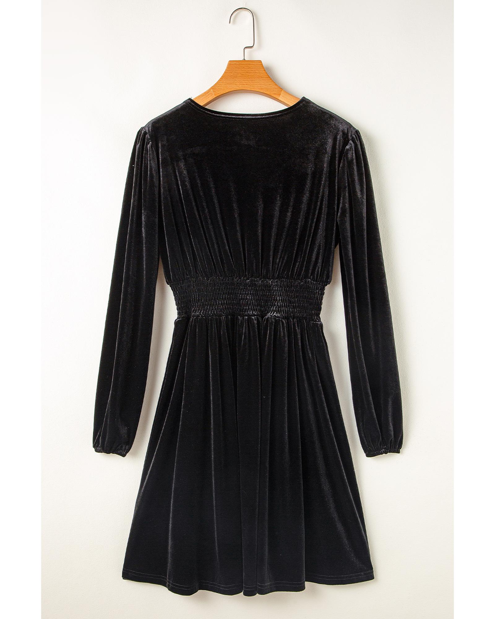 Black Velvet Long Sleeve Surplice High Waist Mini Dress – S