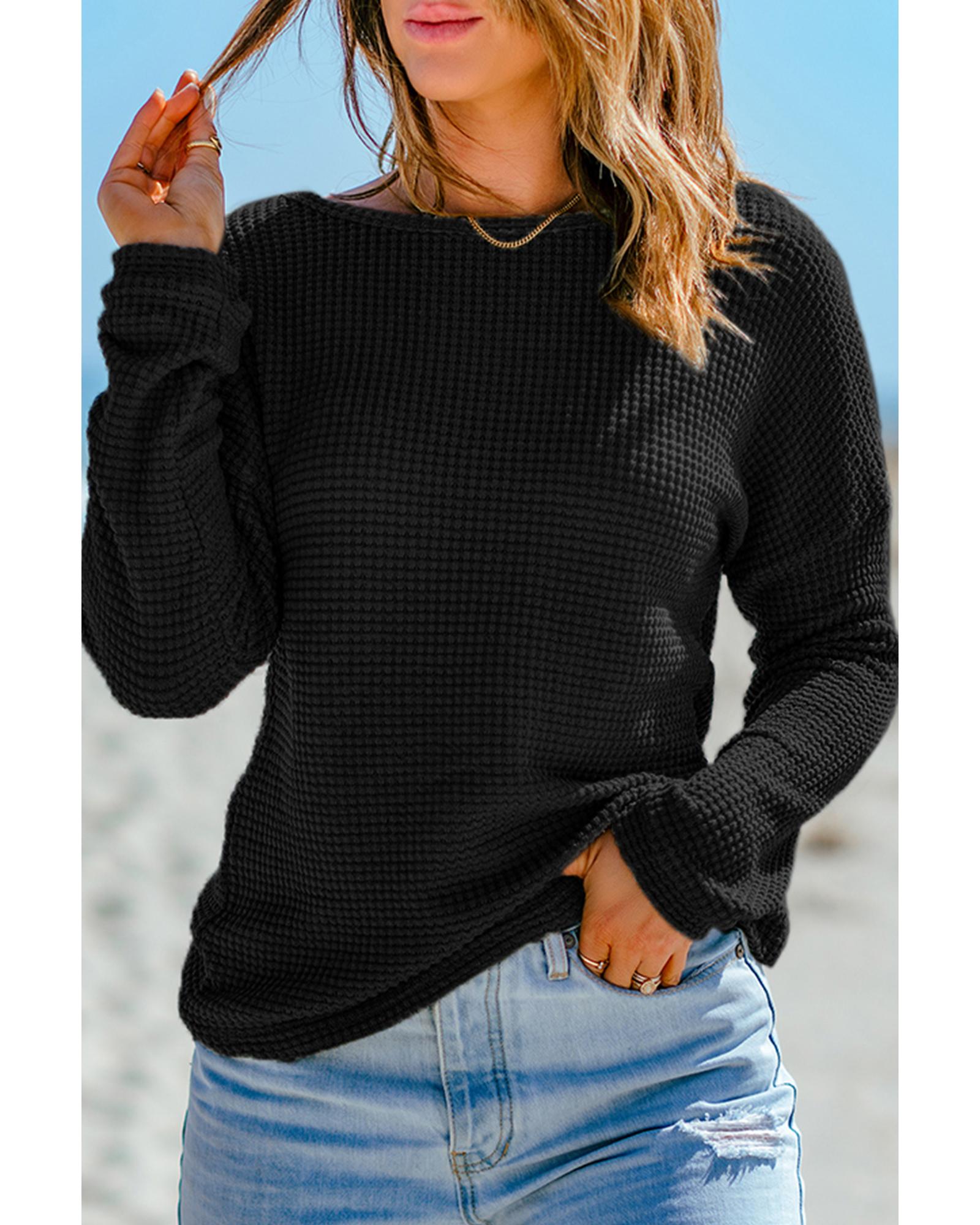 Black Waffle Knit Drop Shoulder Long Sleeve Top – 2XL