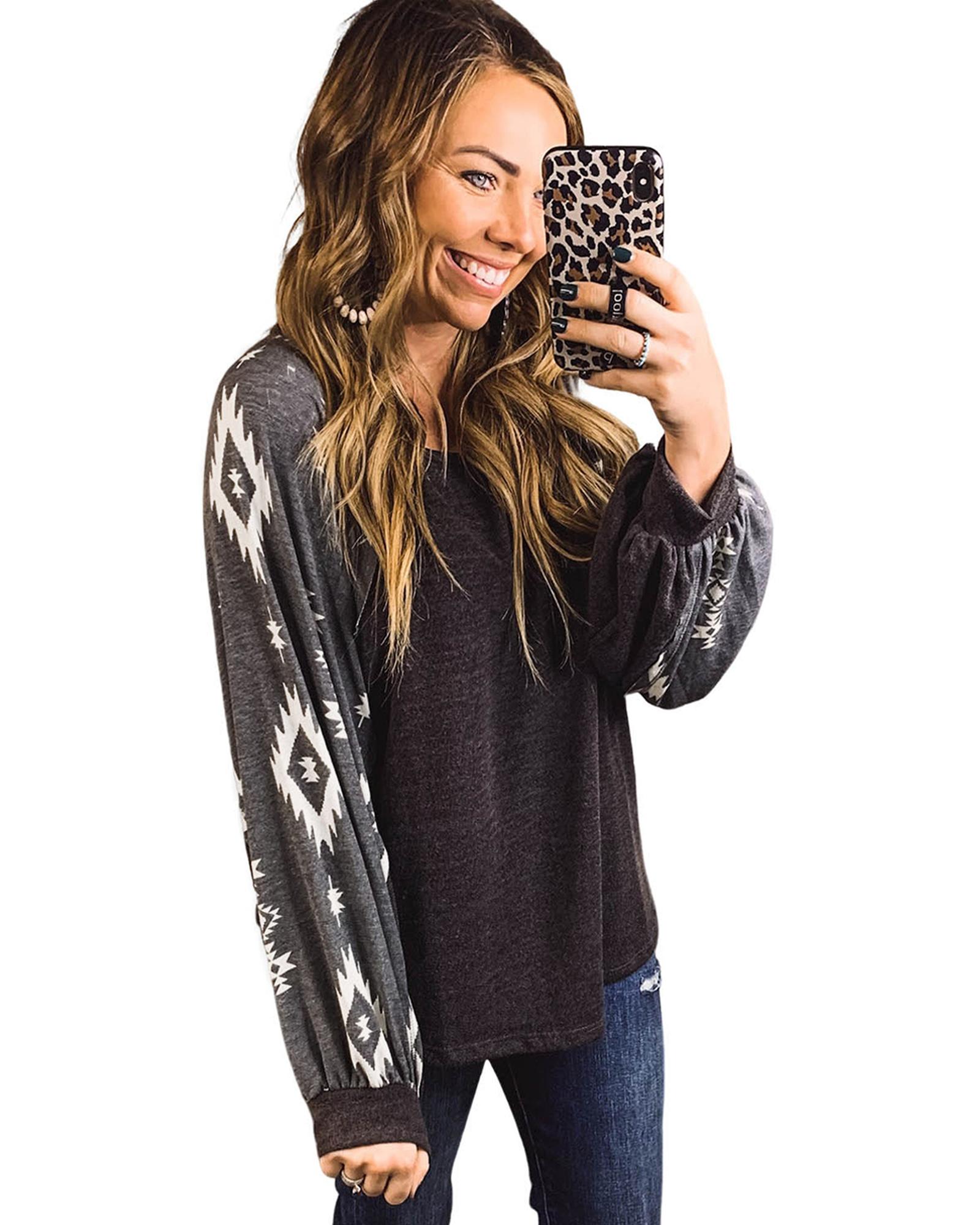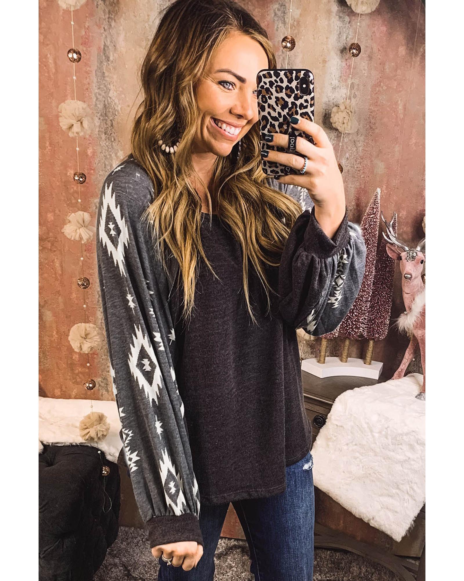 Black Western Print Patch Long Sleeve Top – S