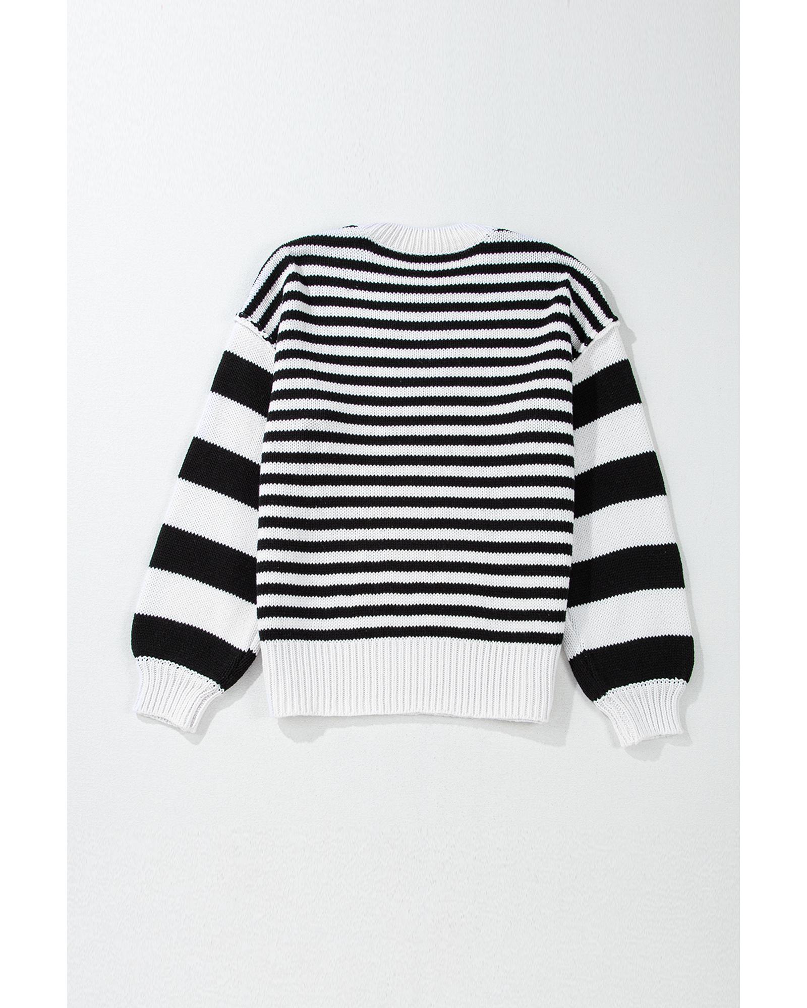 Black white Striped Drop Shoulder Bishop Sleeve Knit Sweater – XL