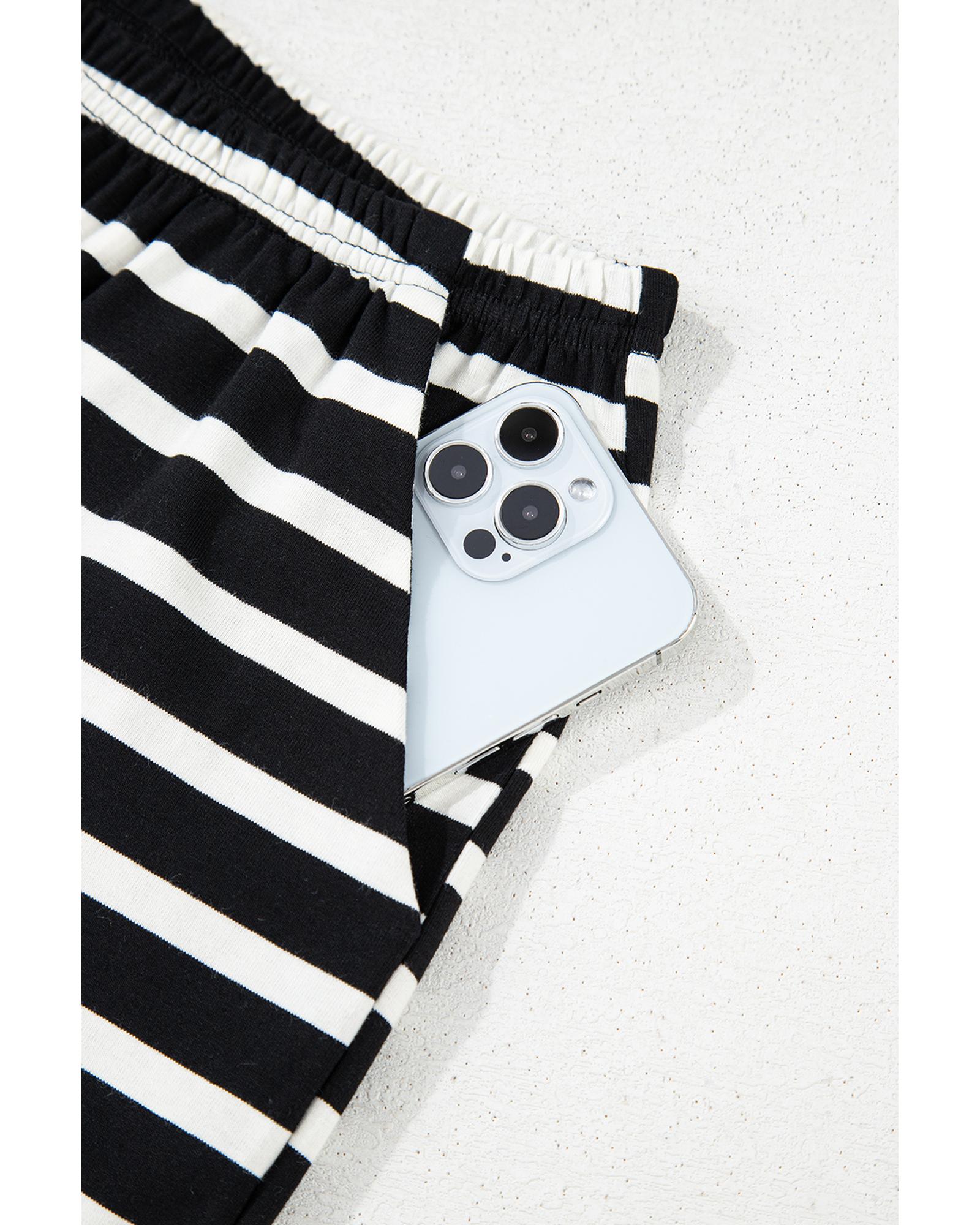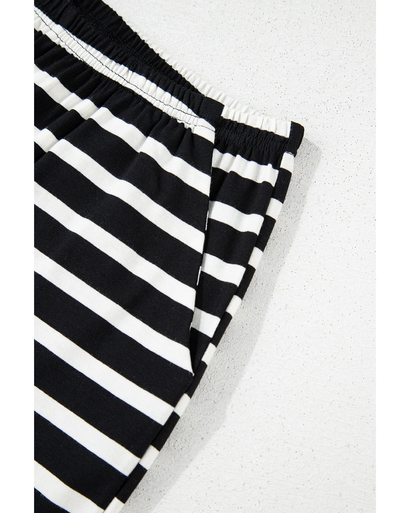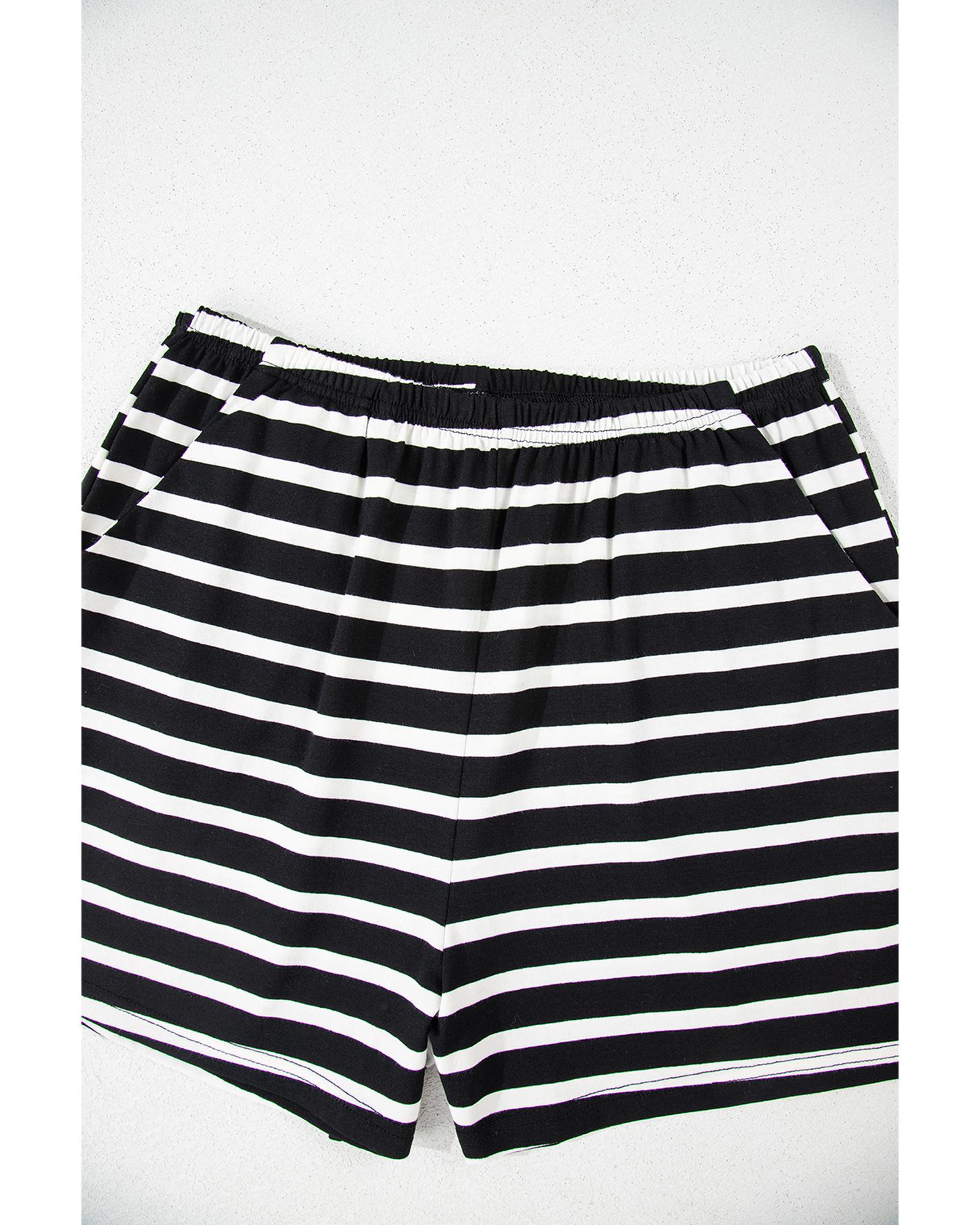Black White Striped Short Sleeve Top and Shorts Set - M Original price was: $66.99.Current price is: $35.99.