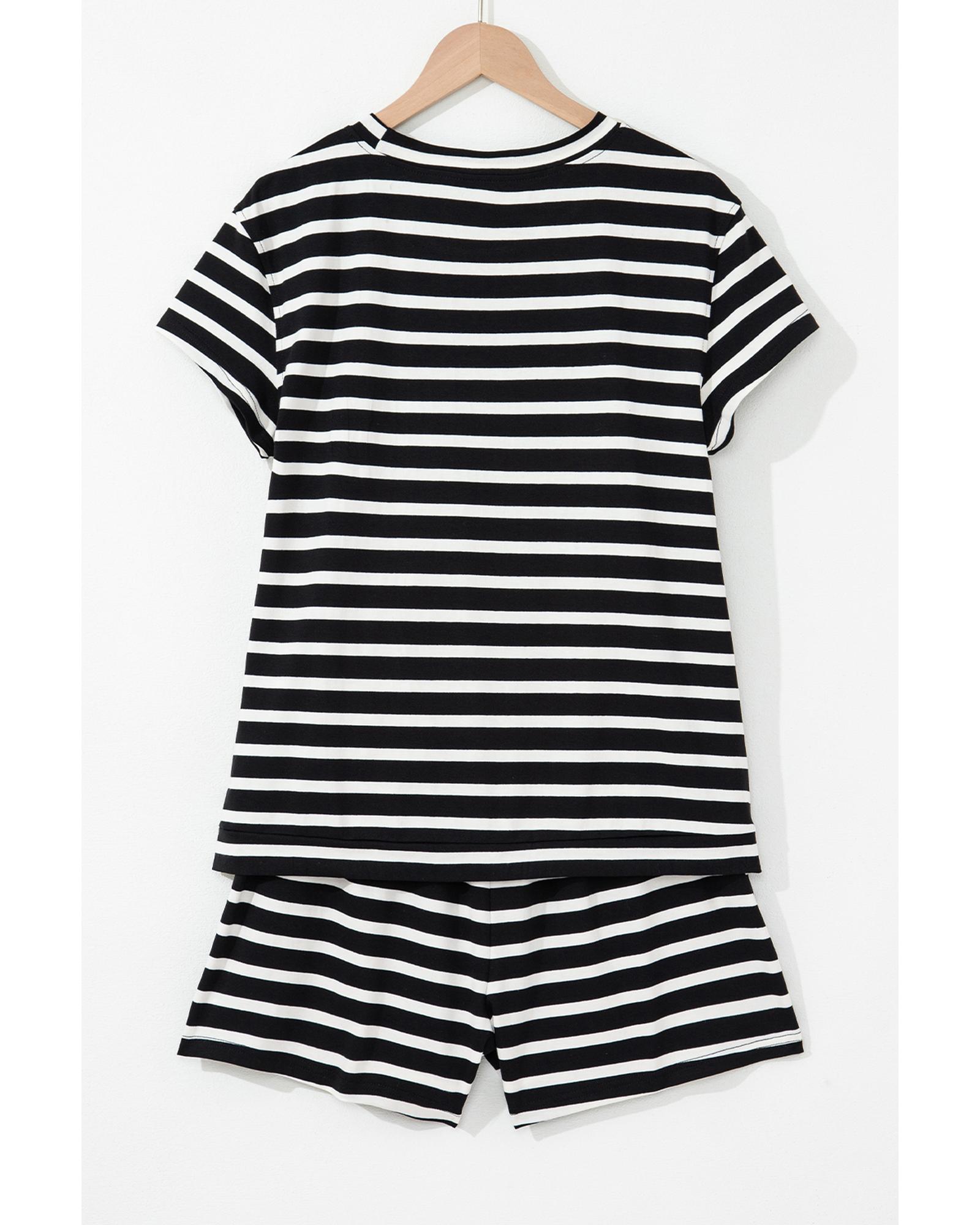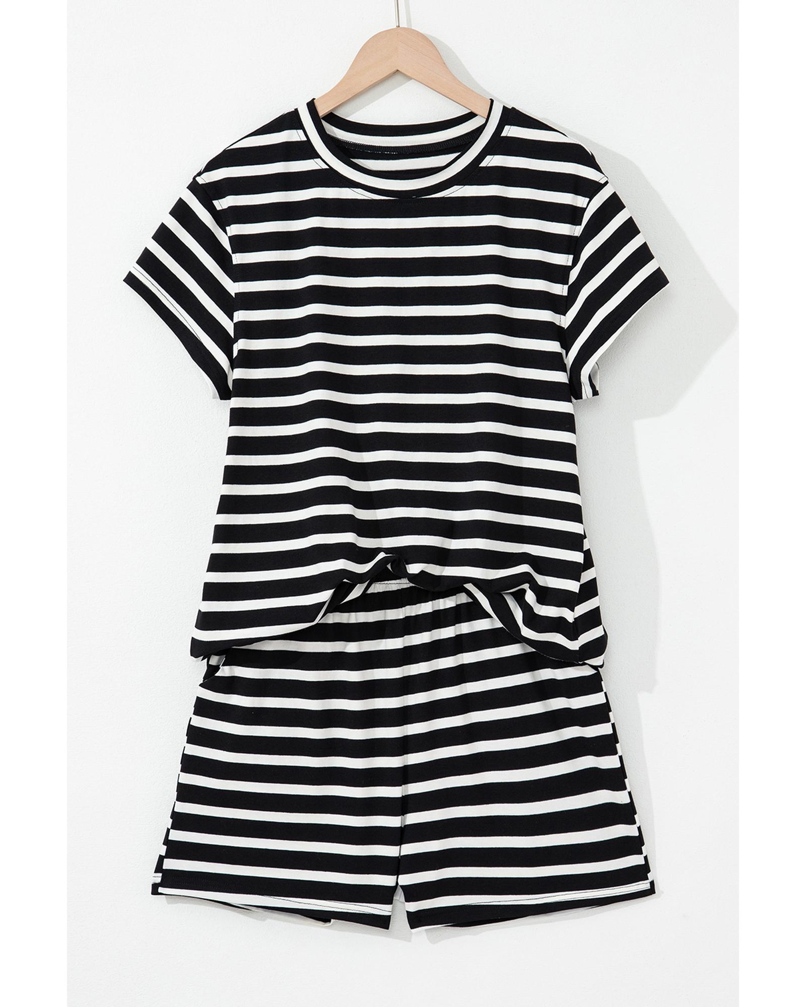 Black White Striped Short Sleeve Top and Shorts Set – XL