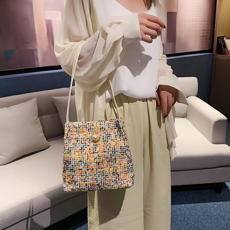 Black Woolen Knit Bucket Bag For Women – Yellow Onesize