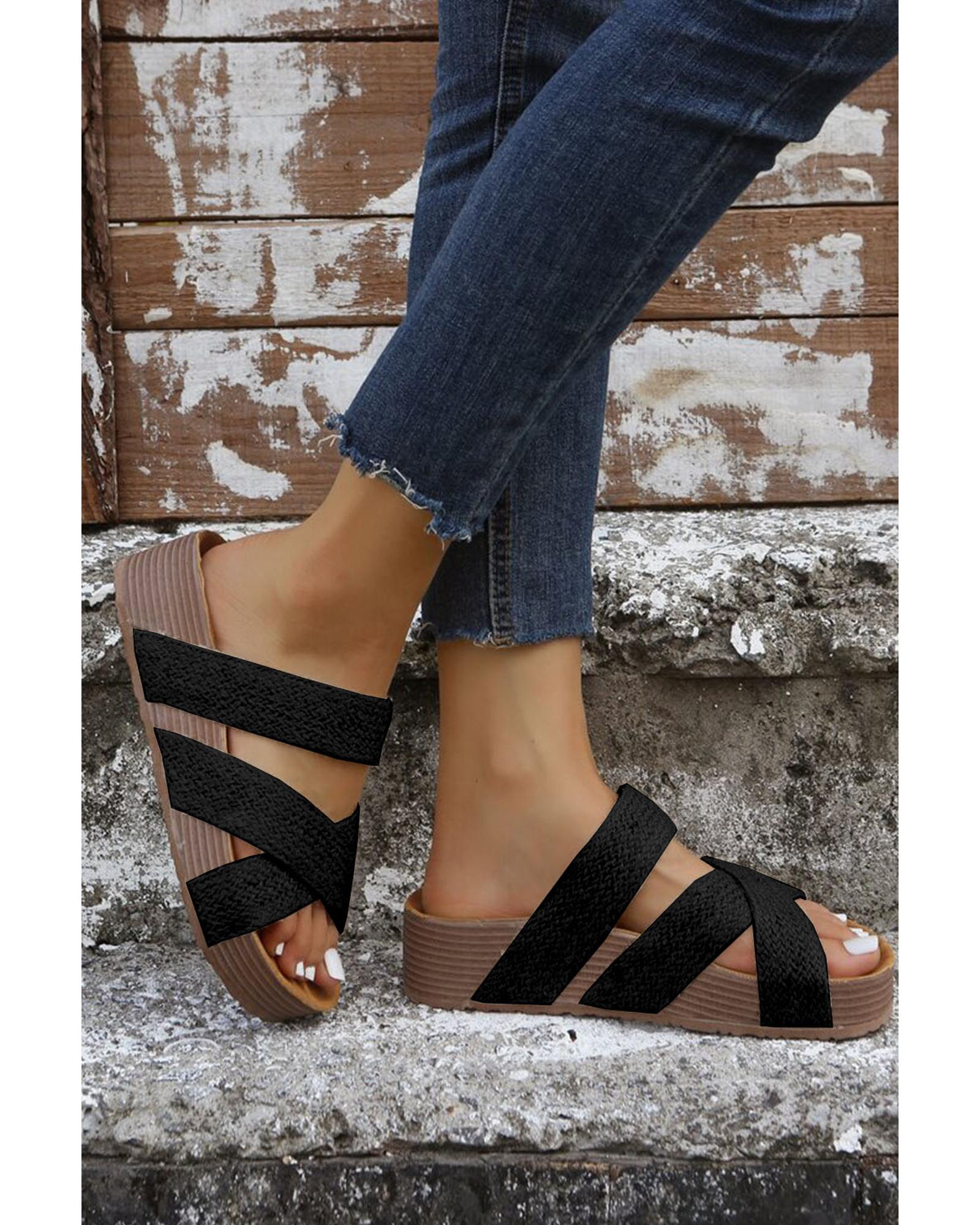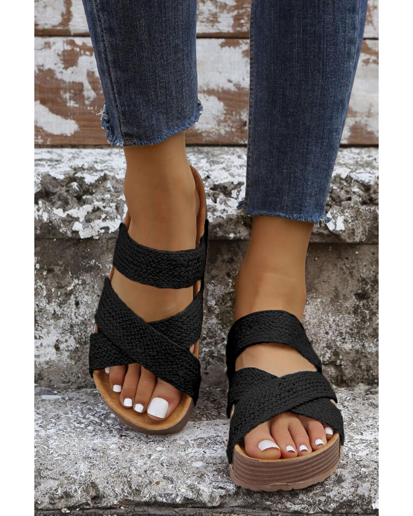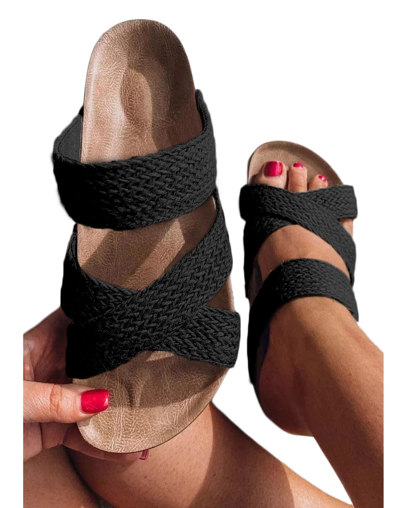 Black Woven Cross Criss Hollowed Slip-On Slippers – 40 EU