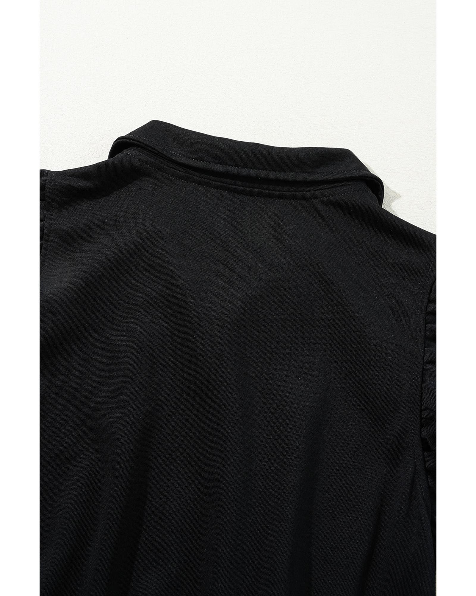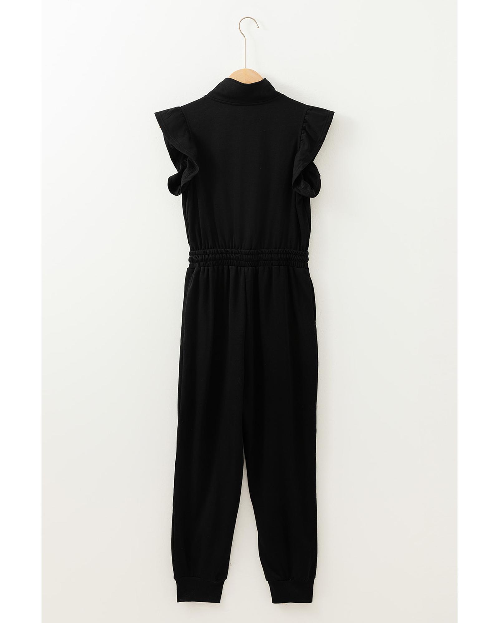 Black Zipper Flutter Sleeve Drawstring High Waist Jumpsuit – XL