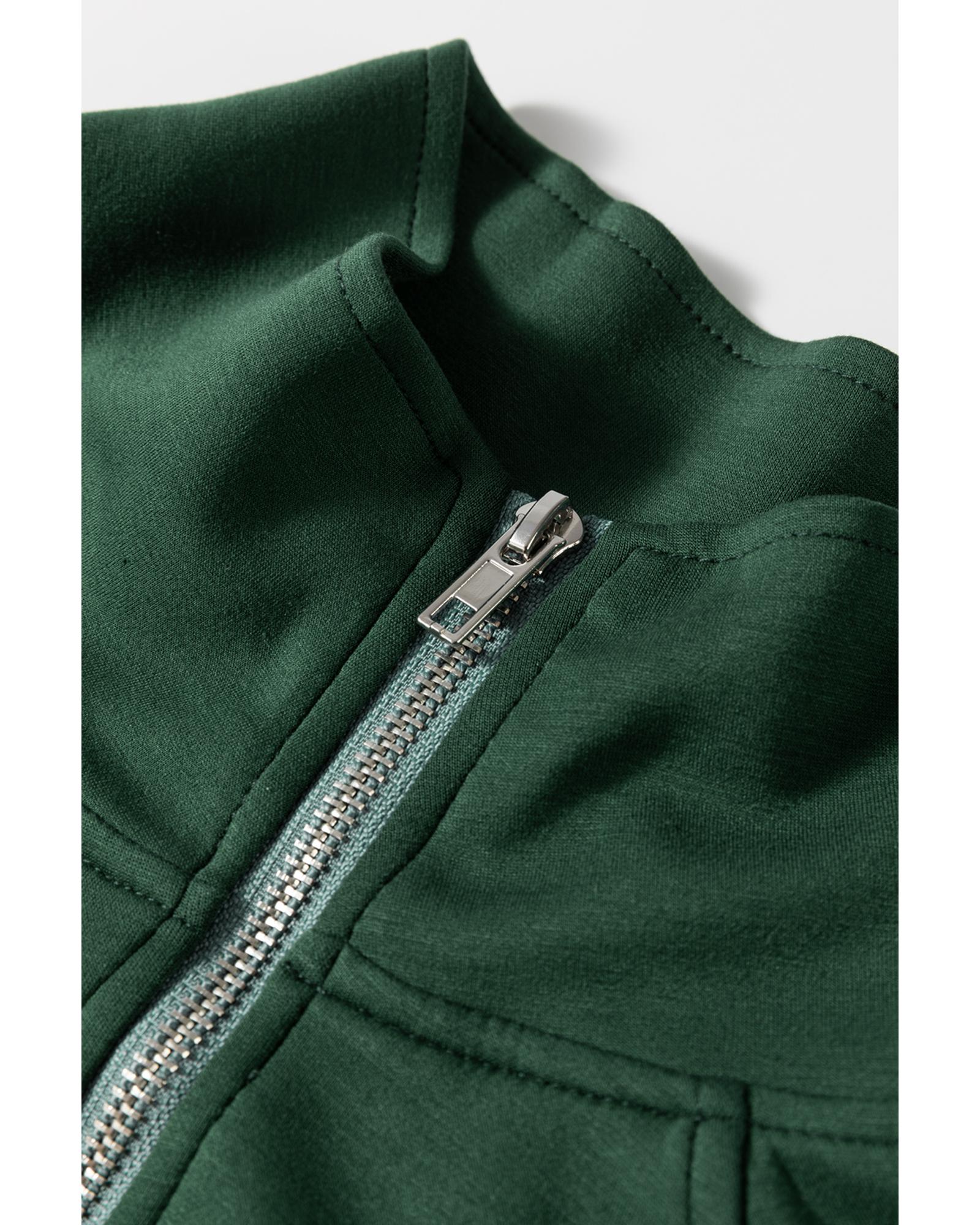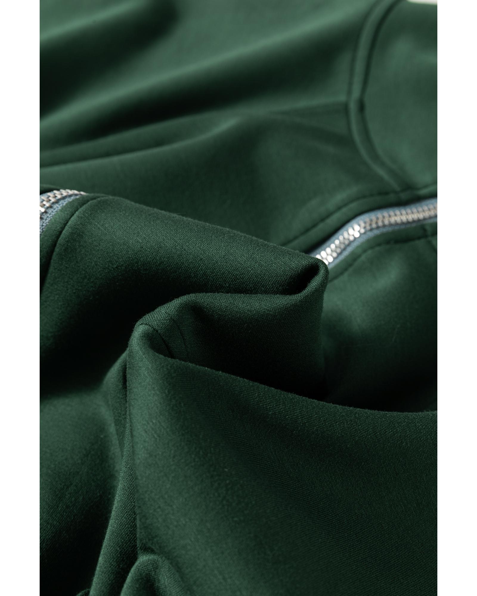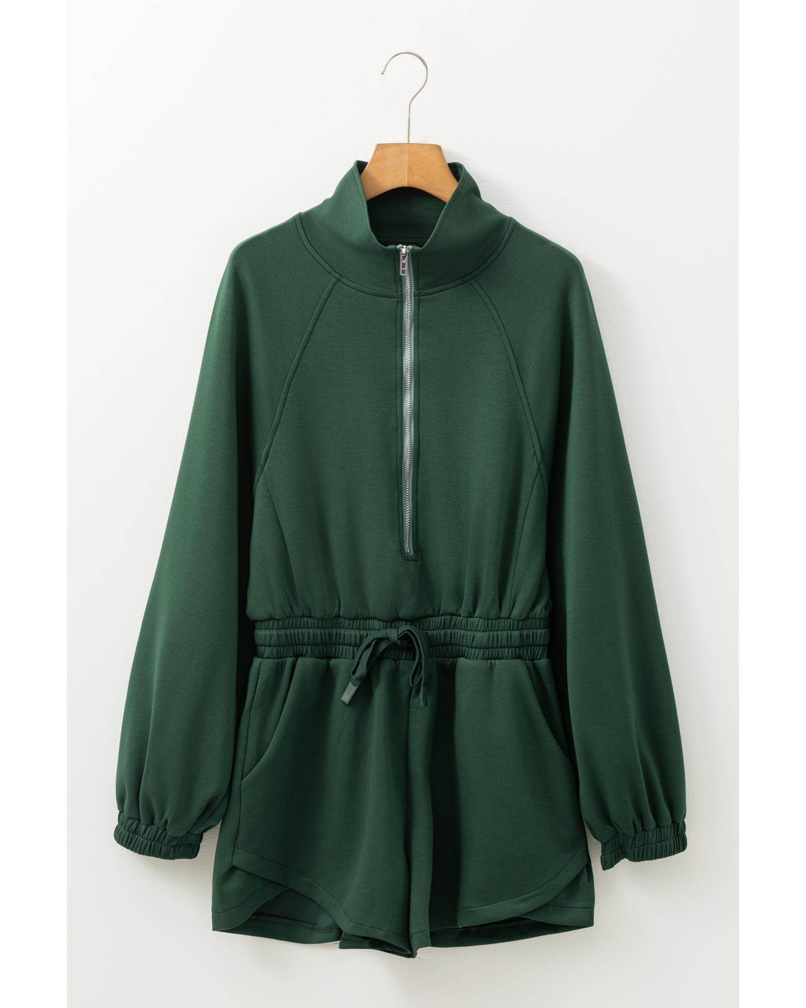 Blackish Green Collared Half Zip French Terry Knit Drawstring Casual Romper – L