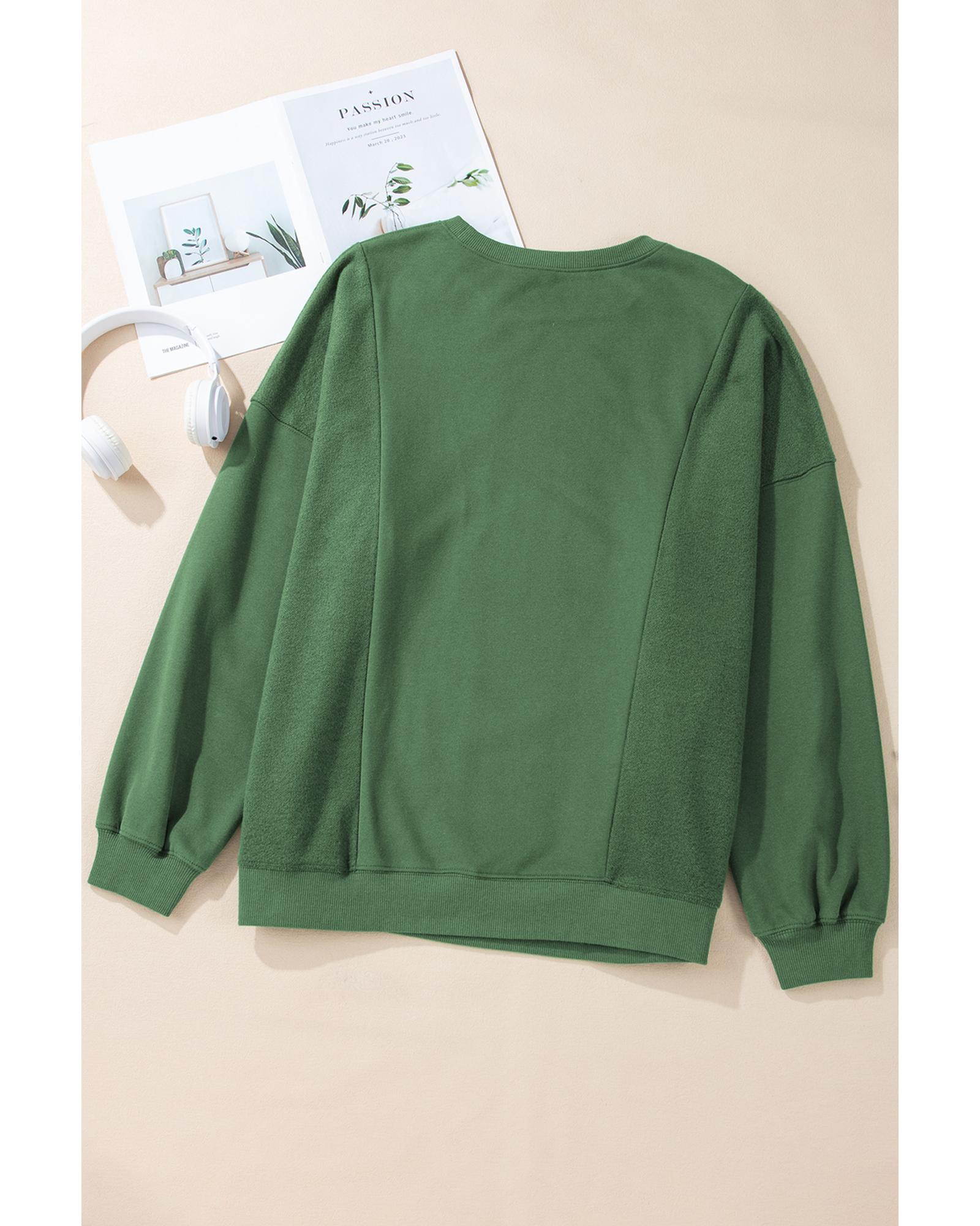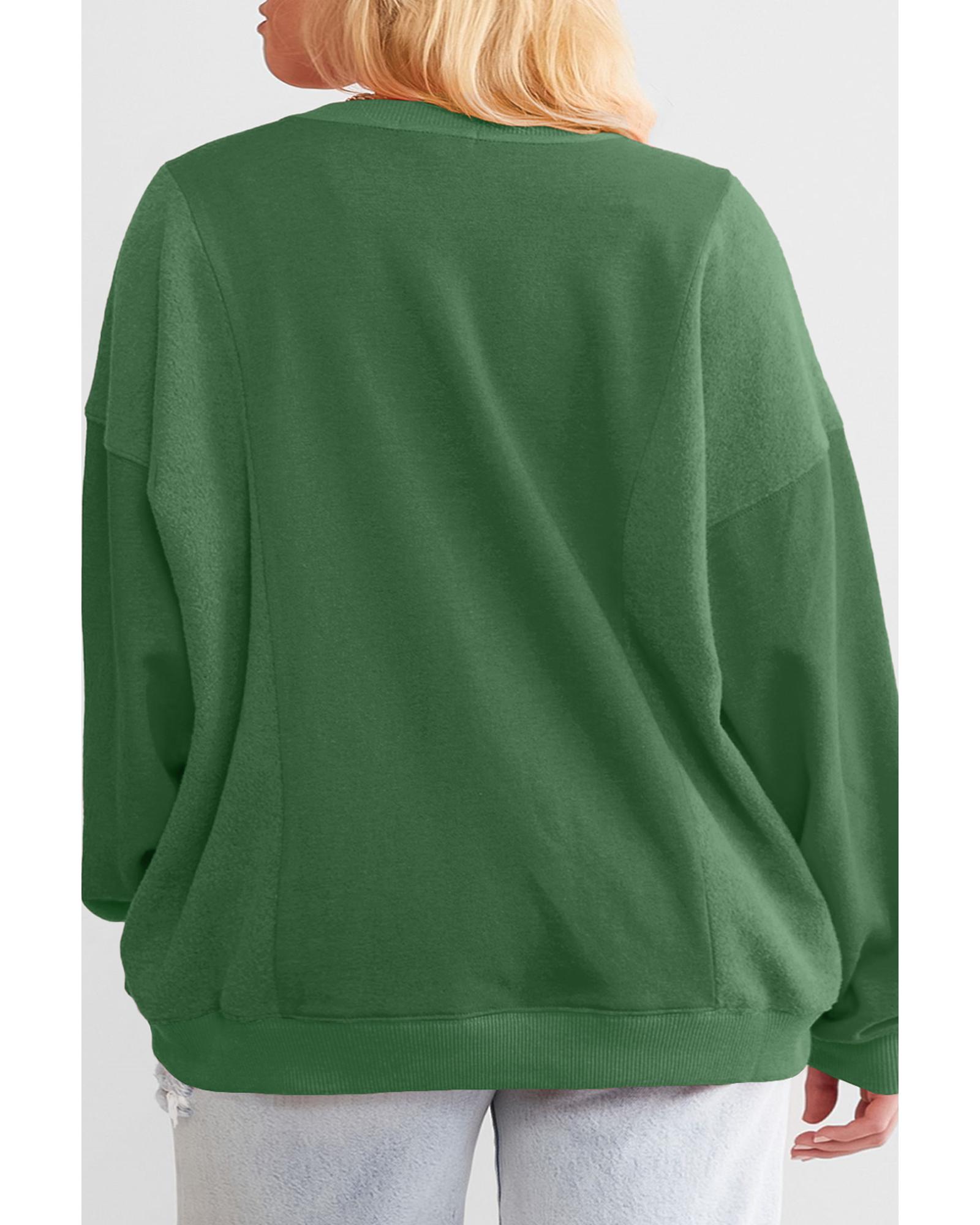 Blackish Green Loose Patchwork Crewneck Plus Size Sweatshirt – 3X