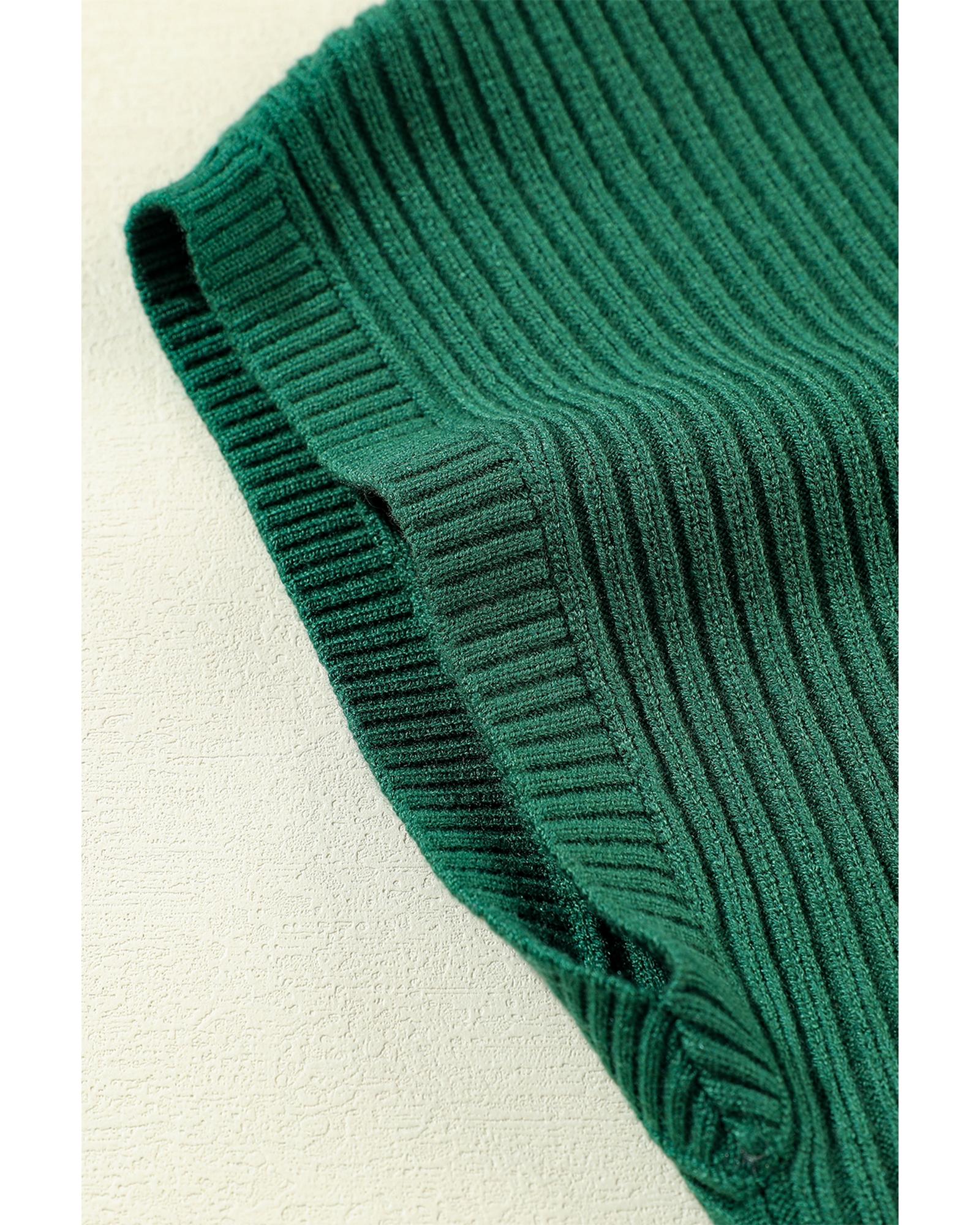 Blackish Green Patch Pocket Ribbed Knit Short Sleeve Sweater – M