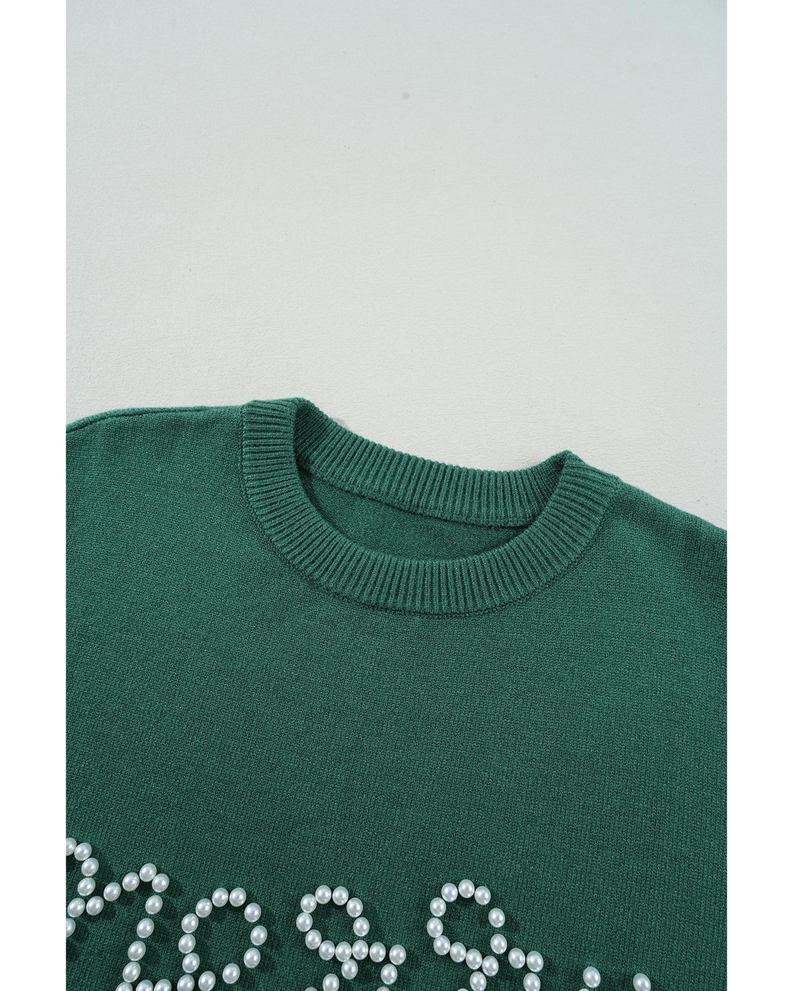 Blackish Green Pearl Beaded Merry Casual Sweater – 2XL