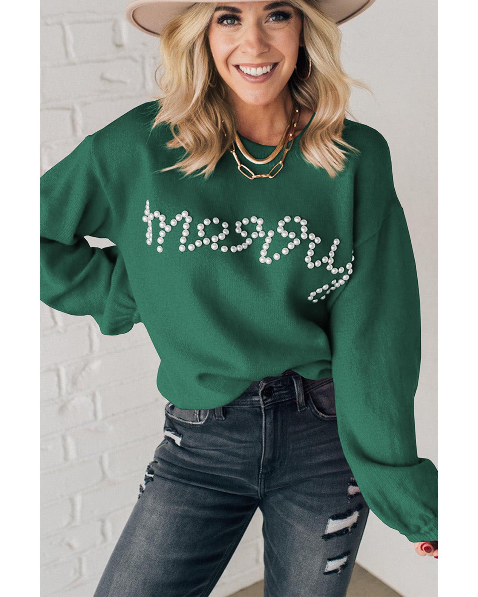 Blackish Green Pearl Beaded Merry Casual Sweater – M