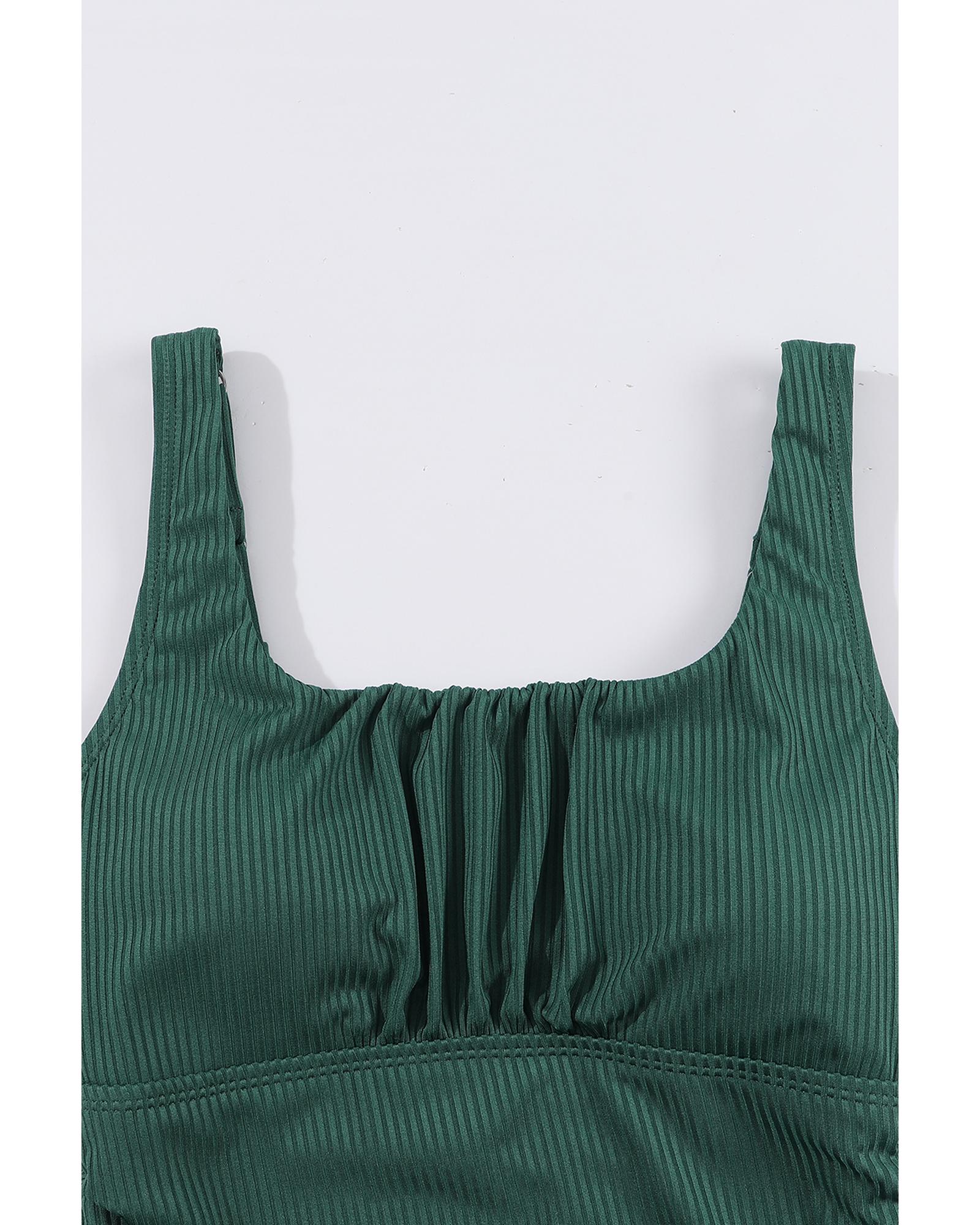 Blackish Green Ruched U Neck Ribbed Tankini – L
