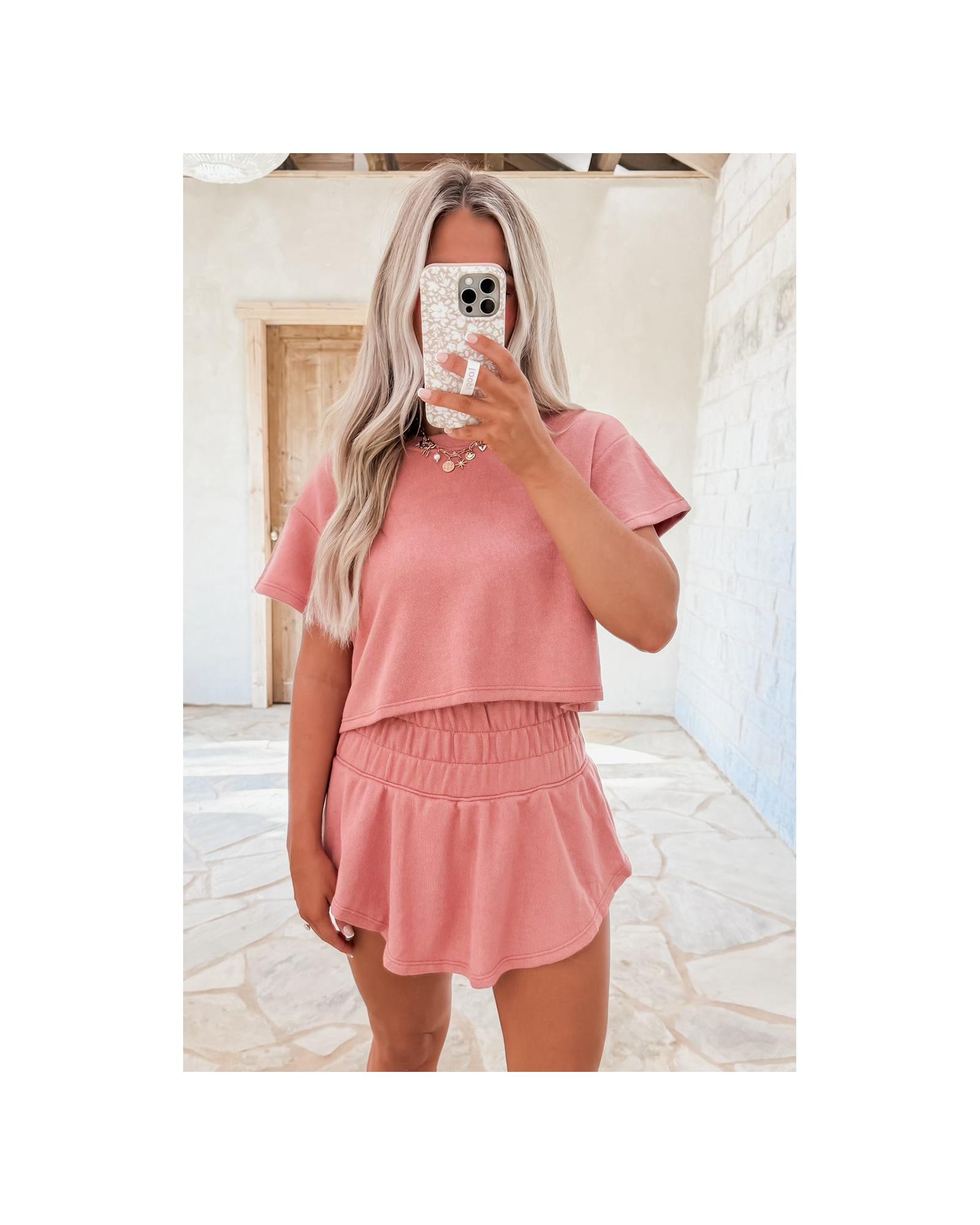 Blossom 2pcs Cropped Tee and Ruffle High Waist Skort Set – XL