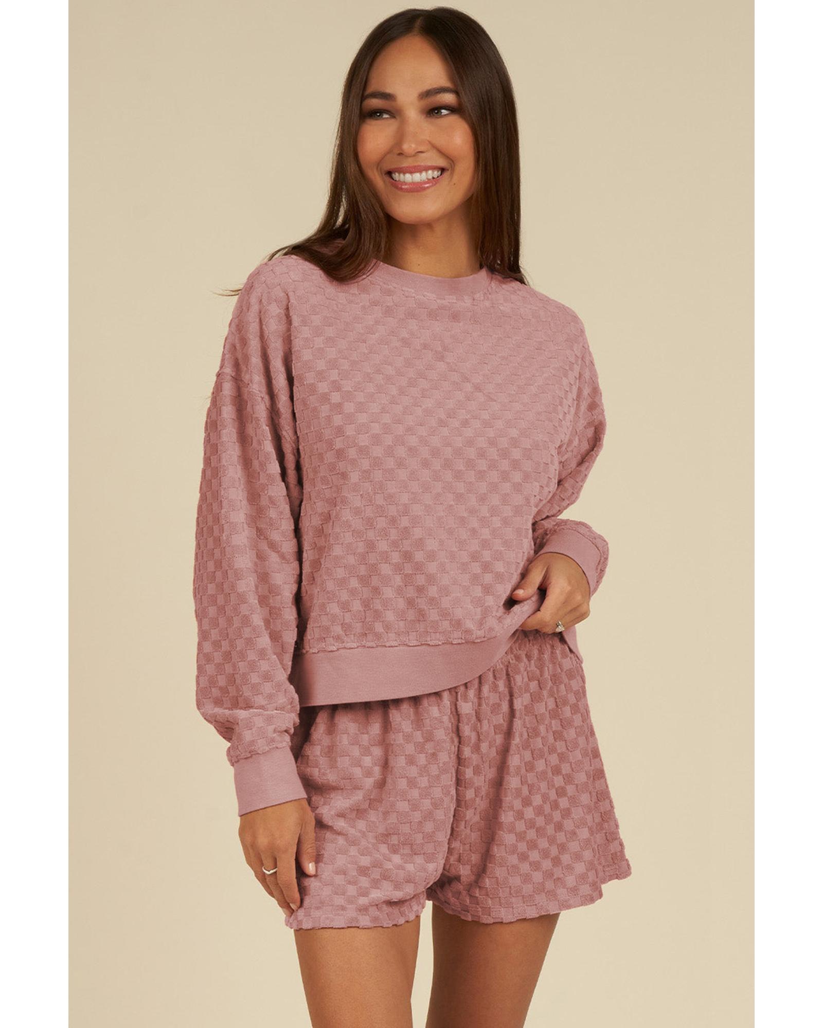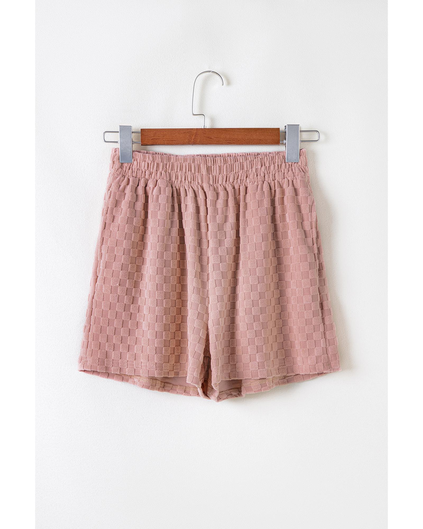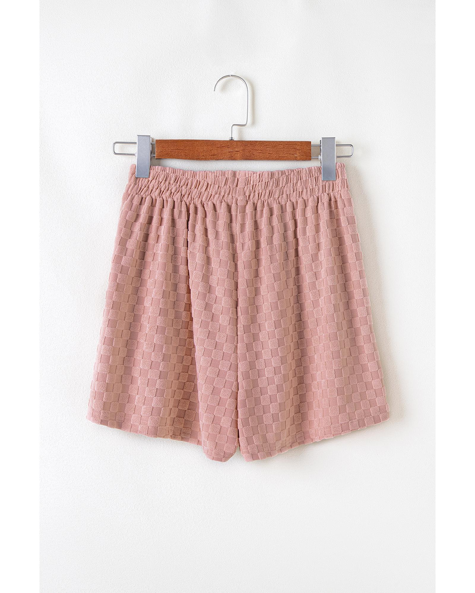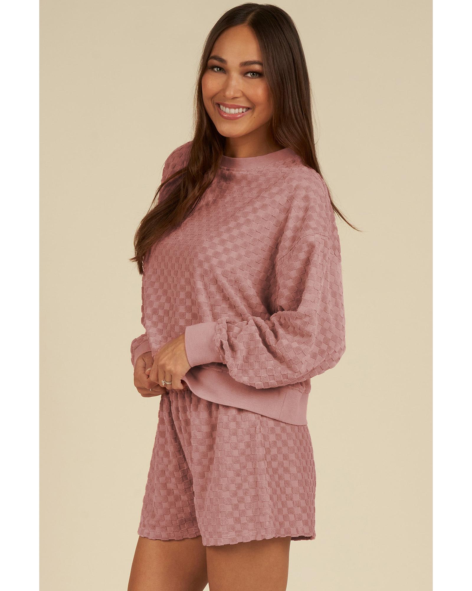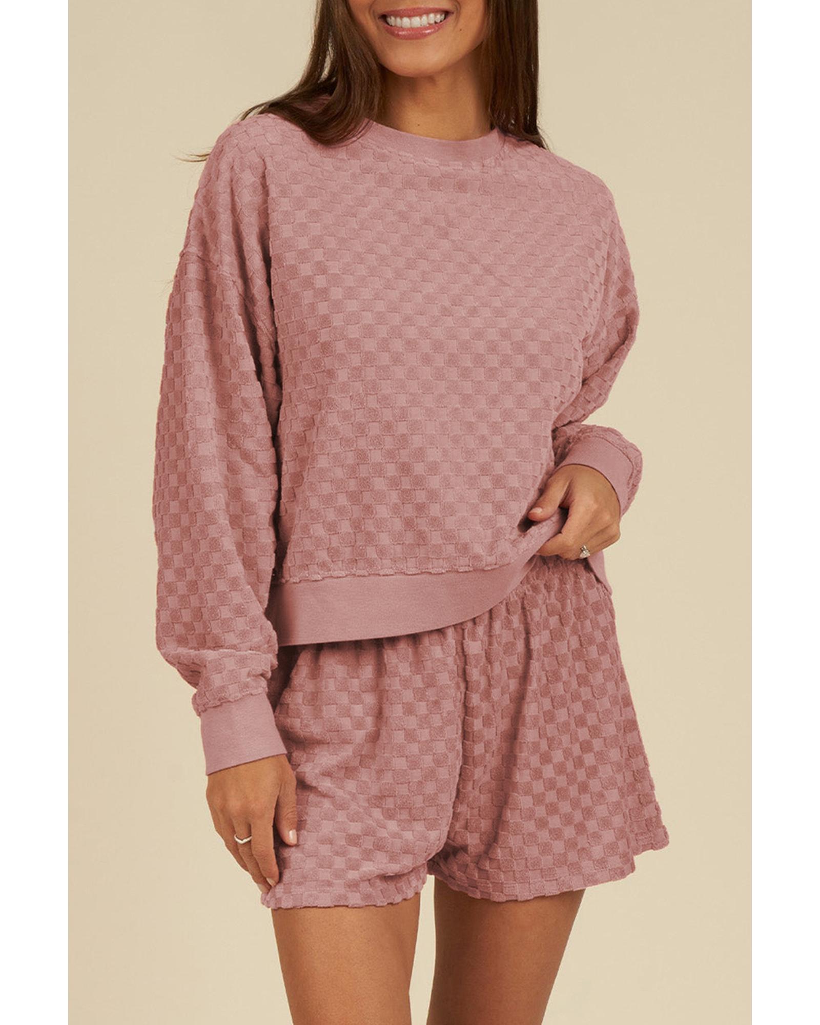Blossom Checkered Textured Long Sleeve Top and Shorts Set – L