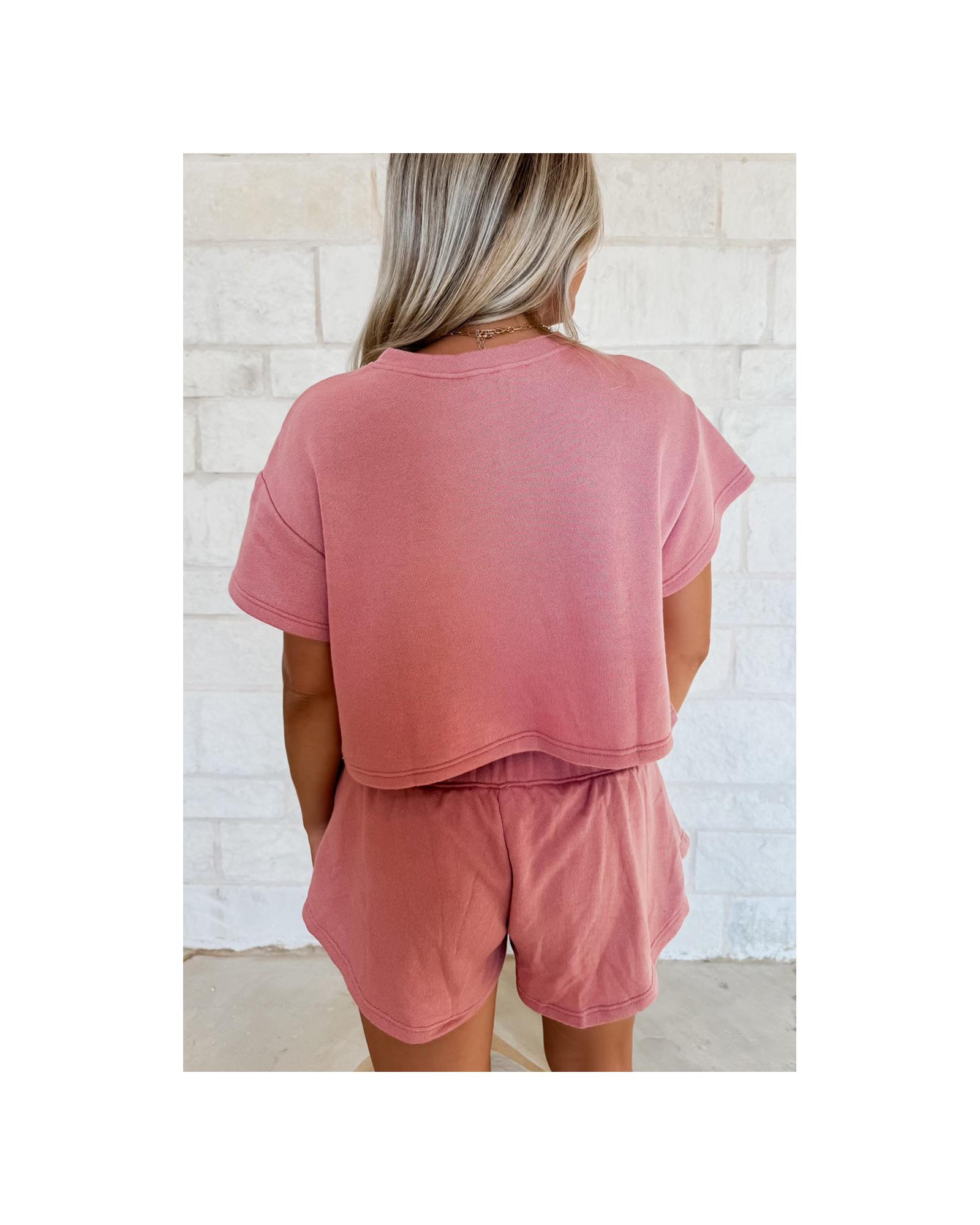 Casual Corded Knit Long Sleeve Top and High Waist Shorts Set - 2XL