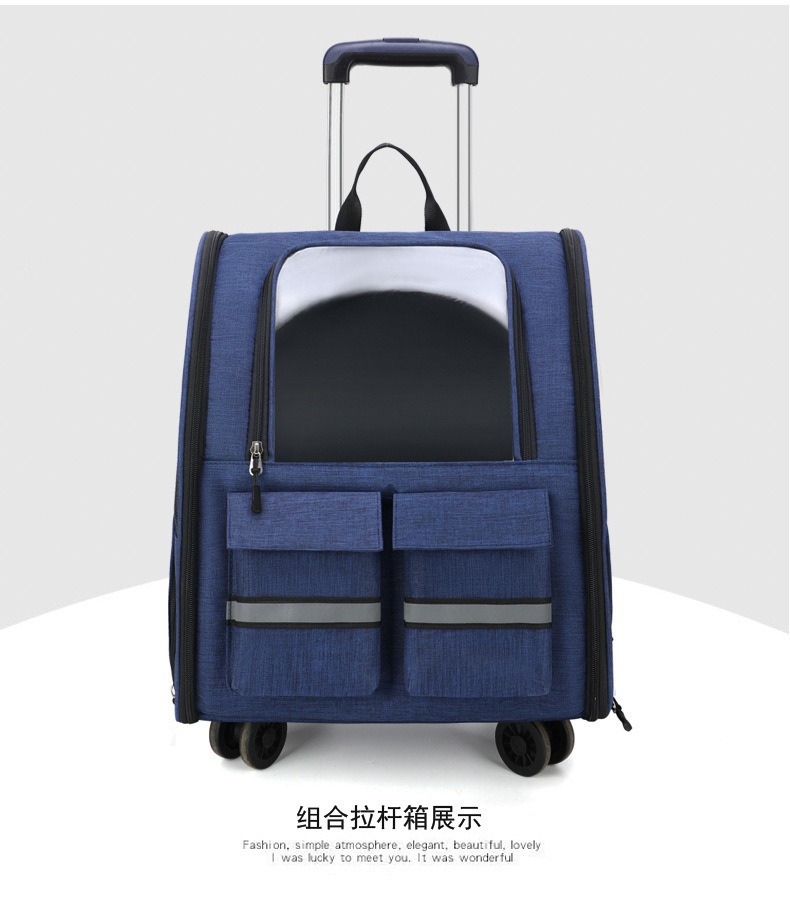 Blue 3-in-1 Pet Carrier: Rolling Backpack with Collapsible Design