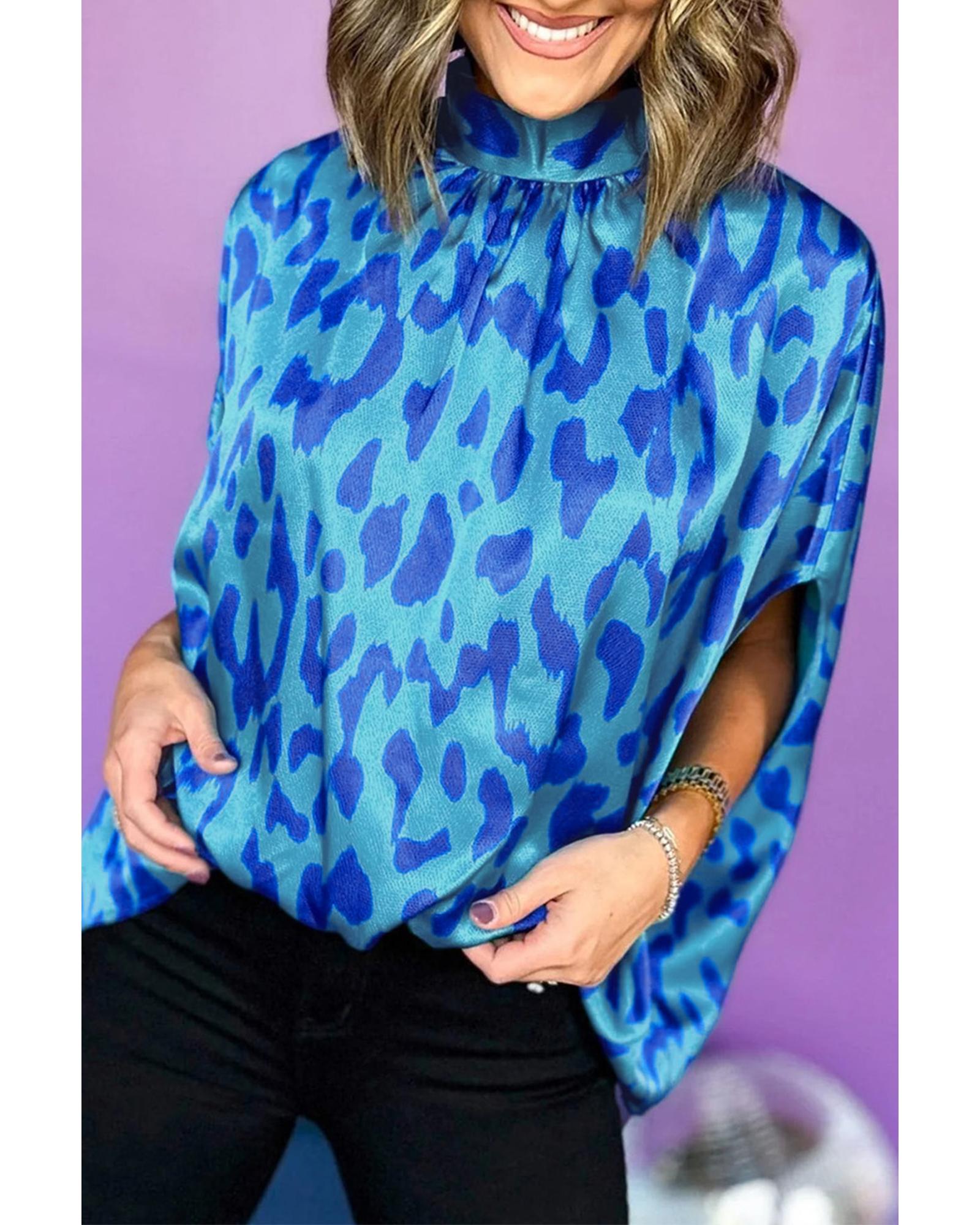 Blue Animal Printed Mock Neck Detail Caftan Top – M