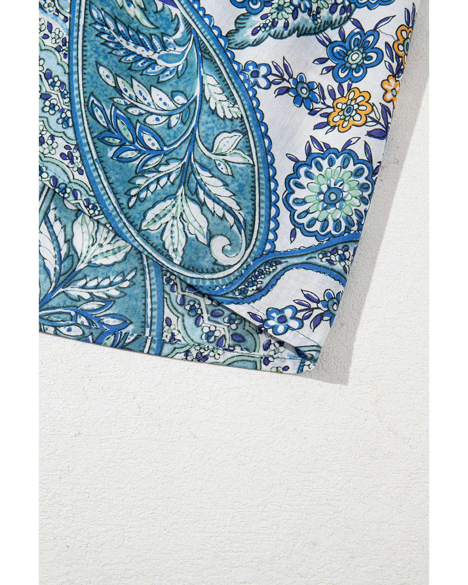 - Blue Bohemian Paisley Floral V Neck Short Sleeve Mini Dress