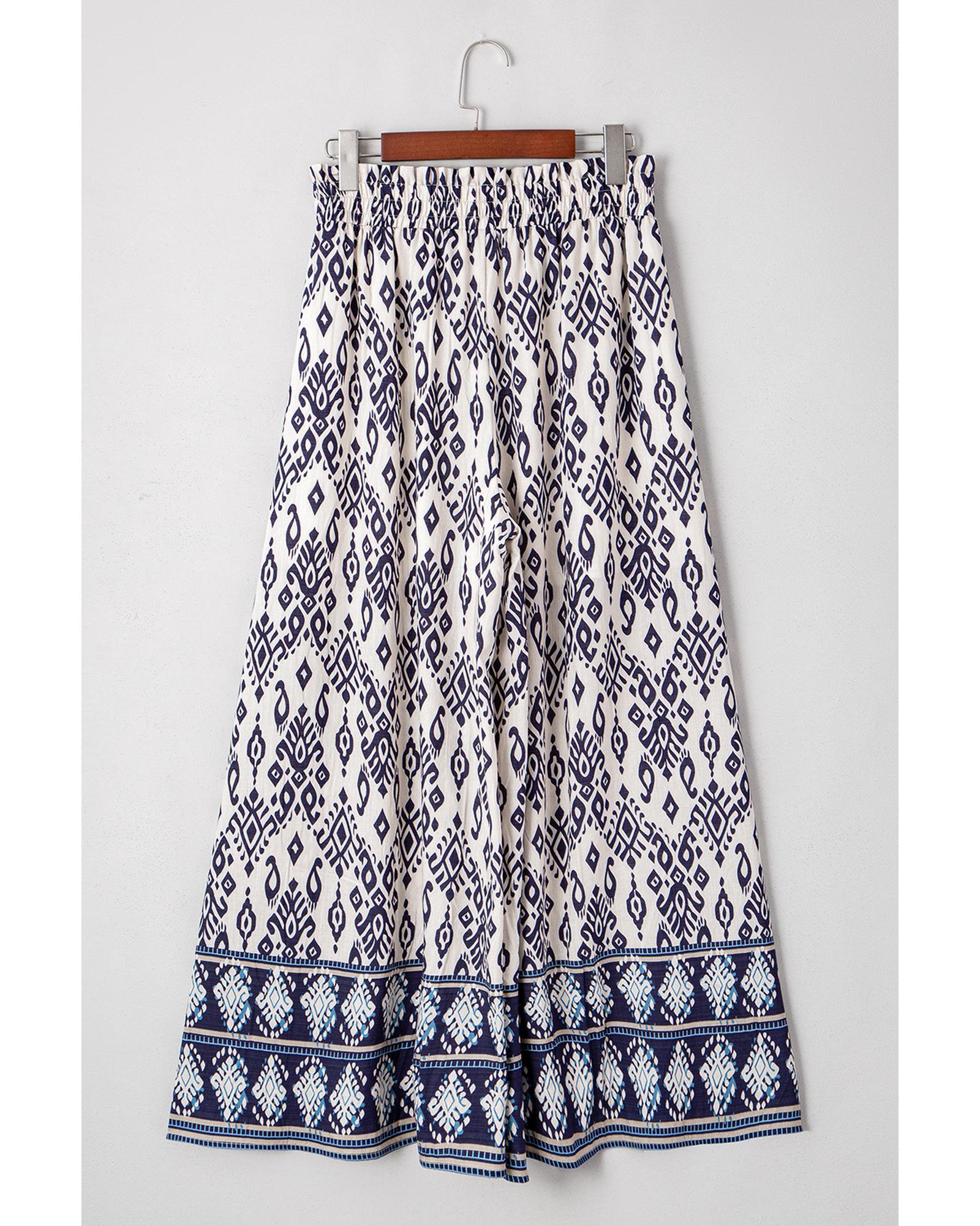 Blue Boho Pattern Print High Waist Wide Leg Loose Pants – XL