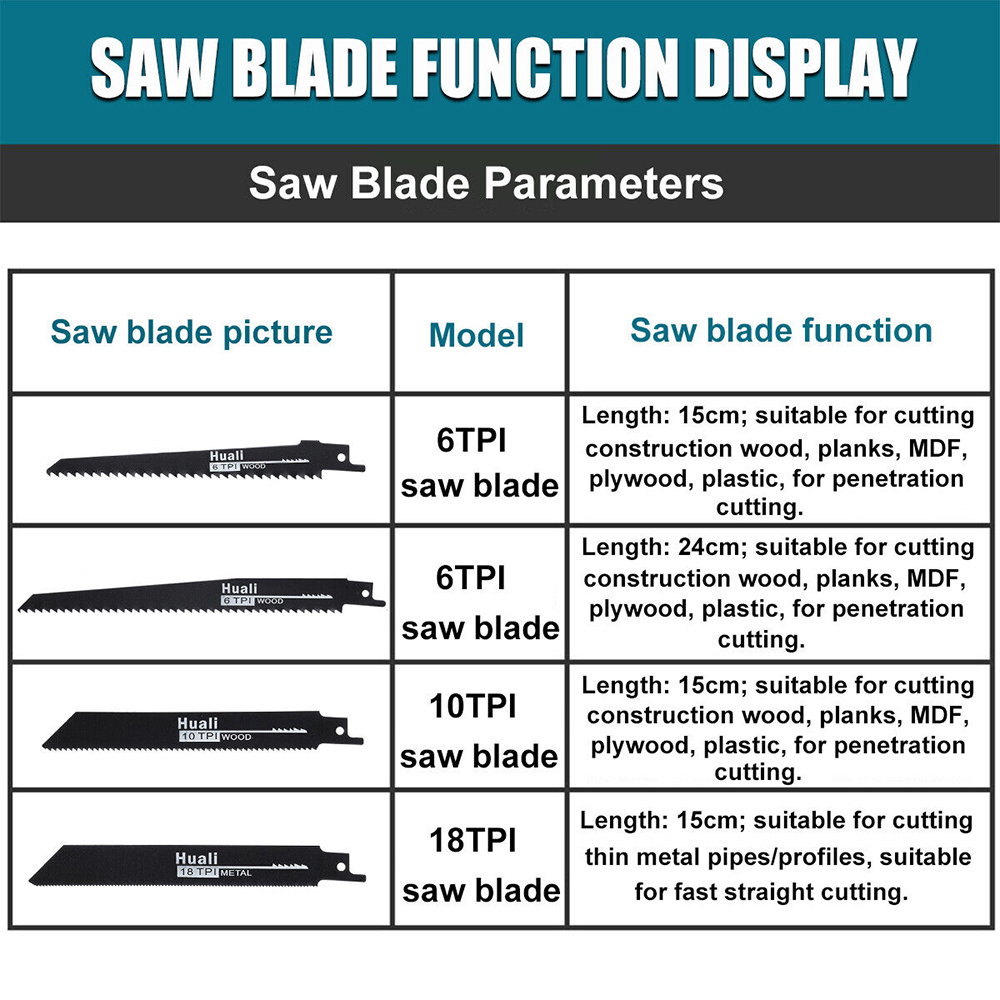 Blue Cordless Electric Reciprocating Saw Cutter with Blades without battery