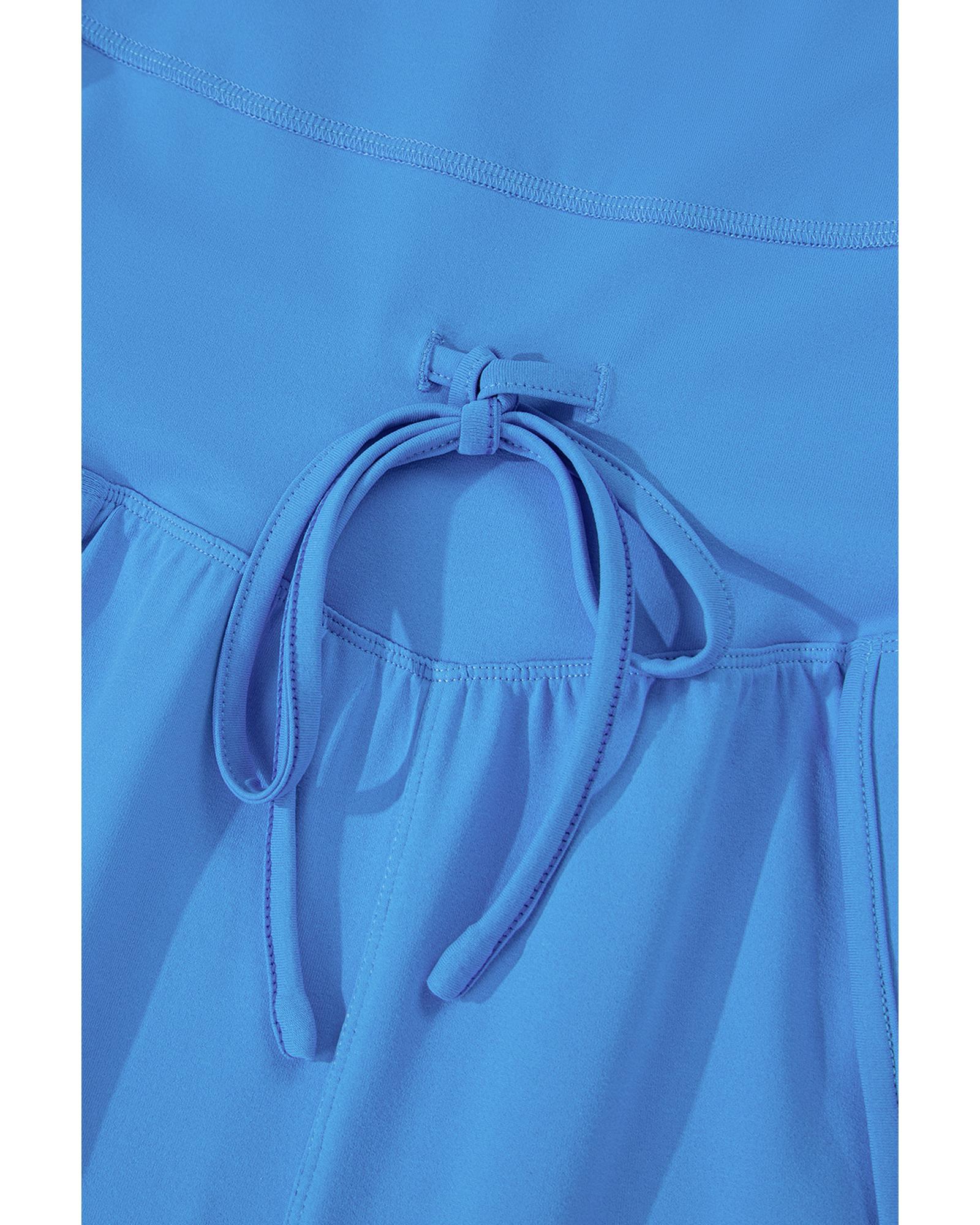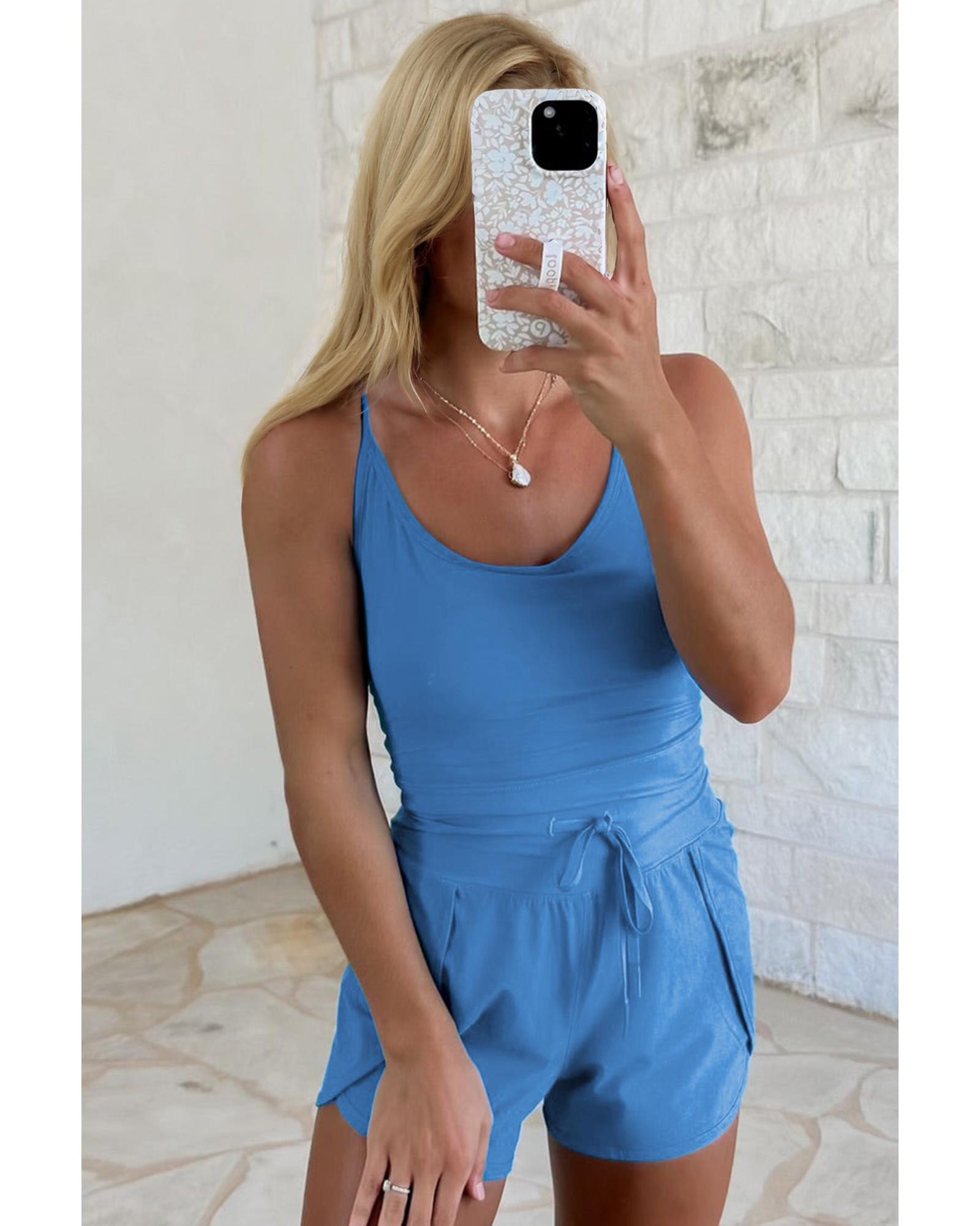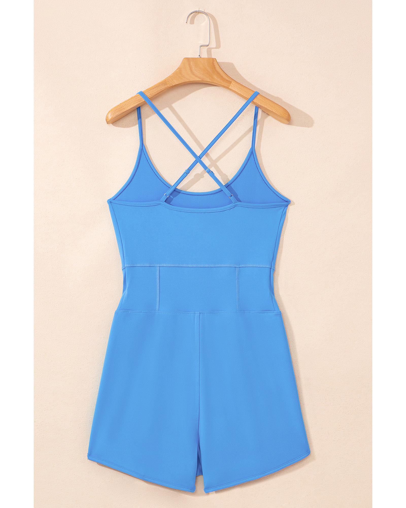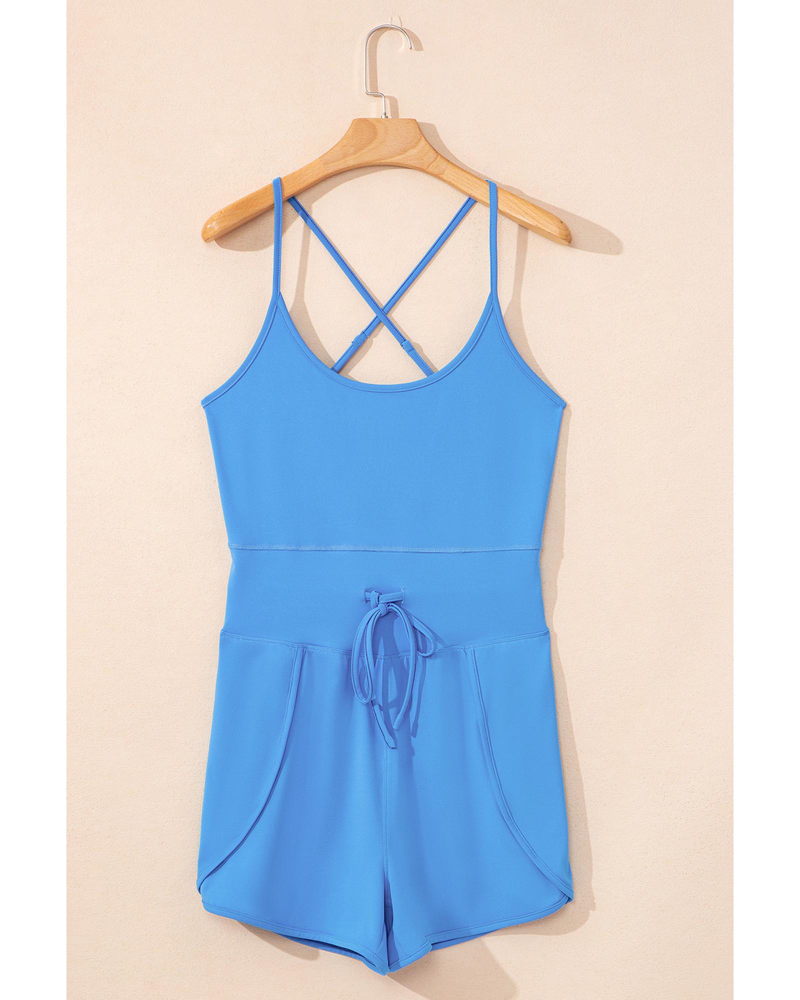 Blue Crossed Spaghetti Straps Drawstring Waist Sporty Romper – L