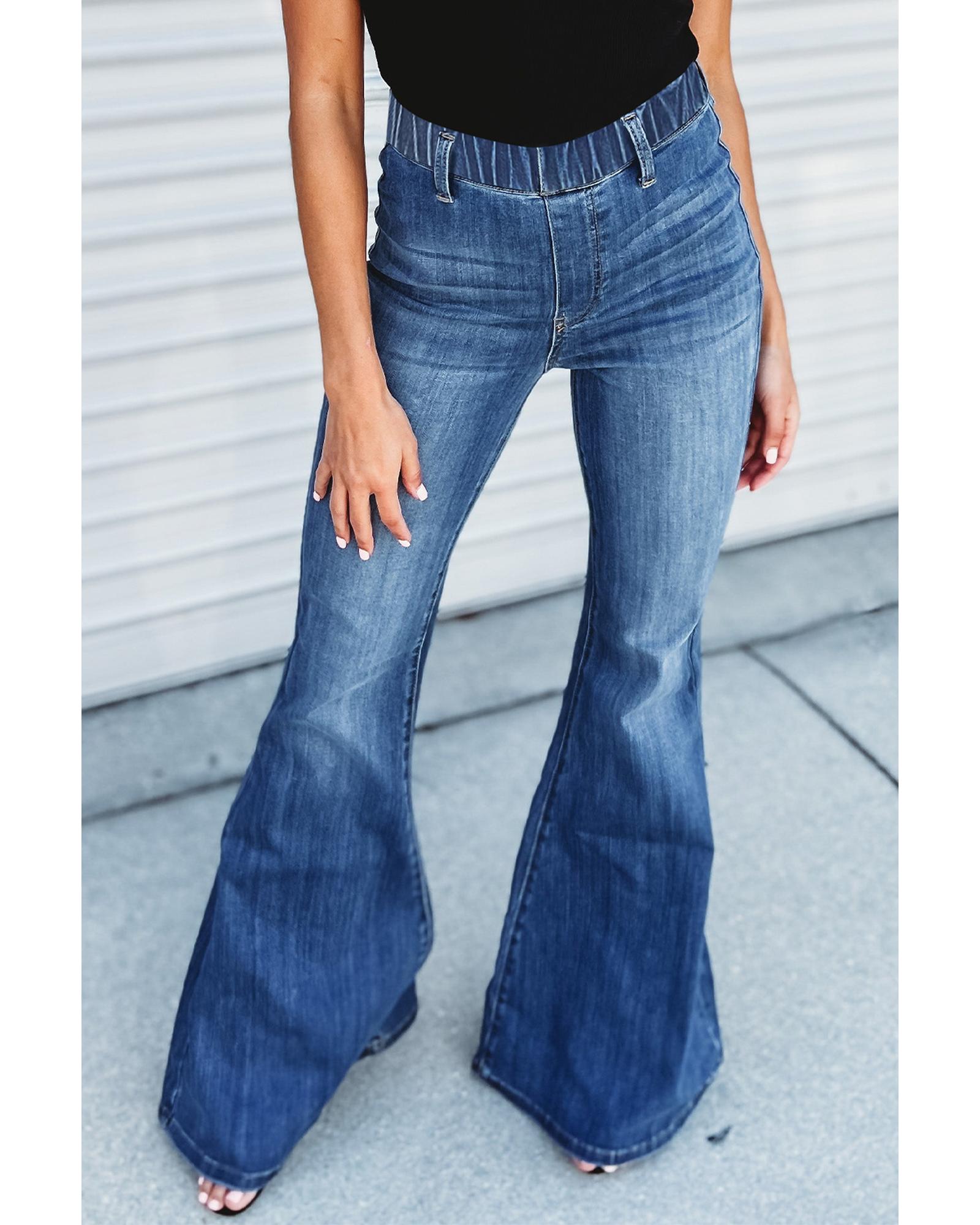Blue Elastic High Waist Flare Jeans – 14 US