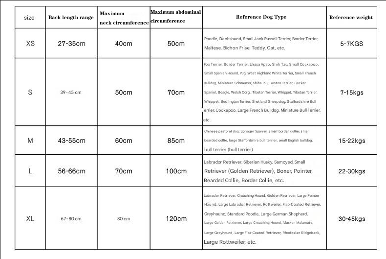 Important Sizing Note: Please measure your dog’s back length and chest girth before ordering to ensure the perfect fit. Refer to our sizing chart for detailed measurements.