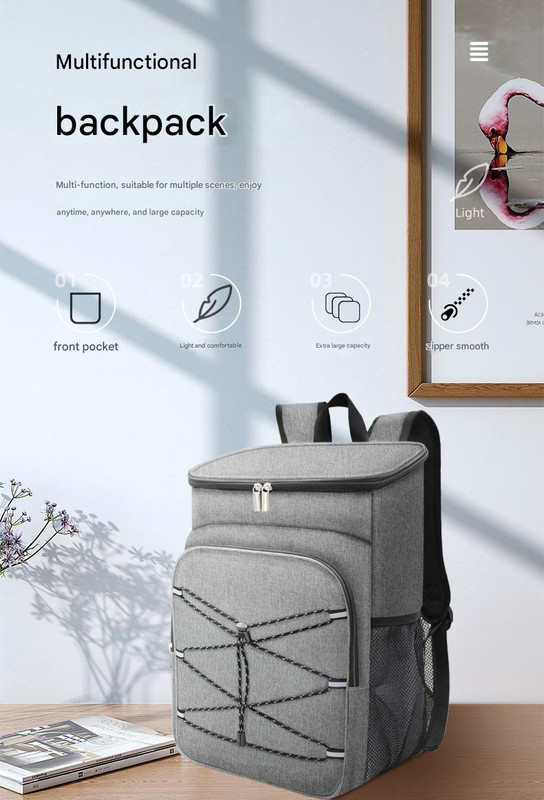 - Lightweight & Comfortable to Carry: Weighing only around 450g, this cooler backpack is designed for easy portability. It features adjustable, padded shoulder straps for a comfortable fit, even when fully loaded.