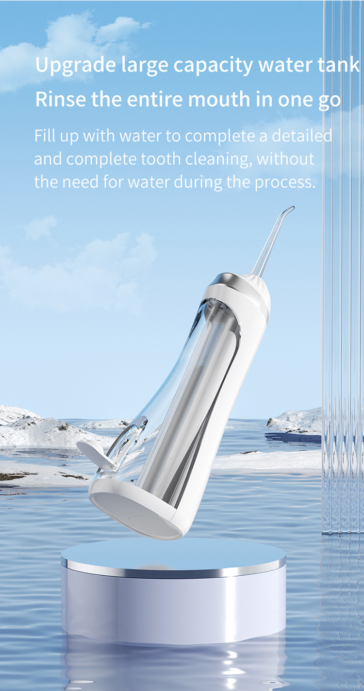 This oral irrigator delivers a powerful high-pressure pulse water column, rinsing the entire mouth in one go with 1600 pulses per minute to remove debris and prevent gum problems. The device features a large-capacity water tank and a rotating nozzle for targeted cleaning of hard-to-reach areas. Its USB-rechargeable battery offers 30 days of use with just a 4-hour charge, making it ideal for worry-free travel.