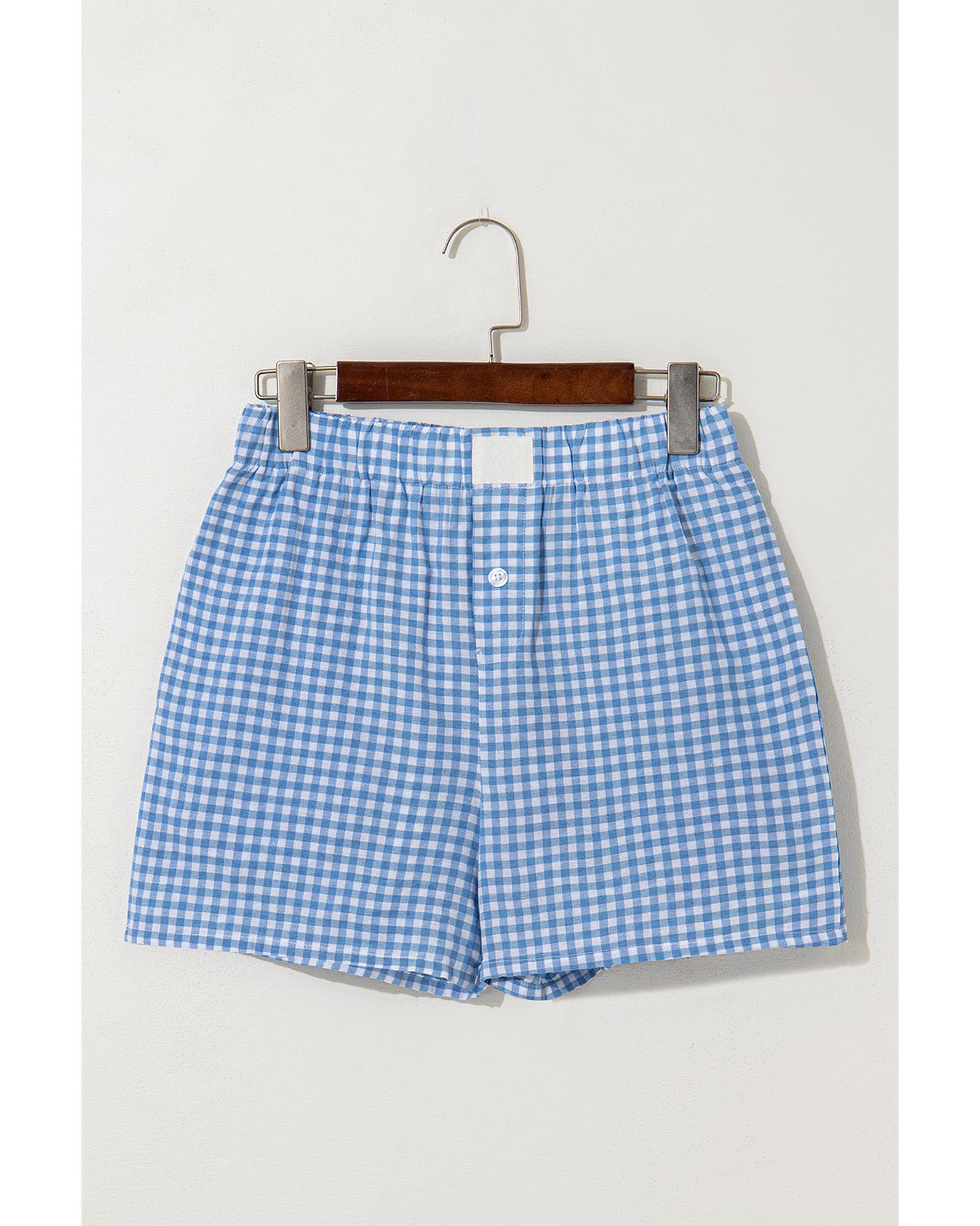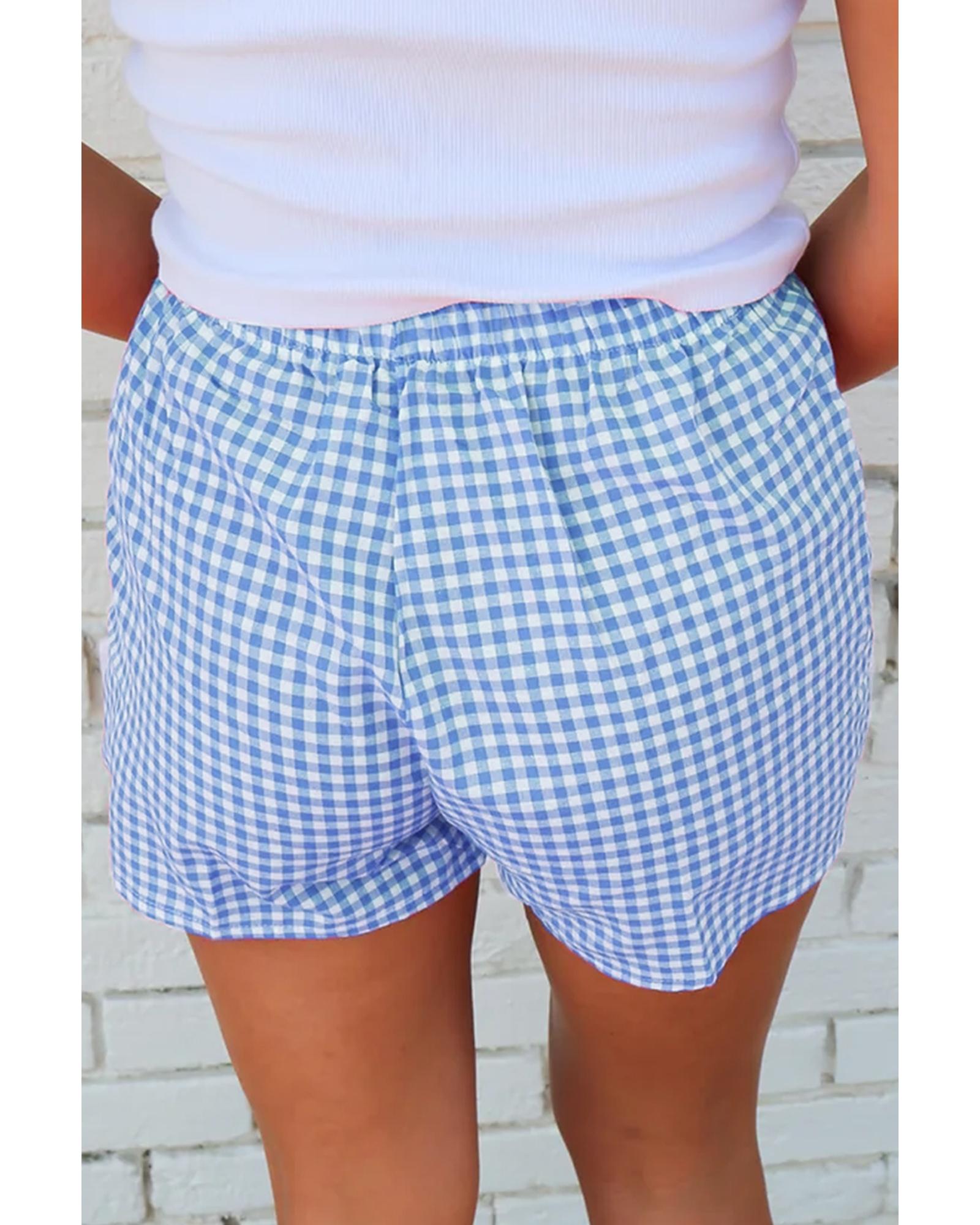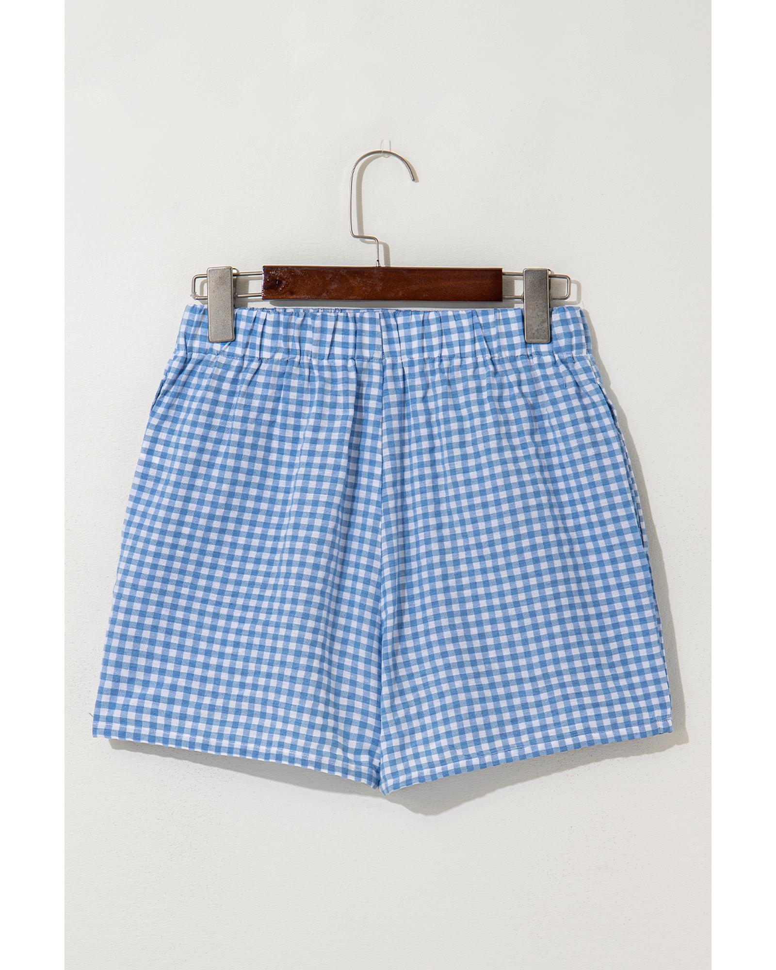 blue Red Plaid Gingham Printed High Waist Shorts – L