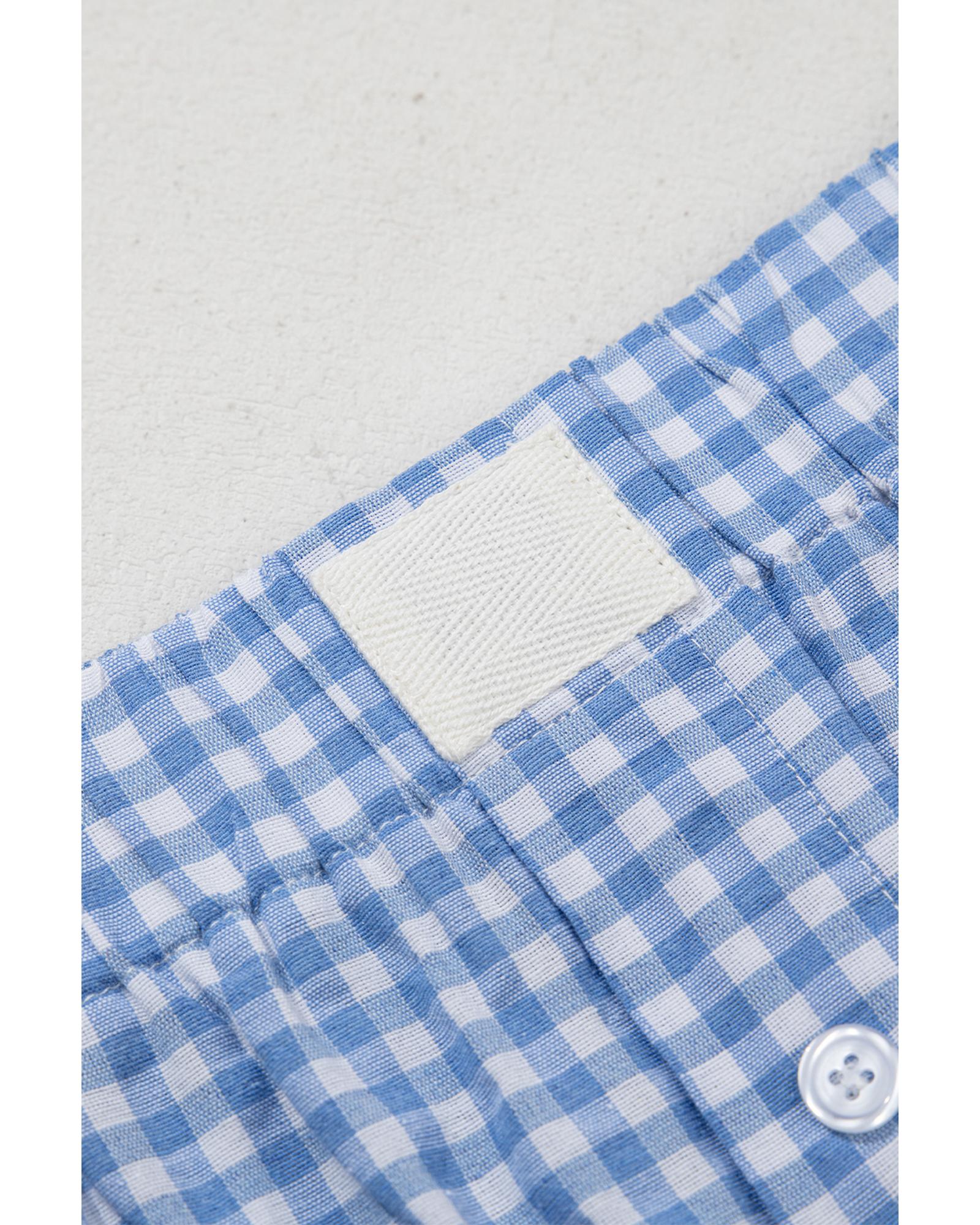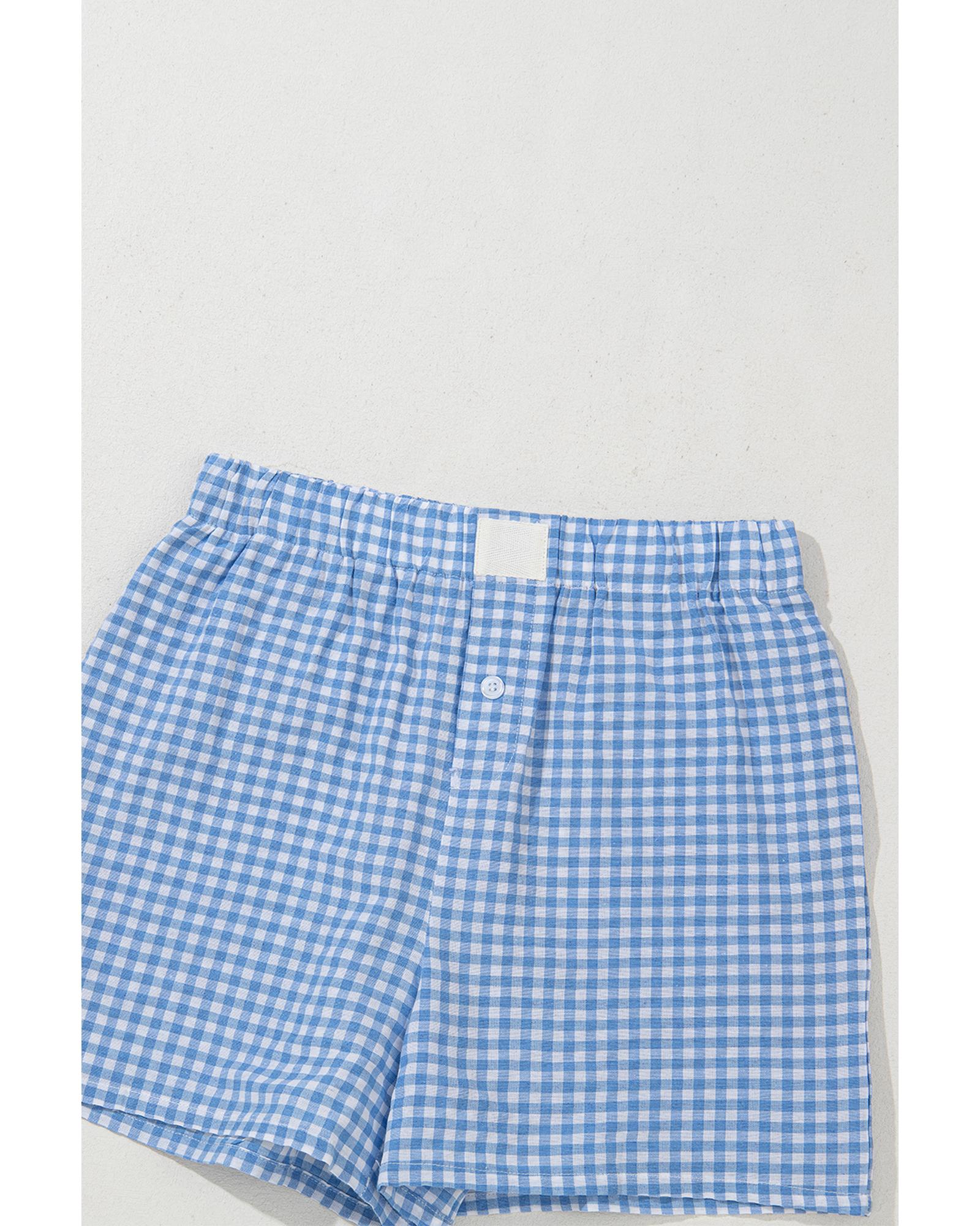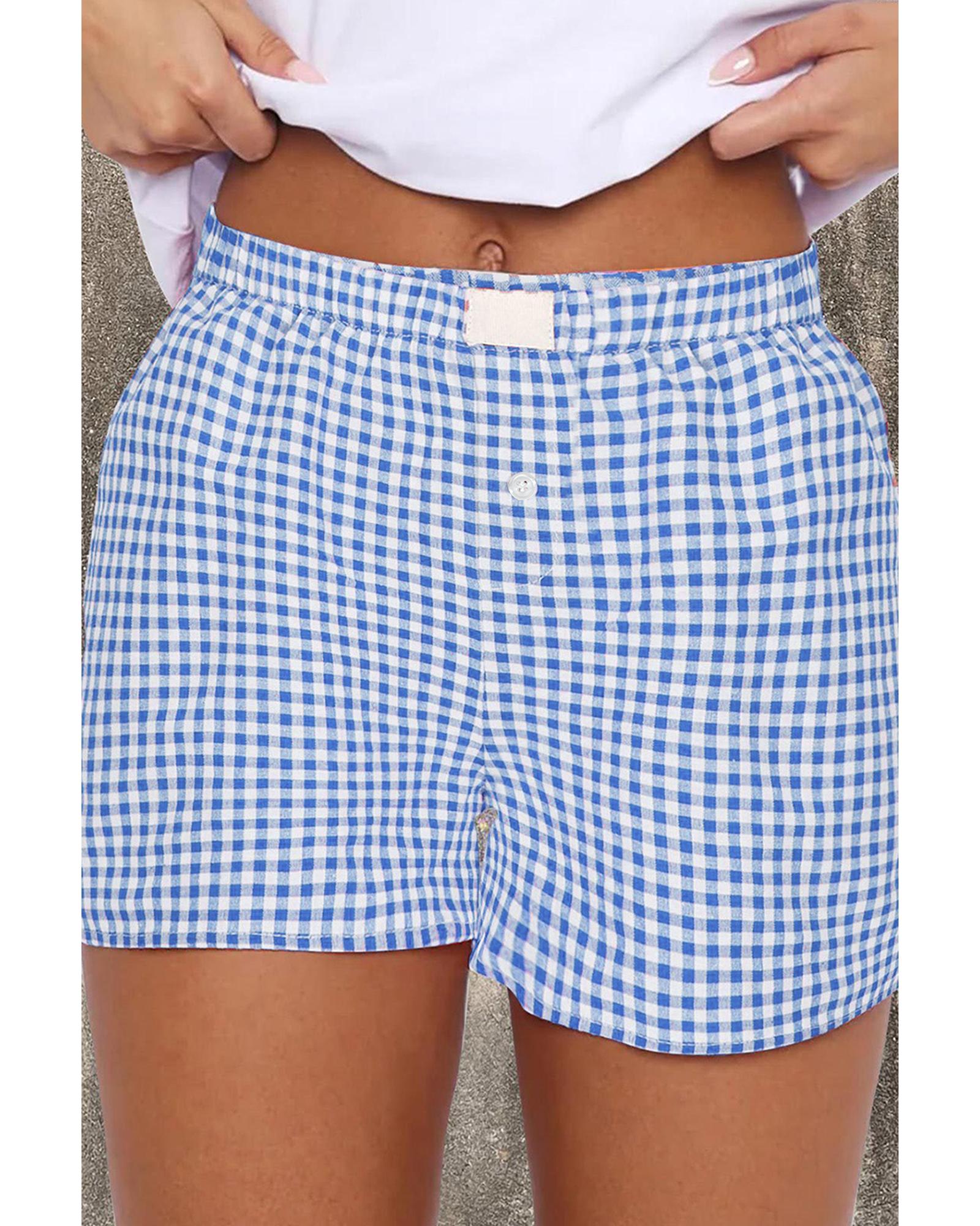 blue Red Plaid Gingham Printed High Waist Shorts – L