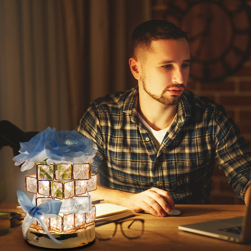 Illuminate your space with the magical glow of our LED Crystal Flower Table Lamp. This exquisite piece combines the timeless beauty of flowers with sparkling crystal cubes and modern lighting technology, creating a captivating decorative accent for any room.