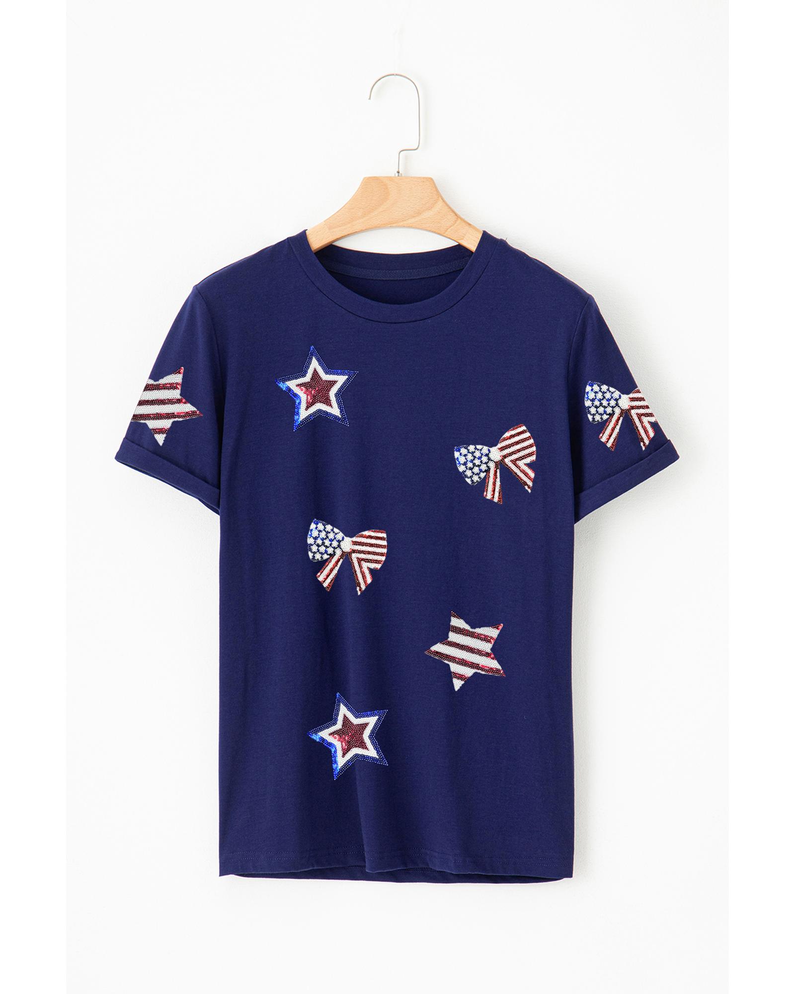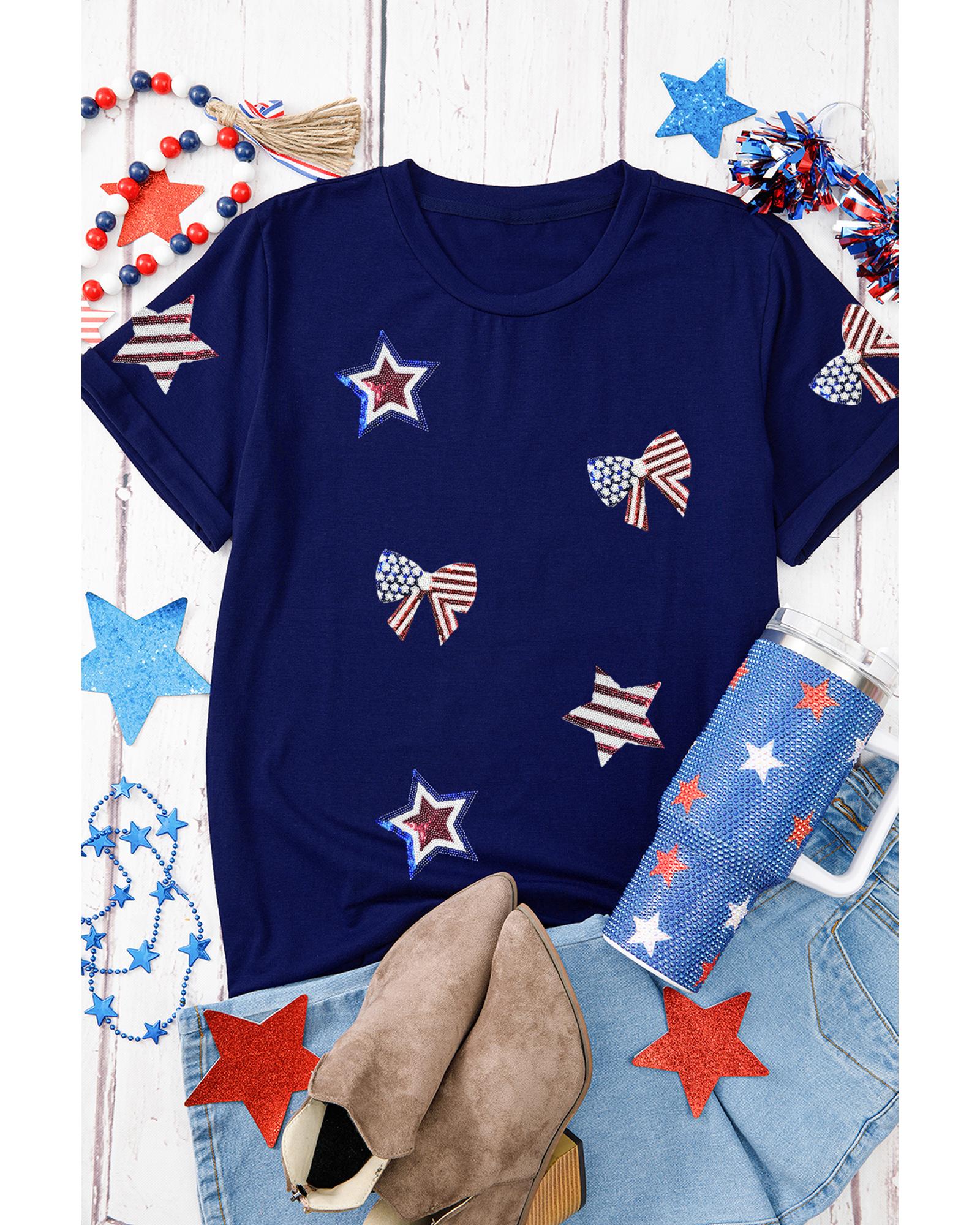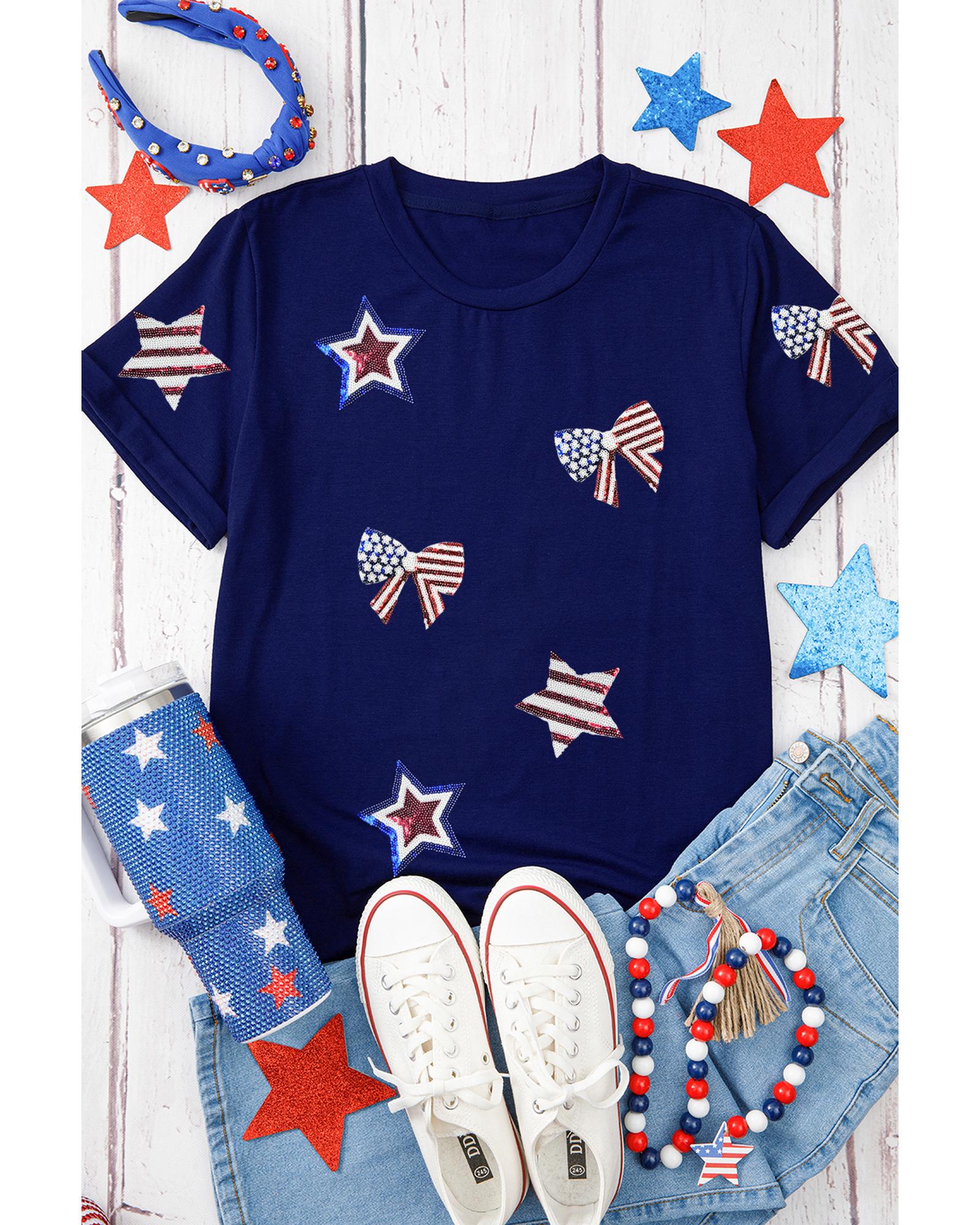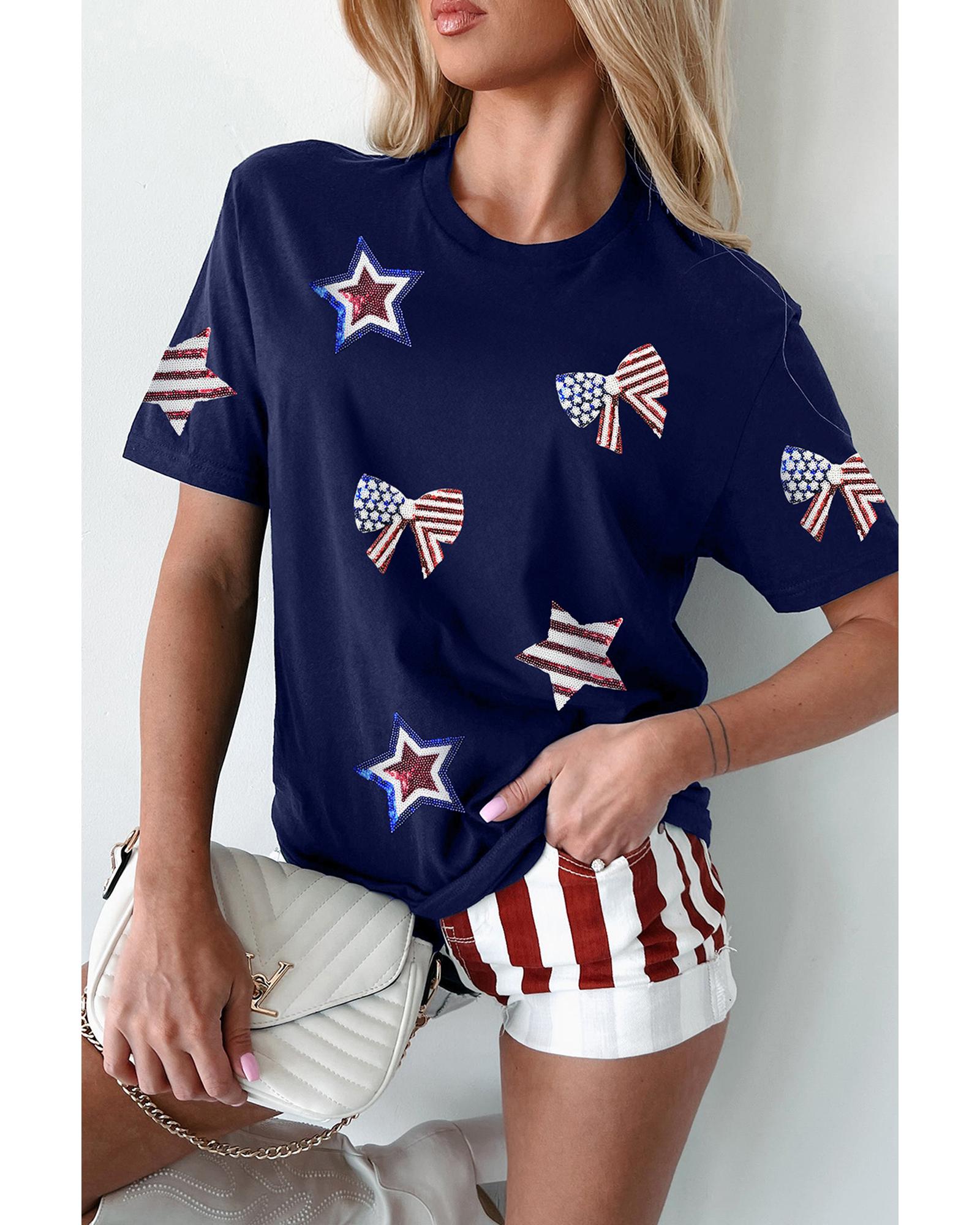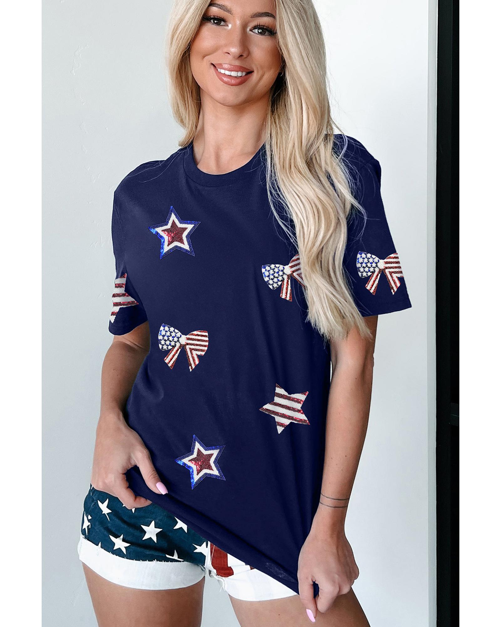 - Blue Sequin USA Flag Bow Star Graphic Crewneck T