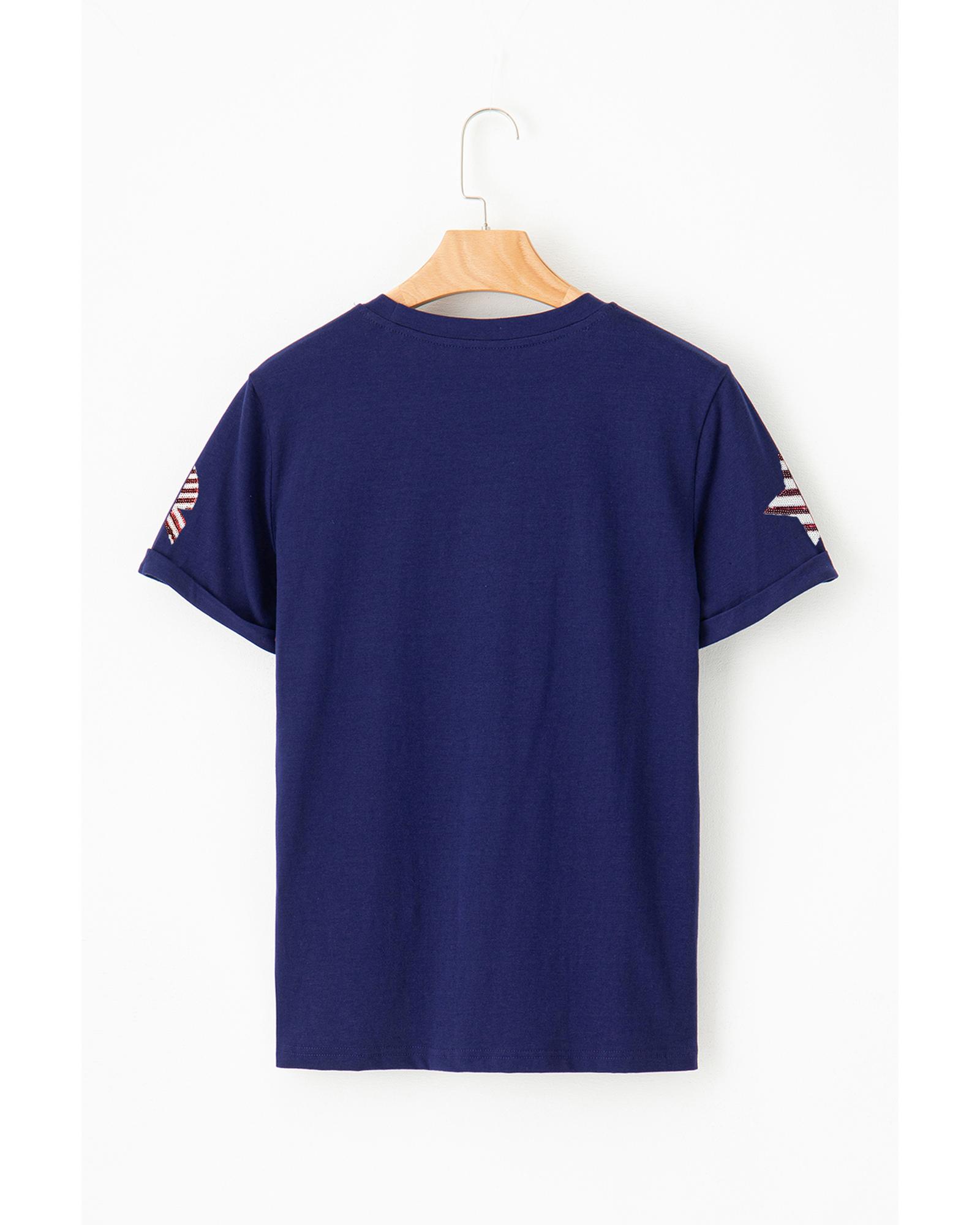 Blue Sequin USA Flag Bow Star Graphic Crewneck T Shirt – S
