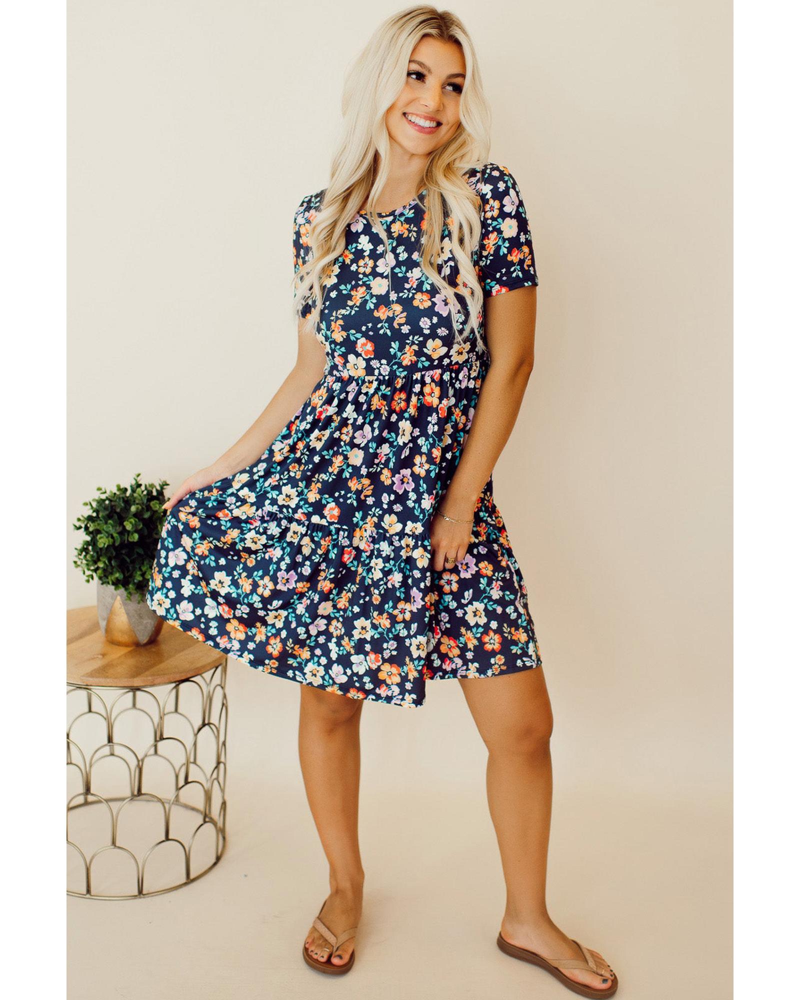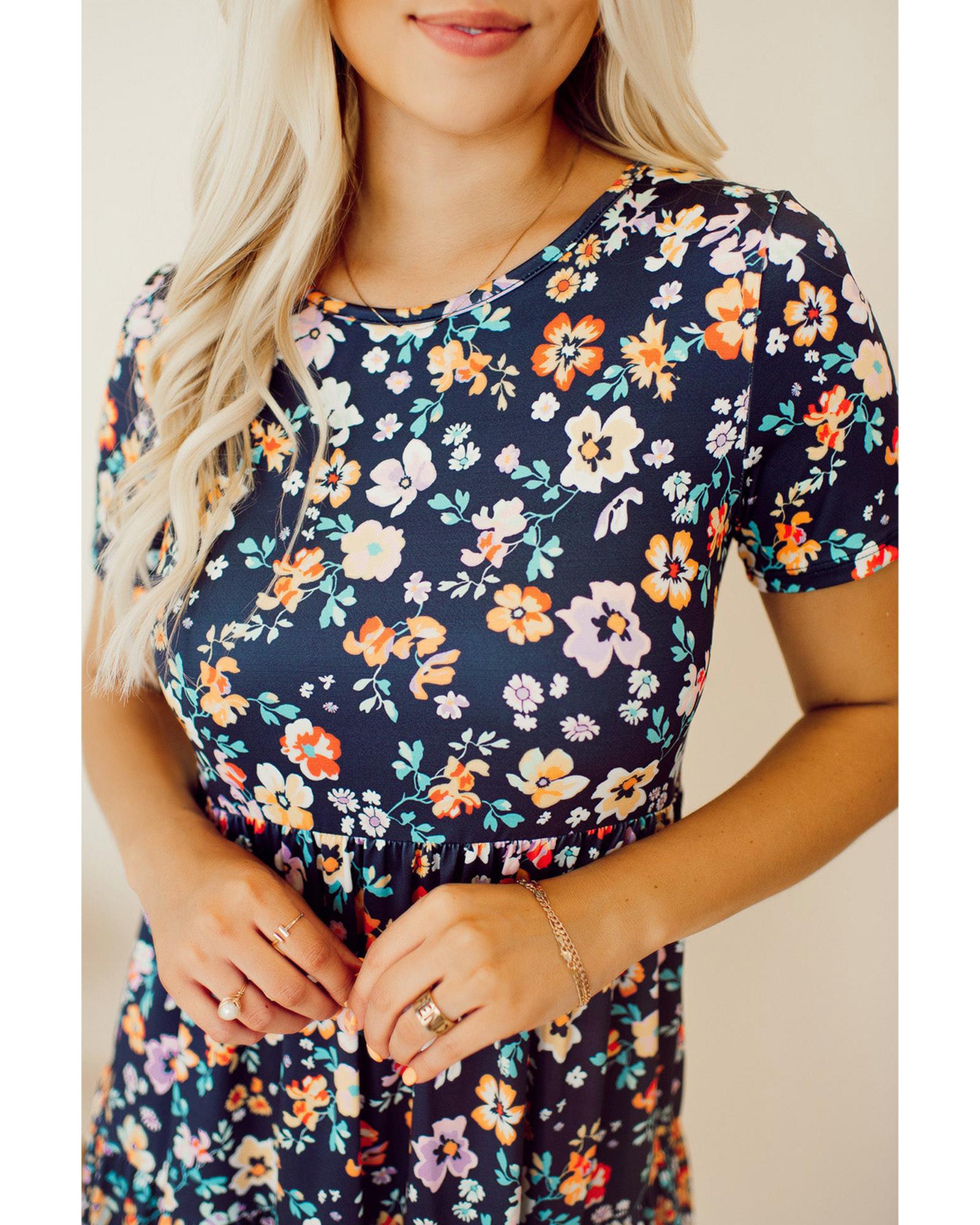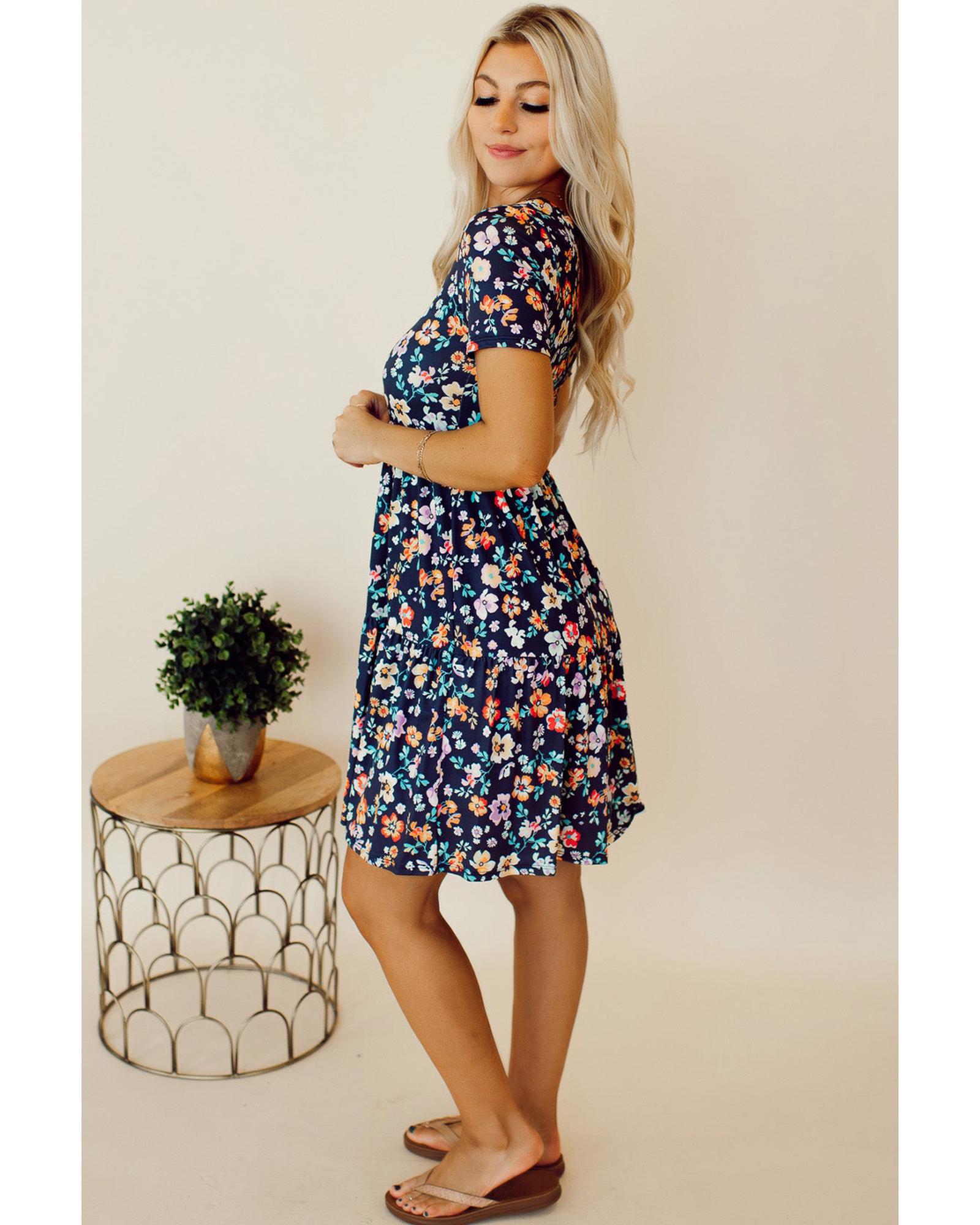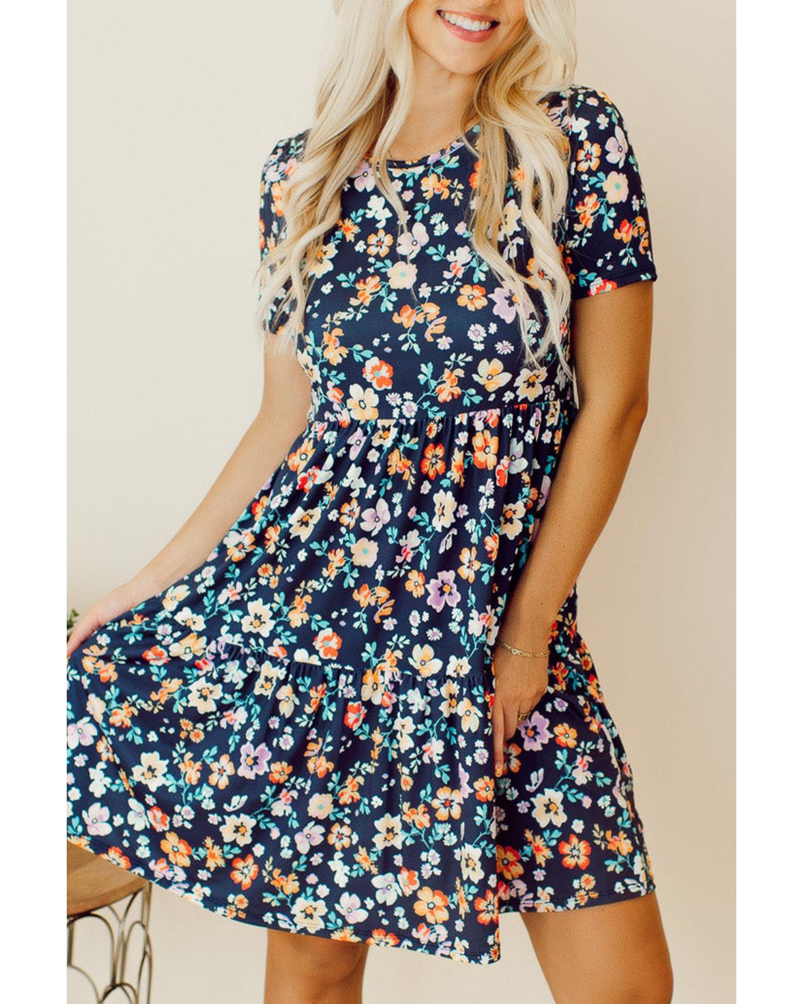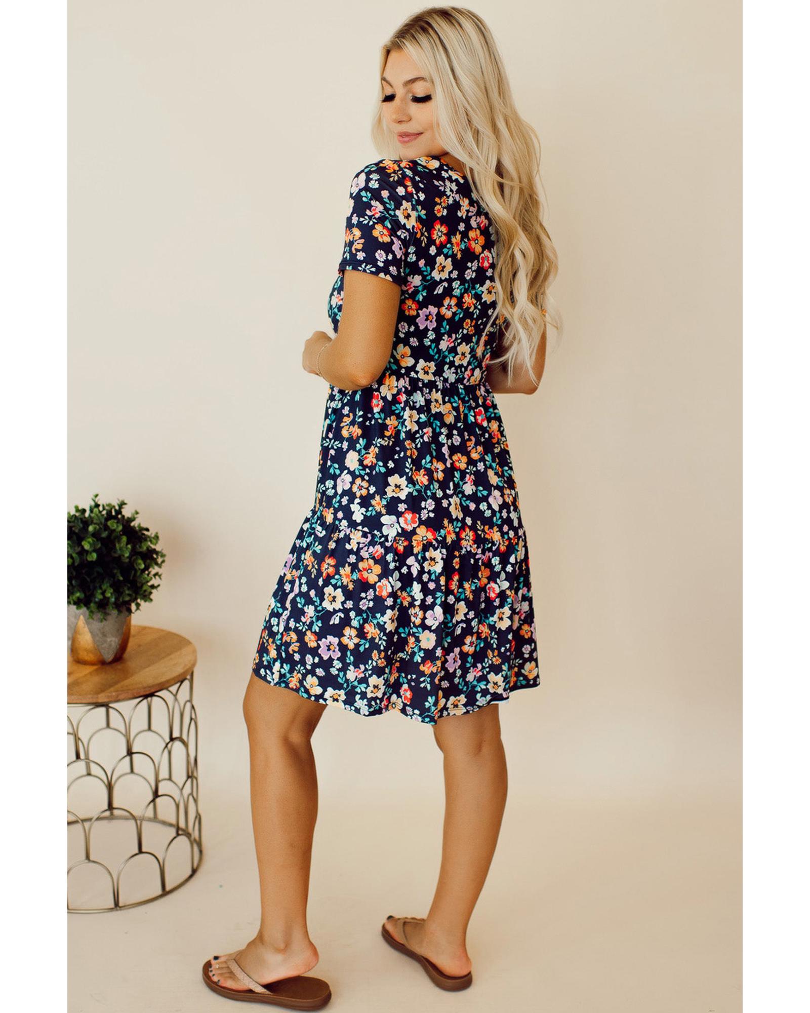 Black Floral Print Twisted Hollowed Back Swim Dress - XL