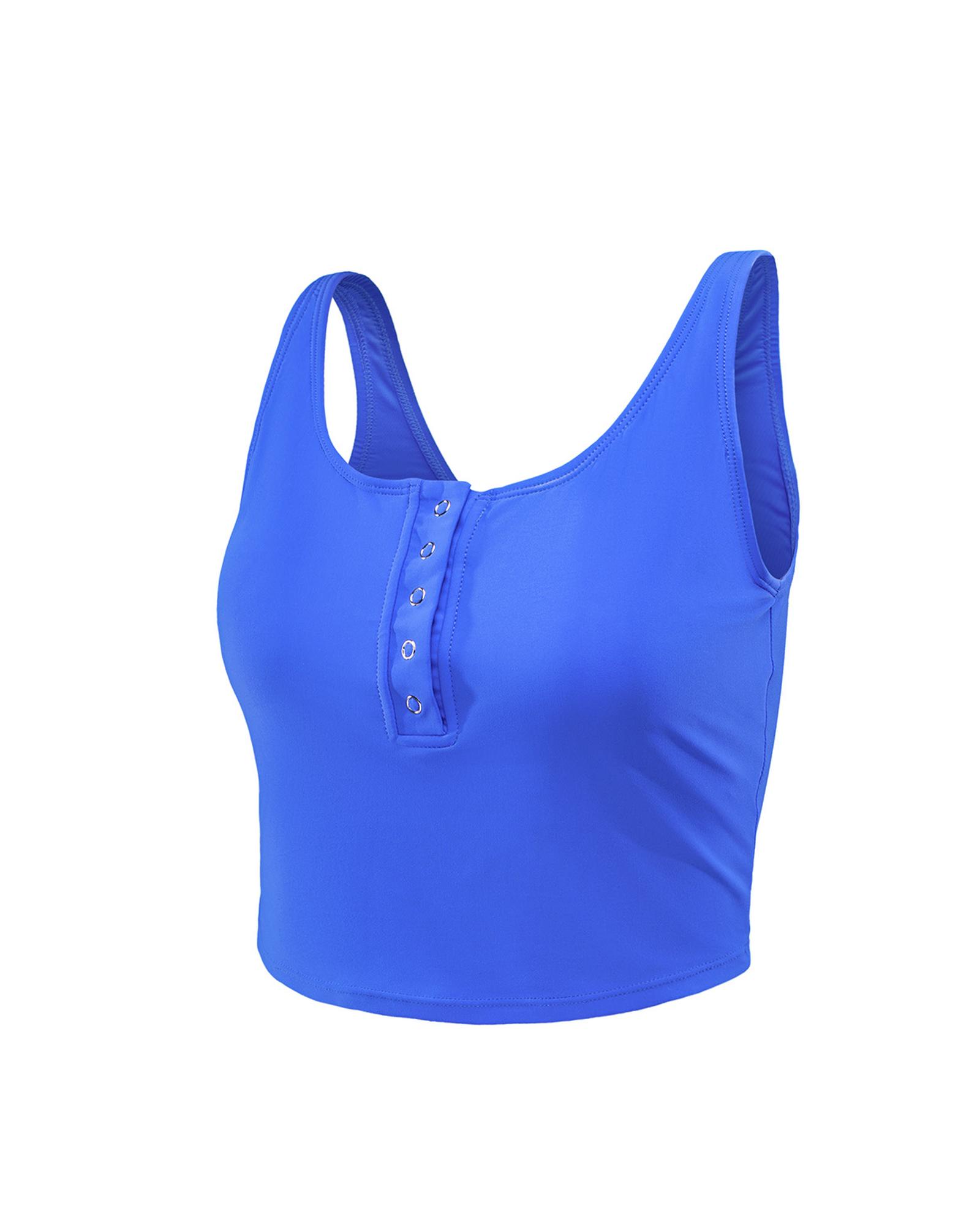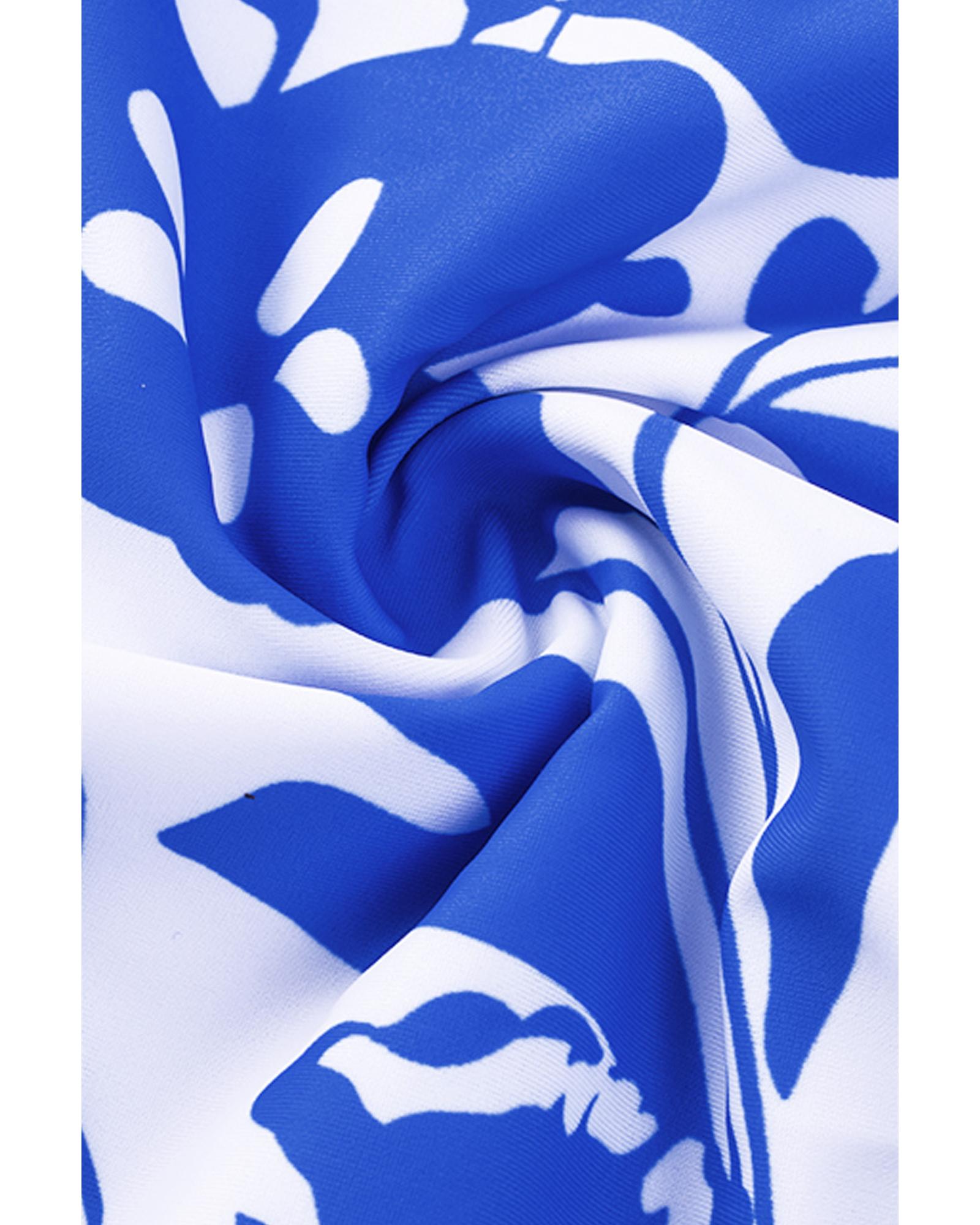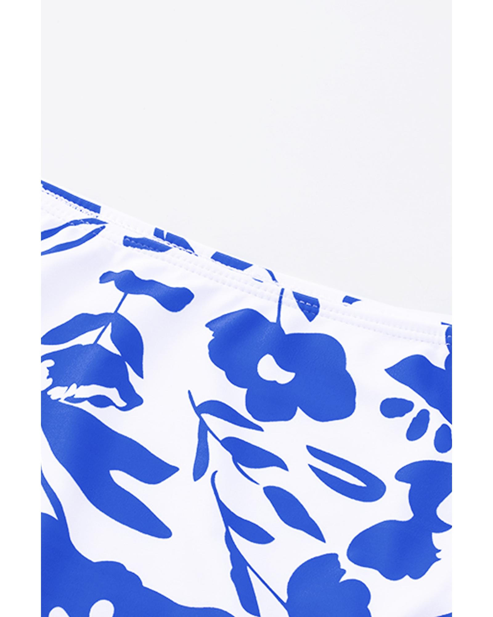 Blue Square Neck Sleeveless Fashion Print Tankini Set – S