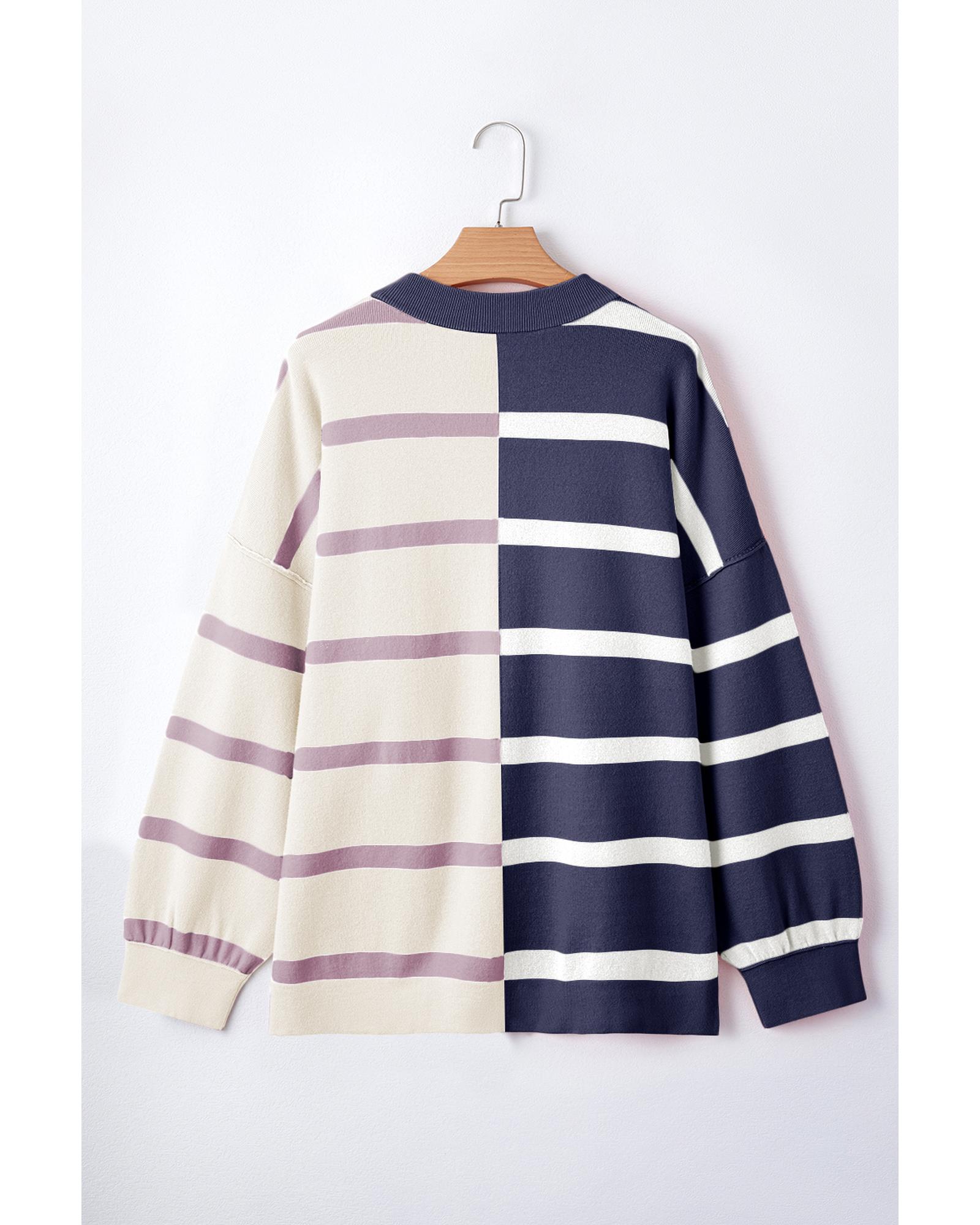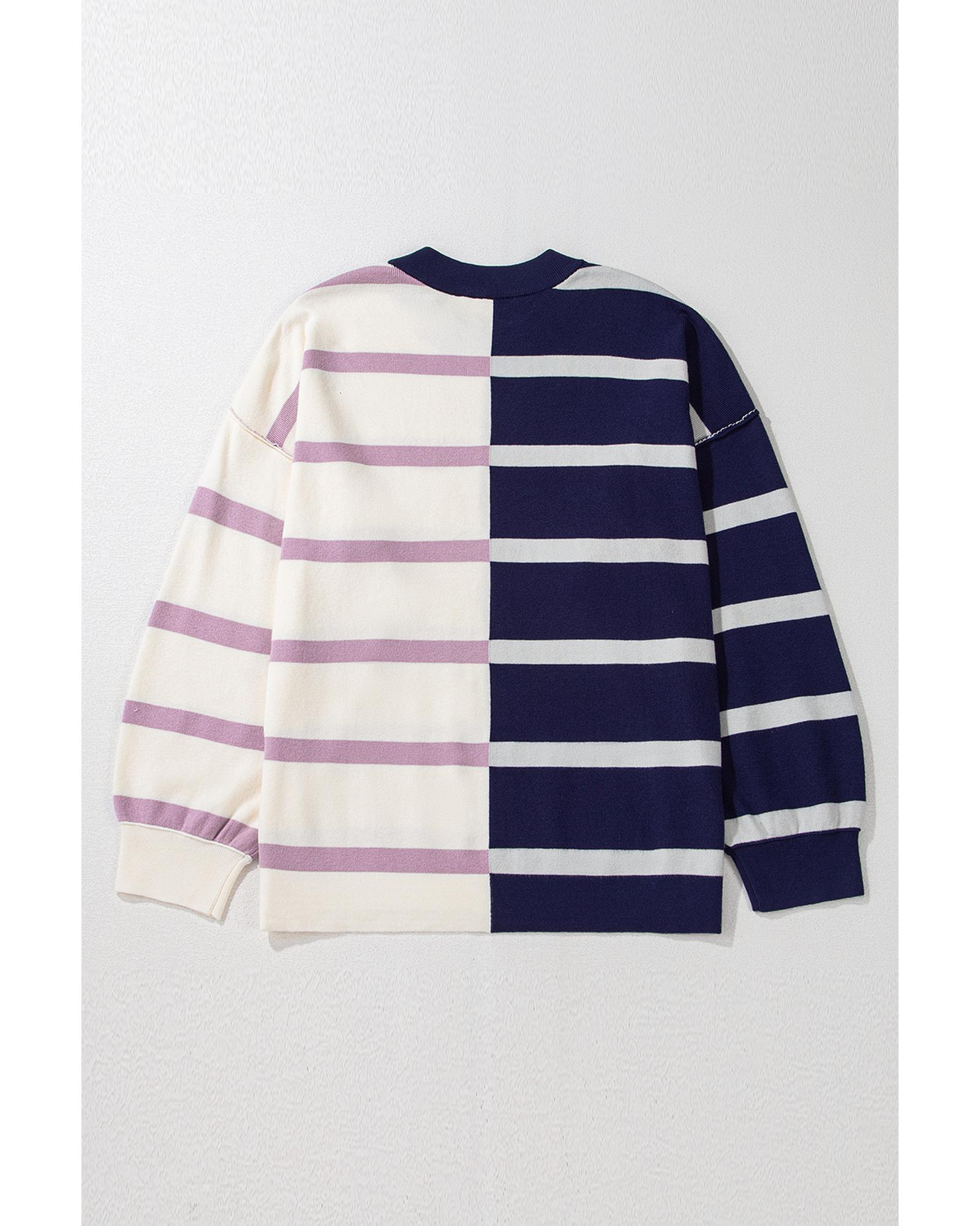 - Trendy Blue Stripe Colorblock Oversized Sweater
