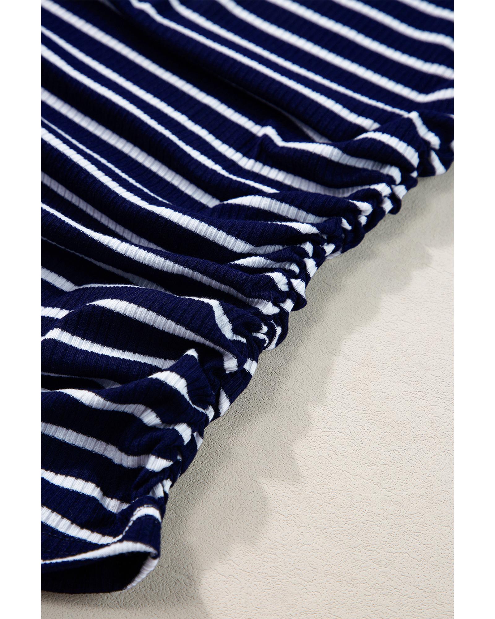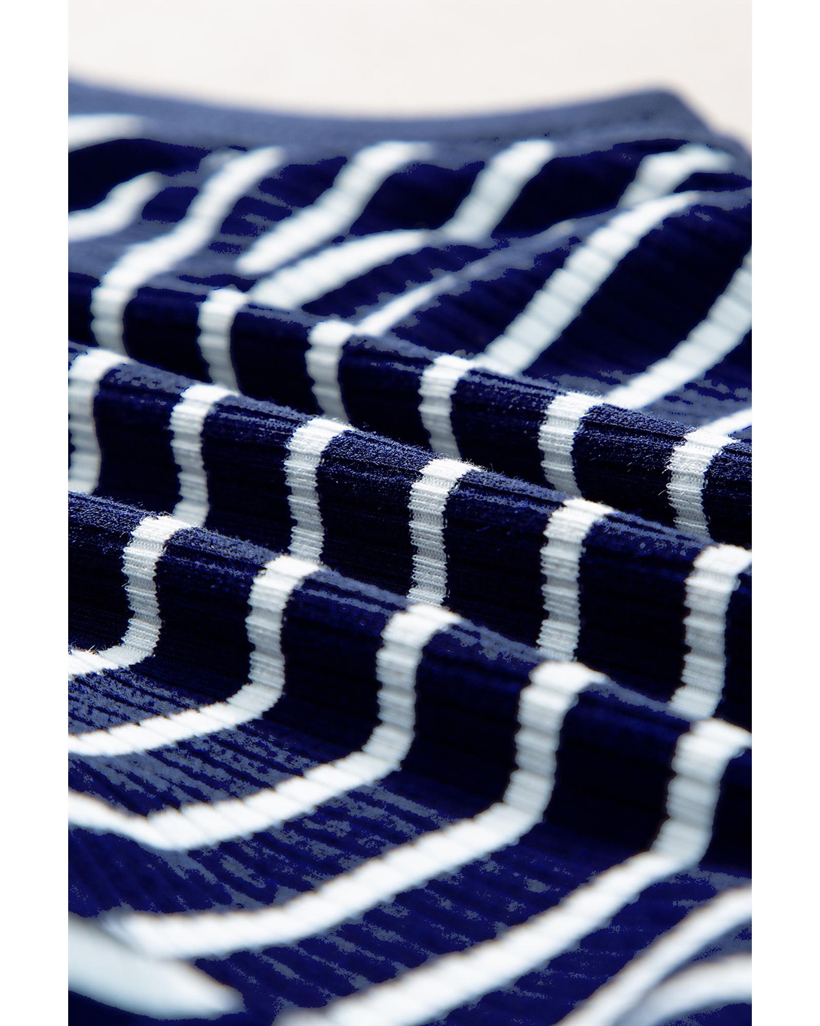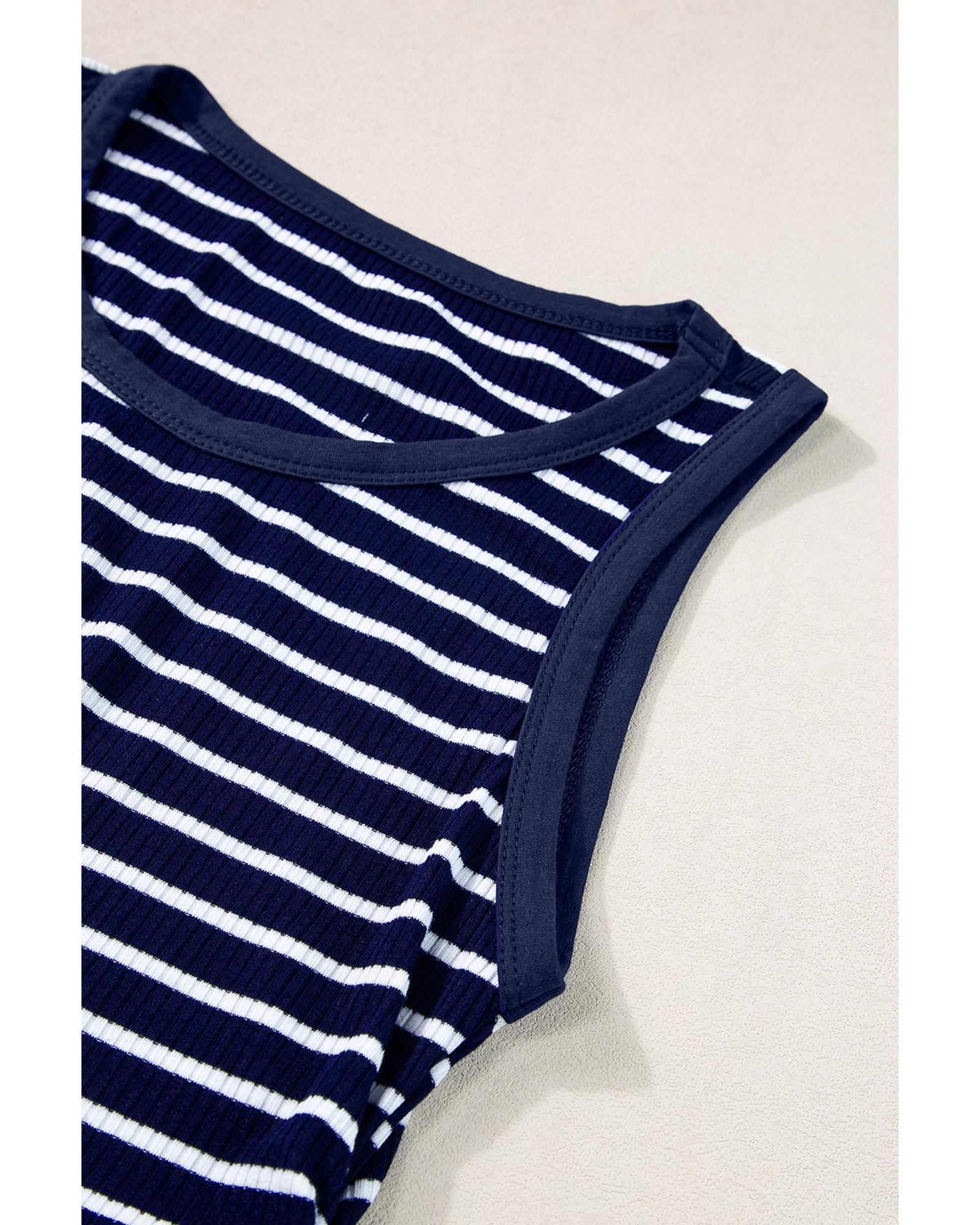 Blue Stripe Contrast Round Neck Sleeveless Slim Top – S