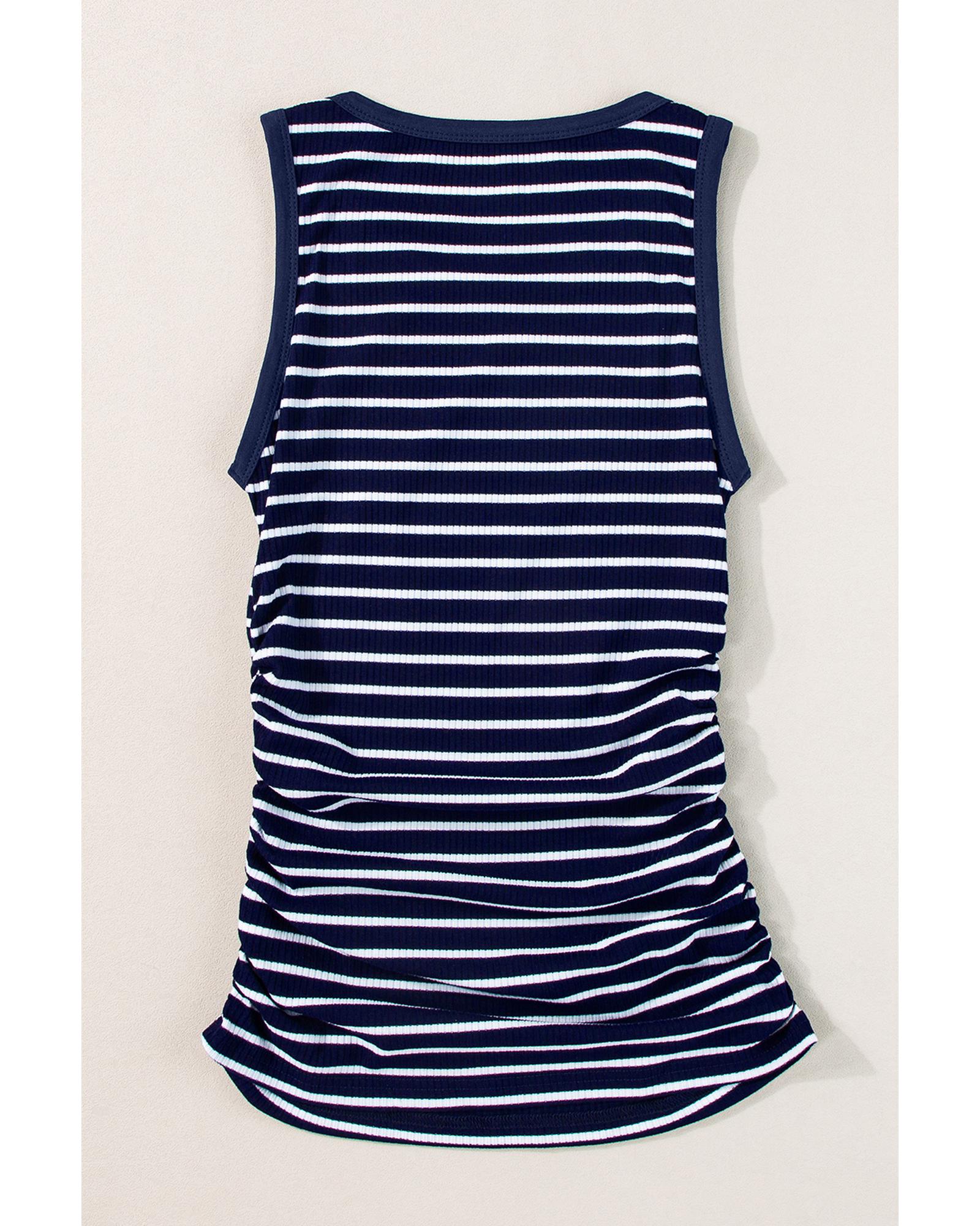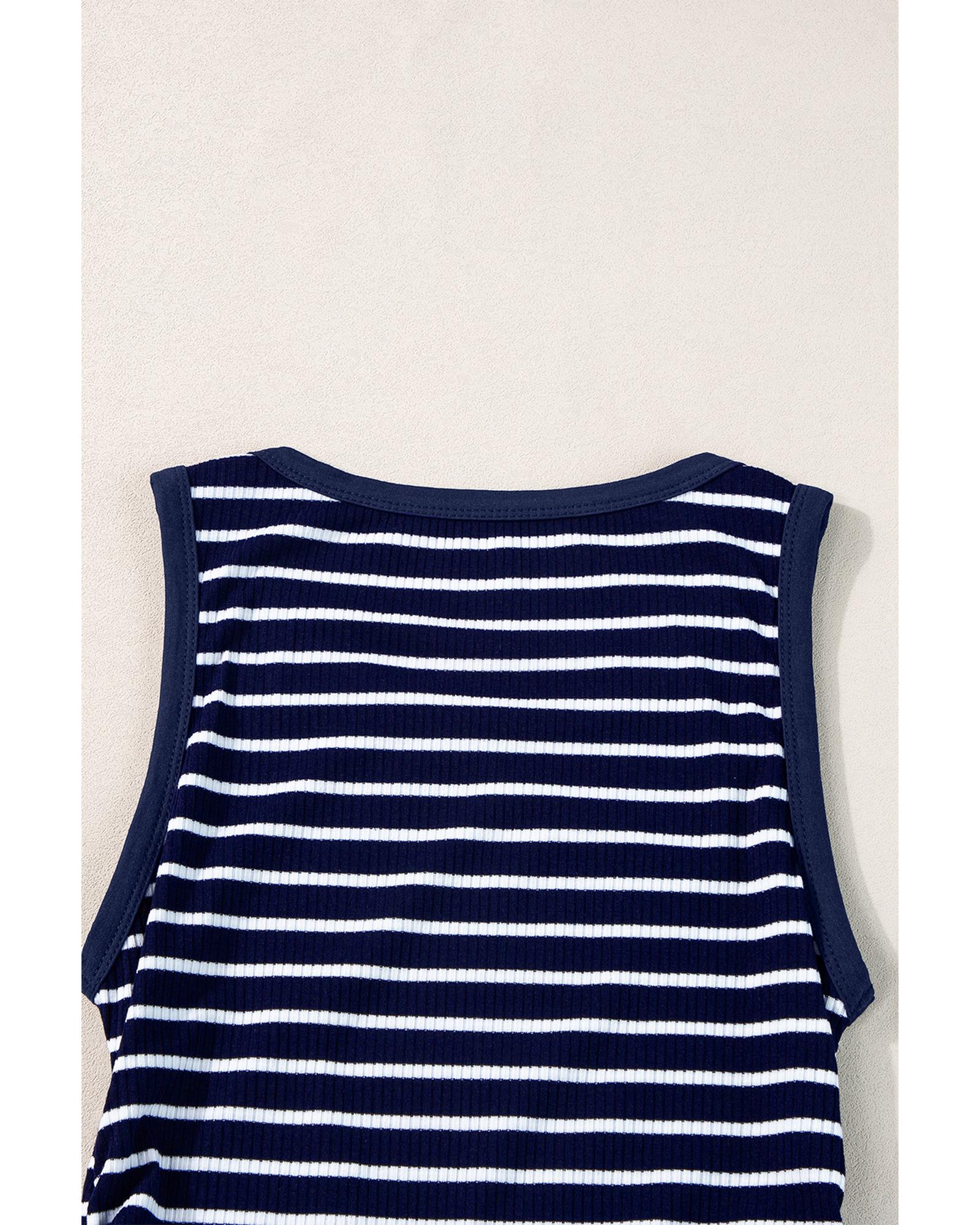 Blue Stripe Contrast Round Neck Sleeveless Slim Top – XL