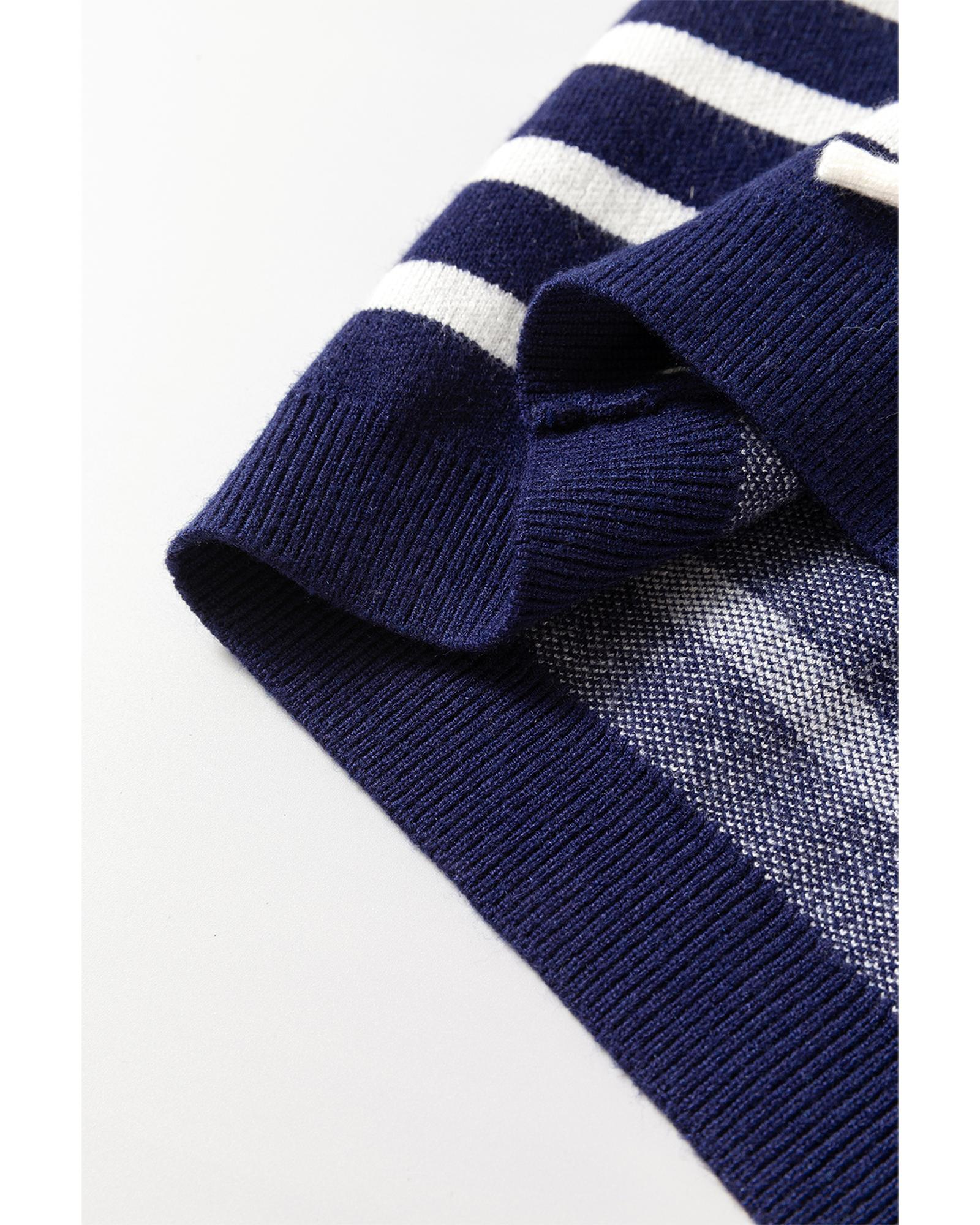 Blue Stripe Knitted Bow Decor Sweater Vest – L