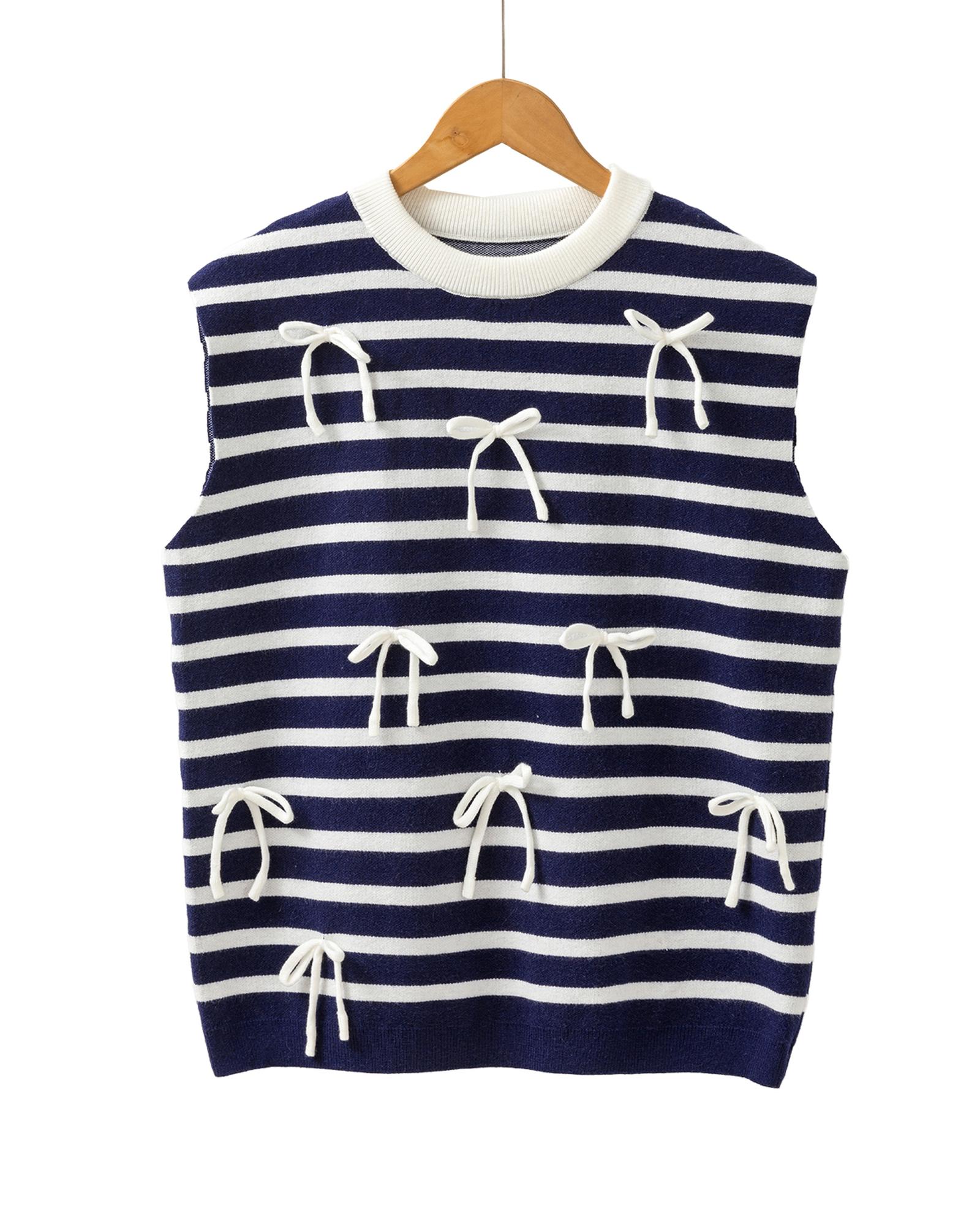 Blue Stripe Knitted Bow Decor Sweater Vest – S